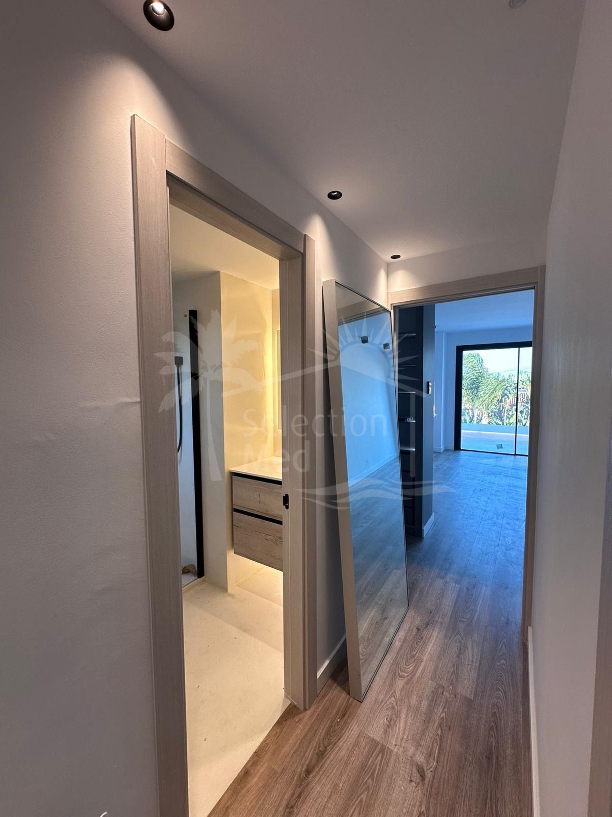 The upper level offers privacy and comfort with a guest bedroom that includes a private terrace and the possibility to add a bathroom. The master bedroom, en suite, features a spacious dressing room and an exclusive terrace. A second bedroom en suite, also with dressing room and private terrace, completes this floor, ensuring space and style for all family members.