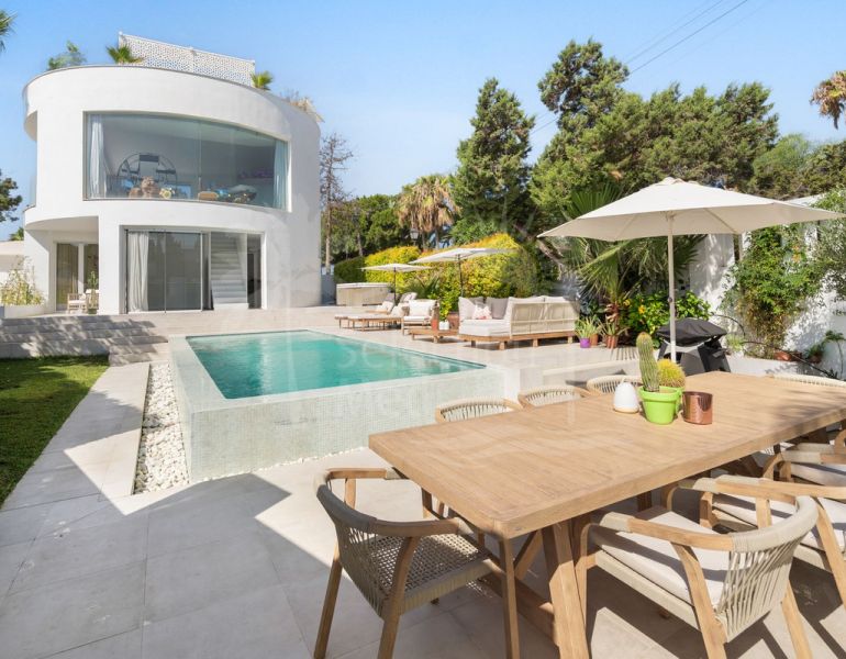 This iconic villa is located in the private urbanization of Marbesa, close to the beach, on the east side of Marbella. It is 400 meters walking distance or 10 minutes walk from the Mediterranean Sea and the beach, 1.5 km...