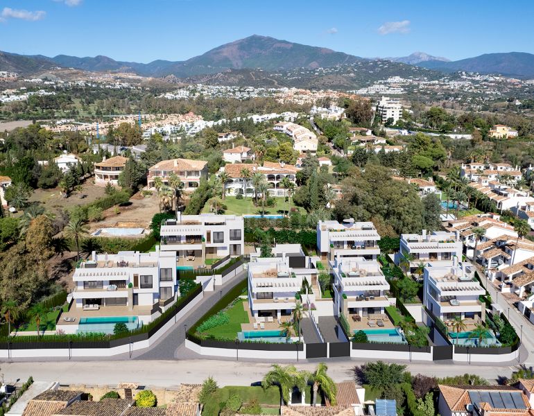 New development of 7 luxury south facing detached villas in a prime location of Costa del Sol: Atalaya-El Campanario in Estepona, within a short drive to all amenities, the beach and Puerto Banús, and in walking distance to Atalaya Golf...