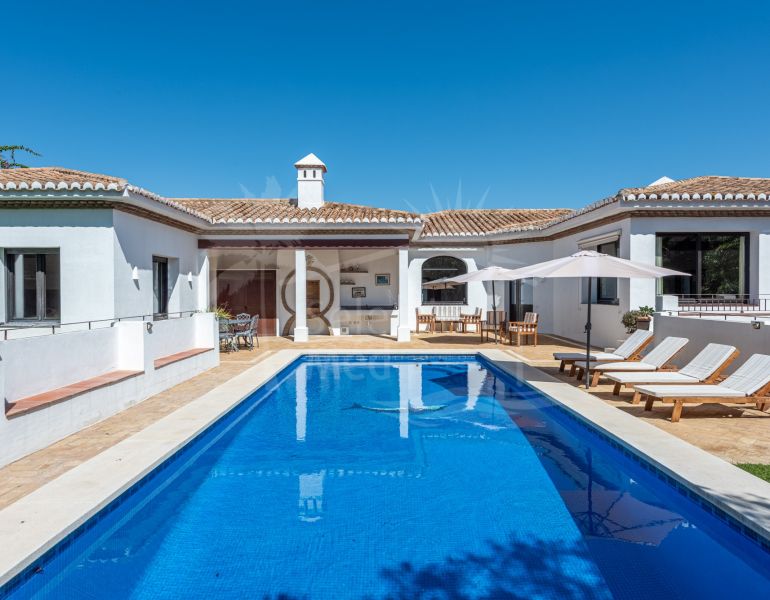 This exceptional 5 bedroom villa is located on an elevated plot in the prestigious area of Kings and Queens Sotogrande, and offers spacious living accommodation, that is well suited to a family or for vacation use. Set in mature landscaped...