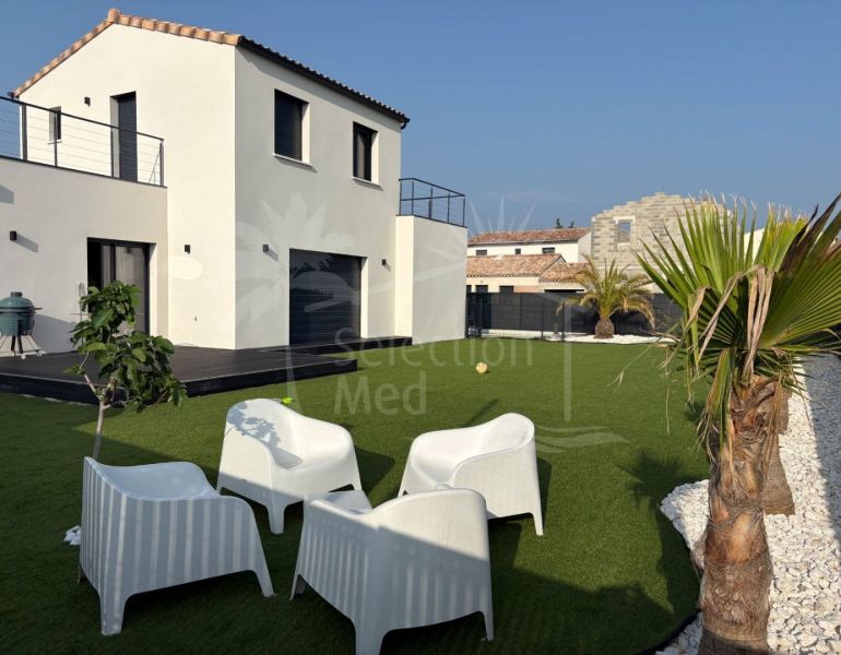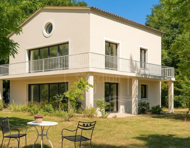 Villa built in 2024 with high-end materials, surrounded by a landscaped garden of 500m² with swimming pool, large garage and four outdoor parking spaces Located in a quiet residential environment, but close to schools, train station, main roads and...