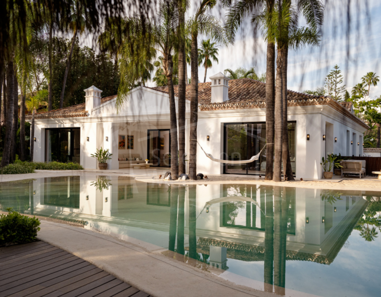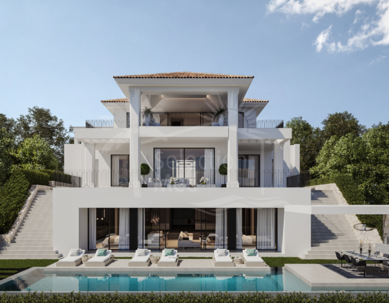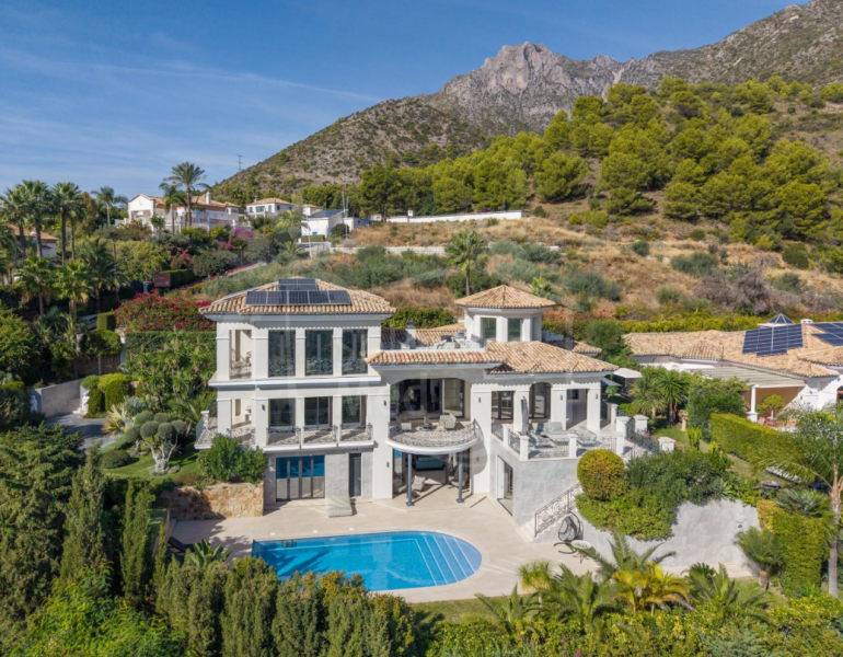 Located in the prestigious and secure gated community of Sierra Blanca, this elegant villa masterfully blends classical architecture with contemporary comfort. Positioned on an elevated plot, the property enjoys sweeping panoramic views of the Mediterranean Sea and the dramatic La...
