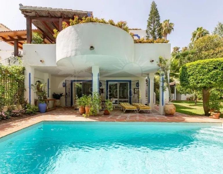 This attractive Andalusian-style villa stands out for its traditional charm and generous outdoor spaces. The property welcomes you with an elegant entrance adorned with a fountain, creating a distinctive first impression that sets the tone for the entire home. On the...