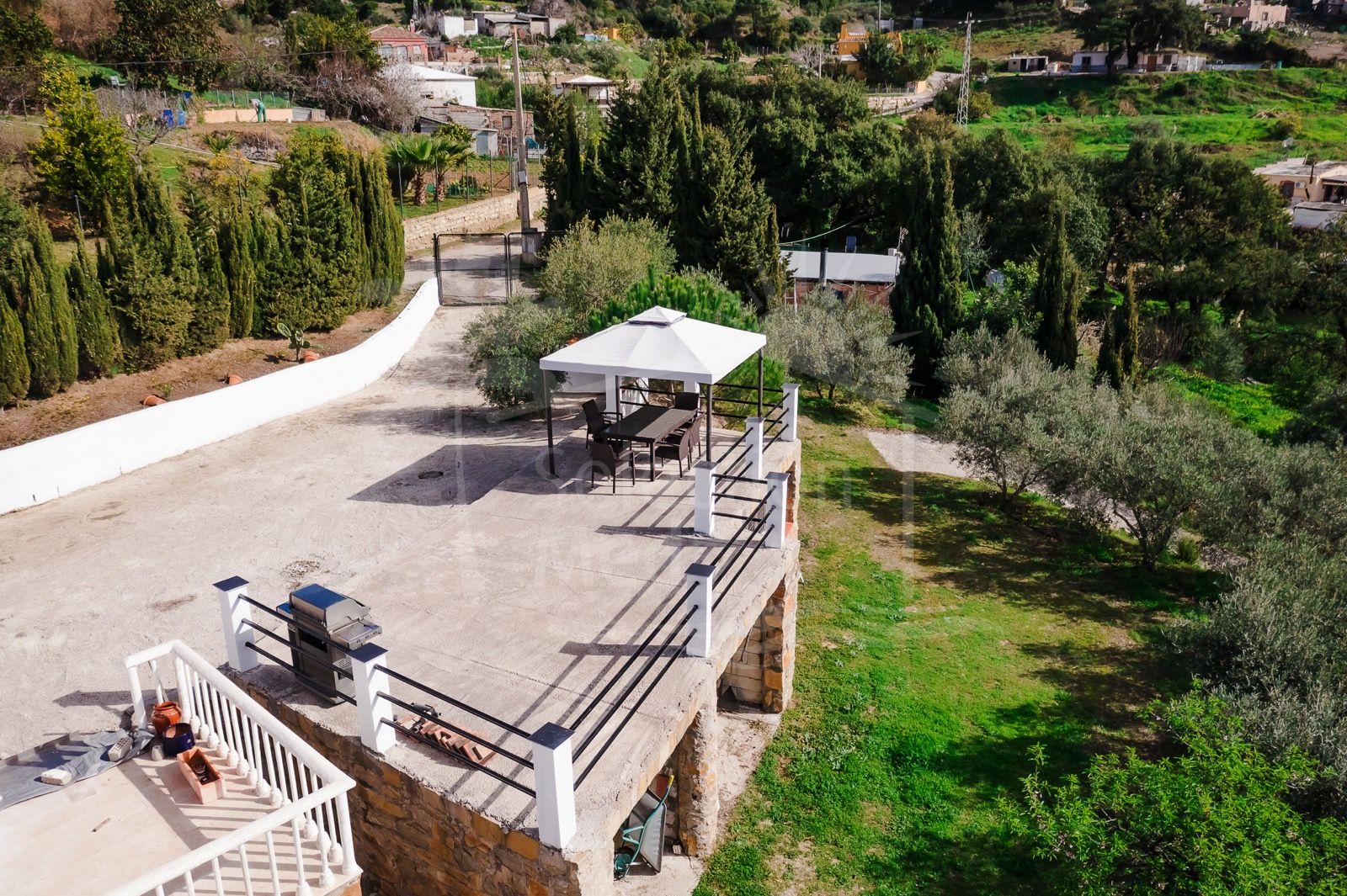 Con 120 m² construidos (100 m² útiles) sobre una parcela generosa de 4.500 m², la propiedad incluye dos apartamentos modernos y cuenta con cinco dormitorios, dos baños, salón luminoso con estufa de leña, cocina equipada, trastero, garaje y gallinero. Suelos de mármol, armarios empotrados, calefacción individual y aire acondicionado garantizan confort todo el año. La amplia terraza es perfecta para comidas al aire libre, mientras que el huerto orgánico es una auténtica joya: olivos maduros, caquis, higos, aguacate, limón, naranja, pomelo, clementina, naranja sanguina, moras, pera, manzana, membrillo, ciruela, chirimoya, mango, nueces, almendras, laurel, verbena de limón y mucho más, además de un huerto de verduras en producción.