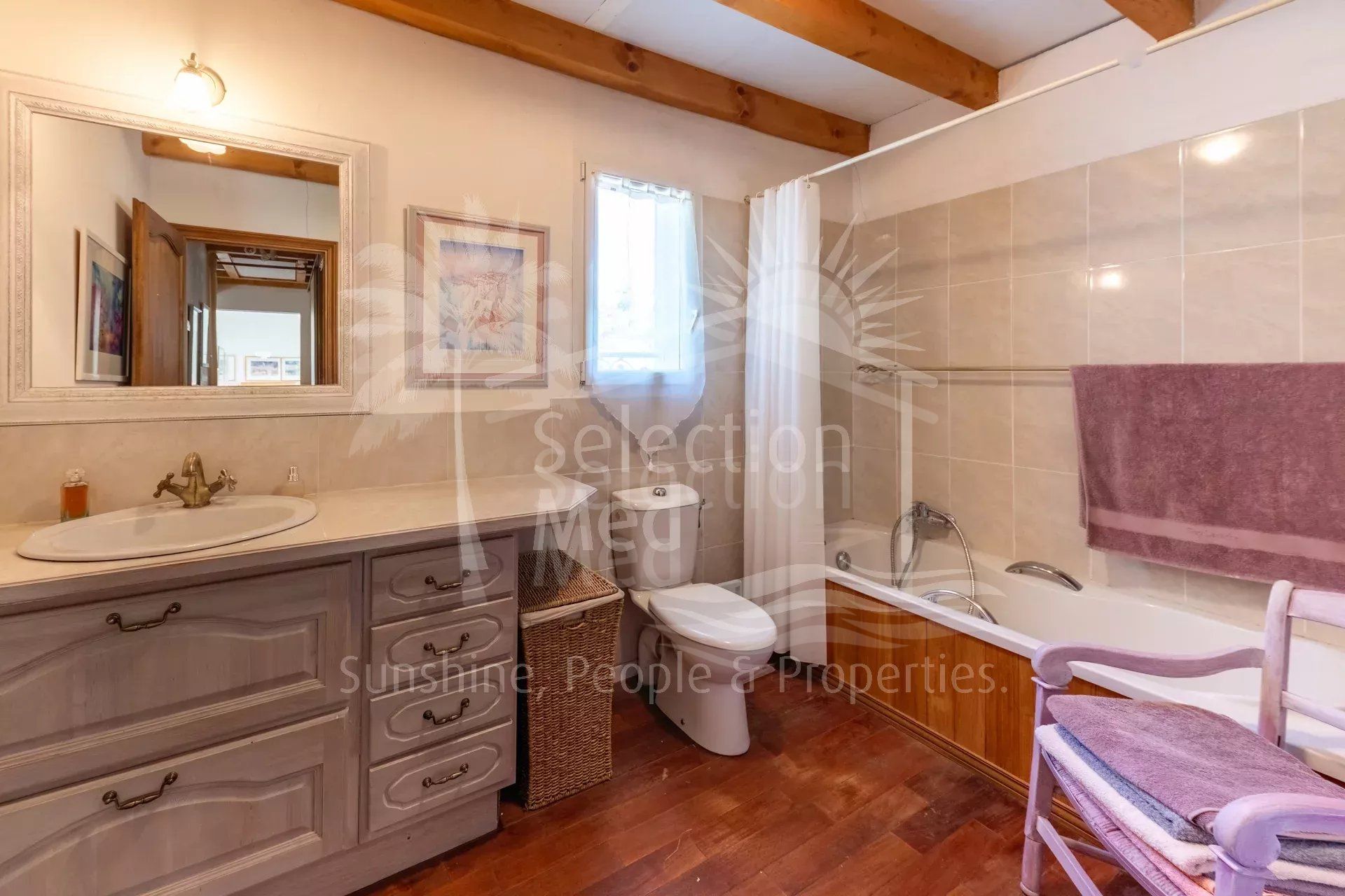 - Planta baja: una bonita sala de estar con cocina sutilmente abierta, dos dormitorios, un cuarto de baño, un aseo y acceso a la buhardilla, que podría transformarse fácilmente;
