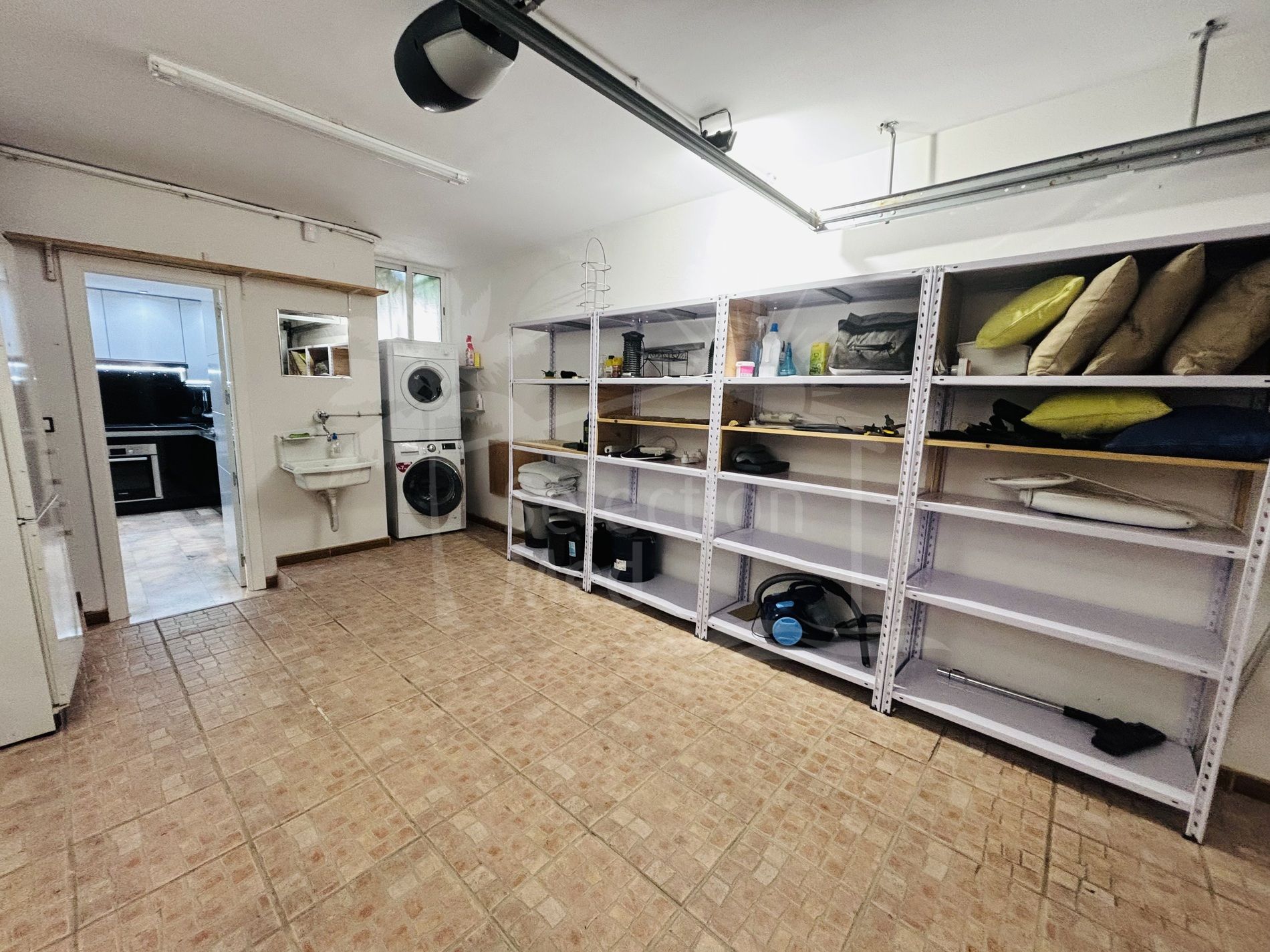 Al lado de la cocina hay un garaje cerrado para un coche con zona de lavandería.