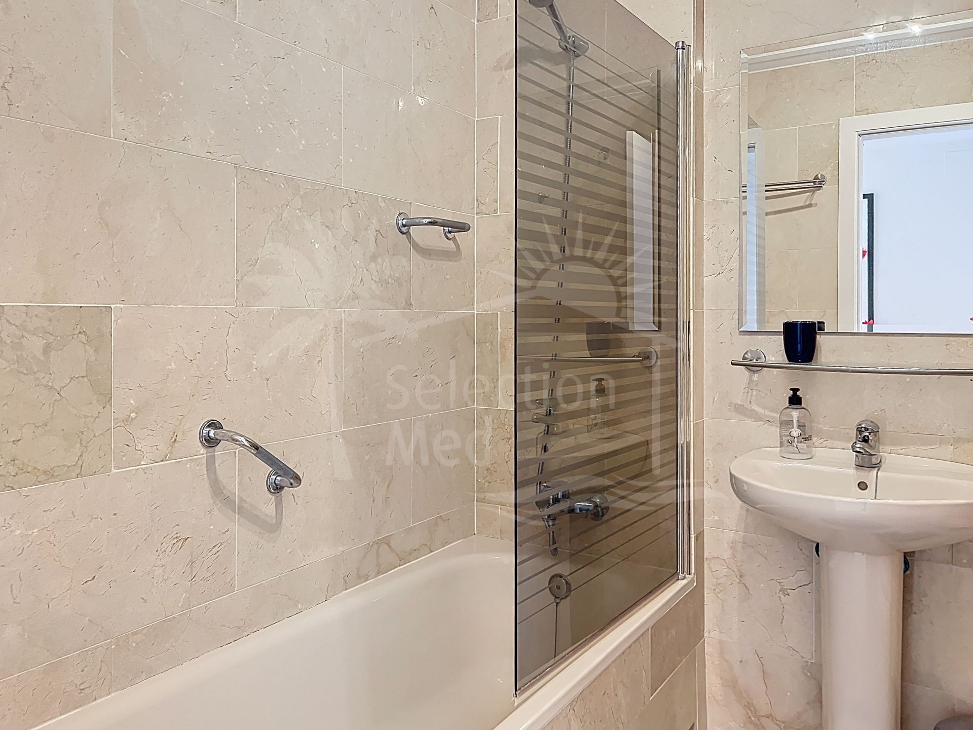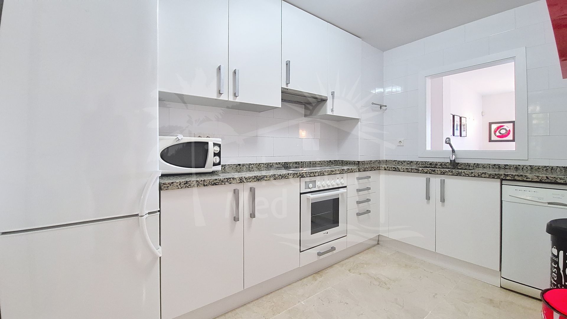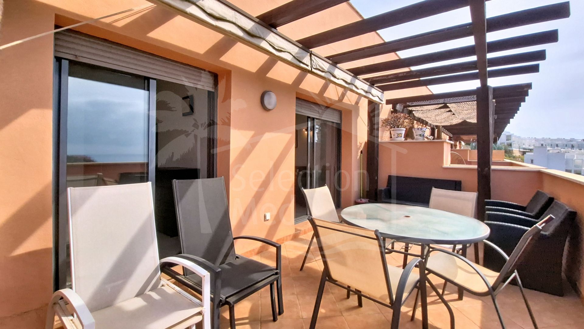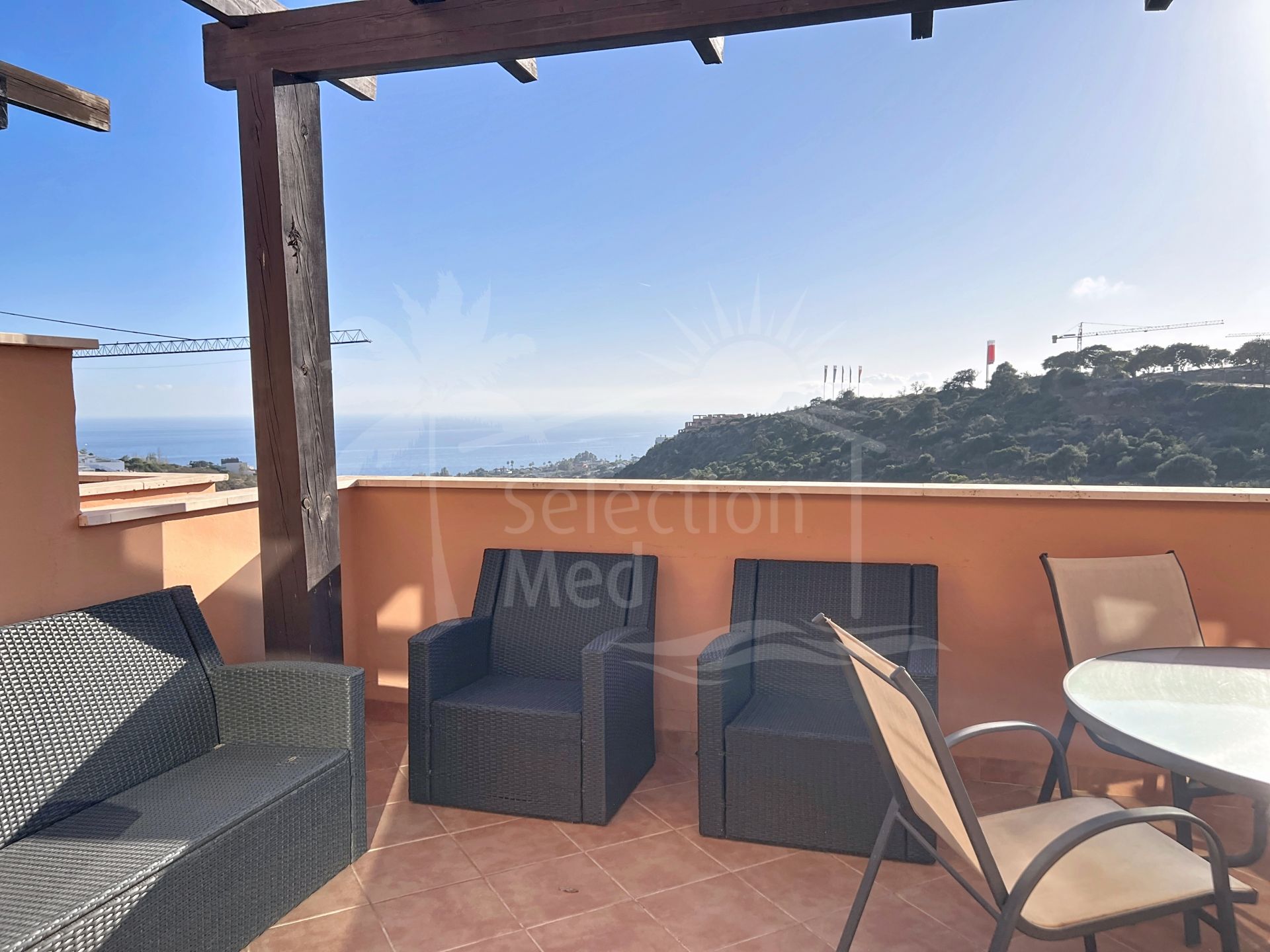 La vivienda cuenta con cocina equipada, aire acondicionado frío/calor y una agradable terraza de unos 20 m² con espectaculares vistas al mar y al Peñón de Gibraltar.