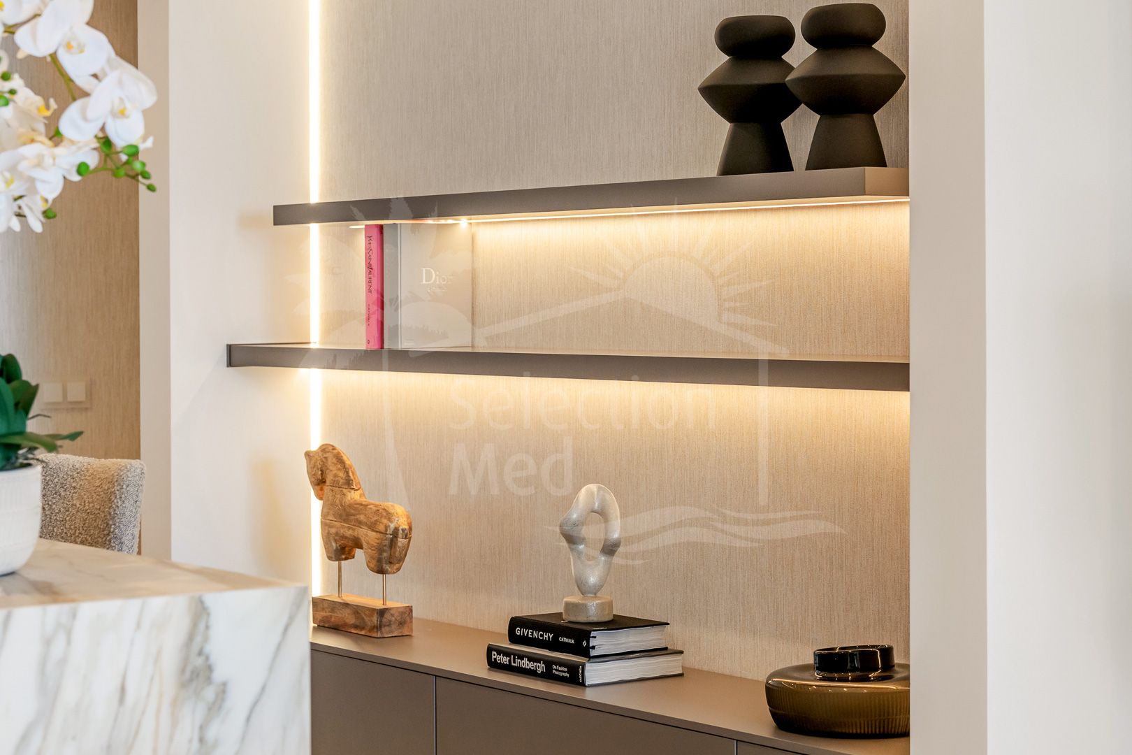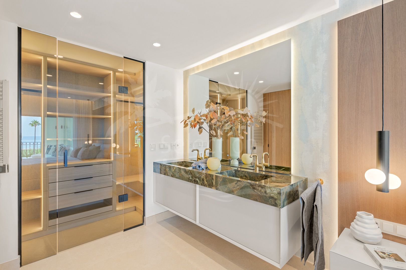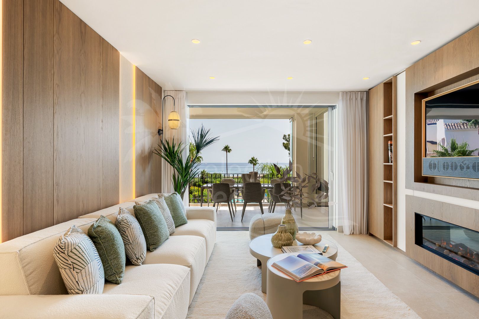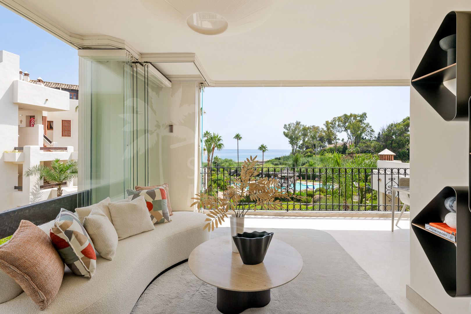 La vivienda, con una superficie construida de 158m², ofrece un interior de 120m² perfectamente distribuidos en tres amplios dormitorios y dos baños, uno de ellos en suite. Su diseño ha sido recientemente renovado y presenta una cocina abierta totalmente equipada y amueblada, comedor y salón con vistas panorámicas al mar. El apartamento dispone además de un vestidor, armarios empotrados, suelo radiante en todas las estancias y aire acondicionado, garantizando el máximo confort en cualquier temporada.