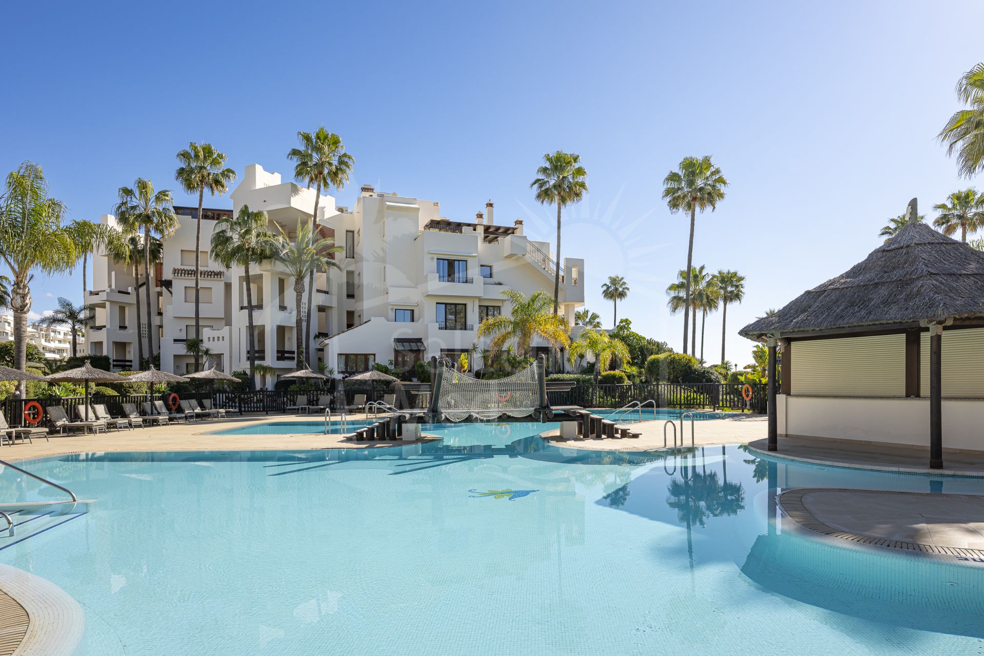 Se presenta un excelente apartamento de lujo situado en la prestigiosa urbanización Bahía del Velerín, en la zona este de Estepona, Málaga. Ubicado en primera línea de playa y dentro de una comunidad cerrada con seguridad 24 horas, este inmueble reúne todos los requisitos para disfrutar de una vida cómoda y sofisticada, con acceso directo al mar y todas las comodidades a su alcance.