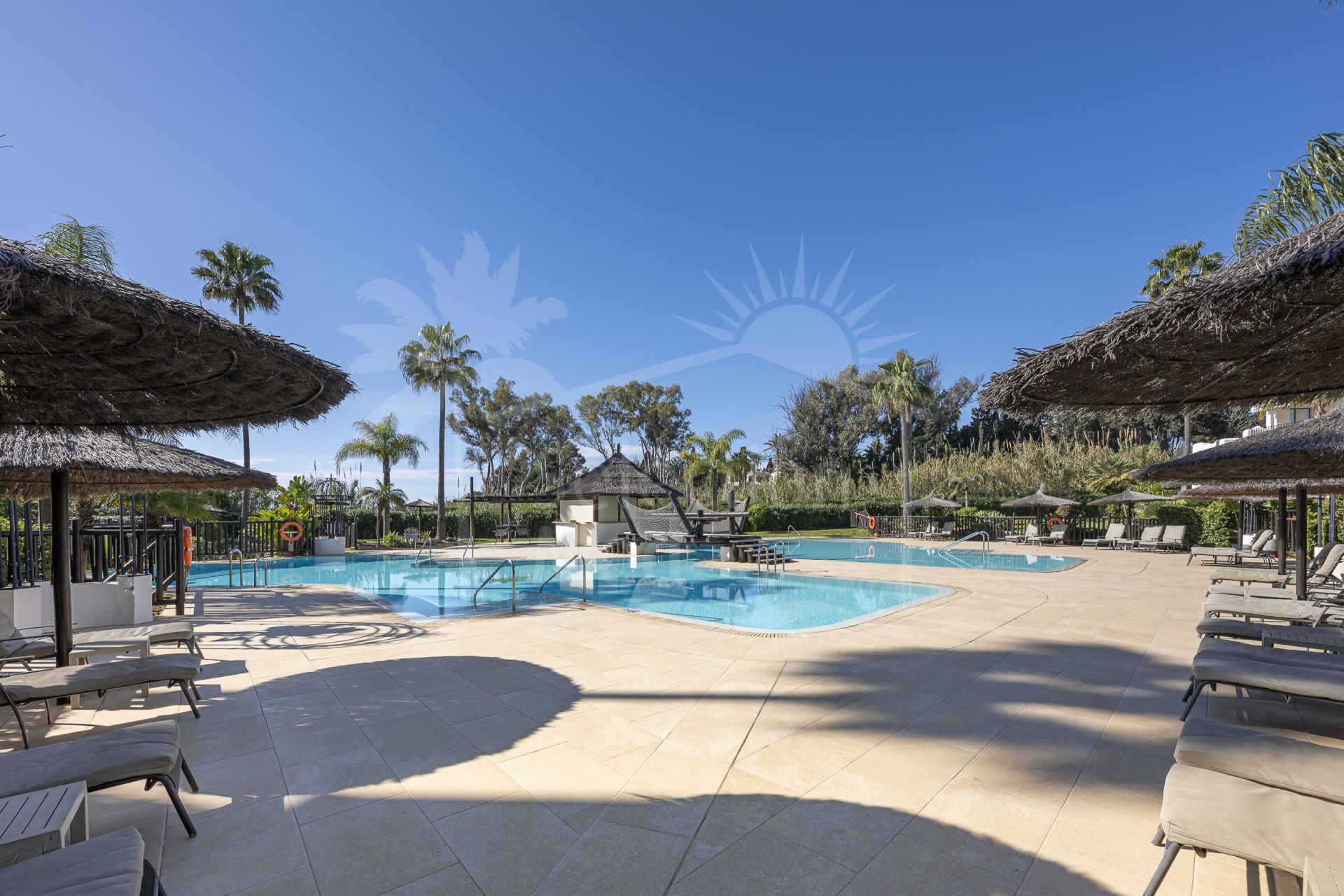Finalmente, la ubicación estratégica de esta propiedad permite tener cerca todo tipo de servicios: colegios, restaurantes, puerto, campos de golf, parques infantiles y transporte. Toda la vivienda se entrega totalmente amueblada, en excelente estado, e incorpora detalles de alta gama como sistema Dolby Stereo Surround, Internet de fibra óptica y Wi-Fi, sistema de aerotermia y suelos de gres; además, está habilitada para mascotas. Sin duda, una oportunidad única en una de las mejores zonas de la Costa del Sol.