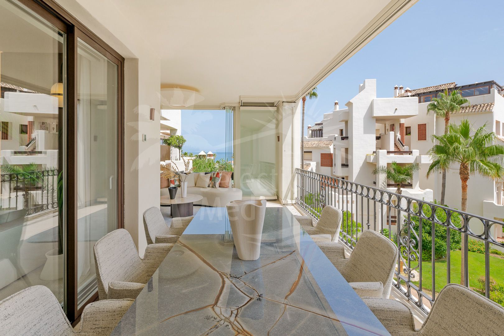 Ubicado en la prestigiosa comunidad frente al mar de Bahía del Velerín, este elegante apartamento de tres dormitorios y dos baños ofrece un estilo de vida privilegiado en uno de los tramos más codiciados de la Costa del Sol. Desde su orientación suroeste y serenas vistas al mar hasta su refinado diseño contemporáneo, cada detalle de esta vivienda ha sido concebido para elevar la vida cotidiana a una lujosa experiencia mediterránea.