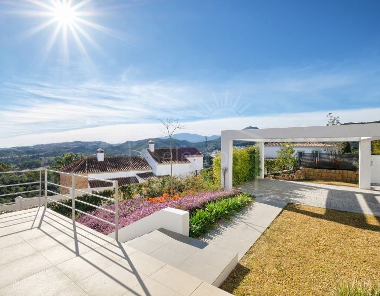 Viva el estilo de vida mediterráneo contemporáneo en esta villa de nueva construcción con 4 dormitorios en venta en Puerto del Capitán, Benahavís, una exclusiva comunidad cerrada a solo minutos de Puerto Banús, San Pedro y las playas de la...