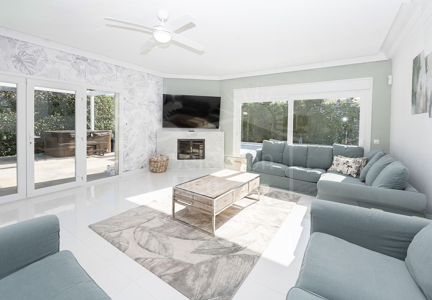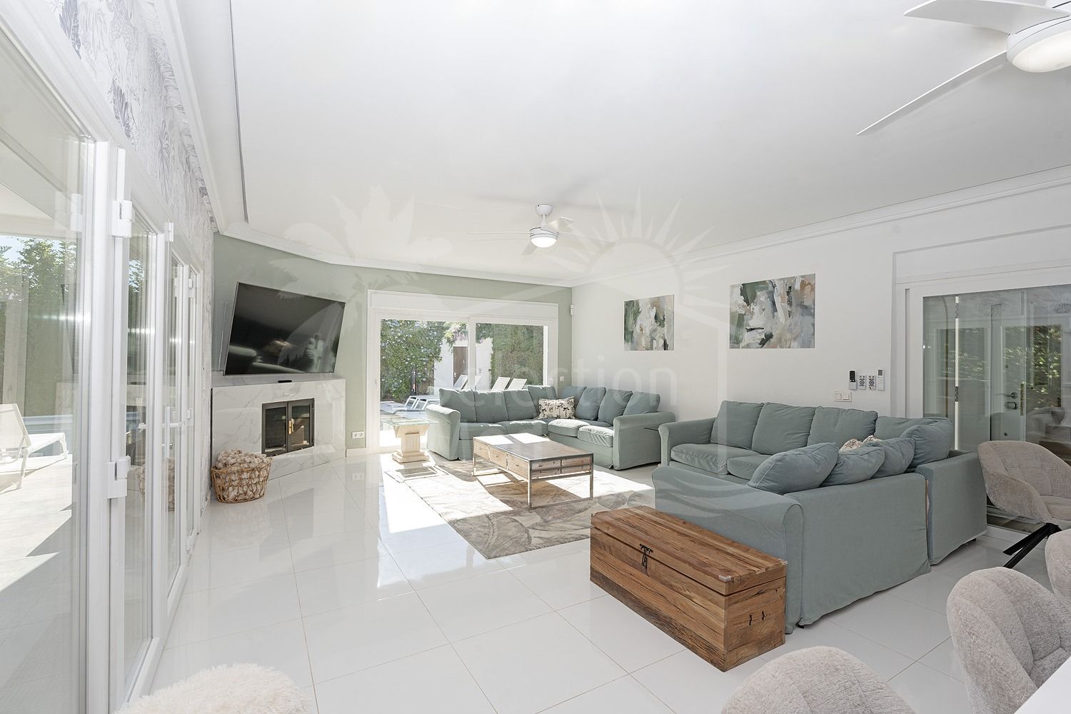 La propiedad cuenta con 6 amplios dormitorios e interiores luminosos de estilo contemporáneo, diseñados para un estilo de vida cómodo. Todas las estancias han sido cuidadosamente actualizadas, creando un ambiente moderno y acogedor.