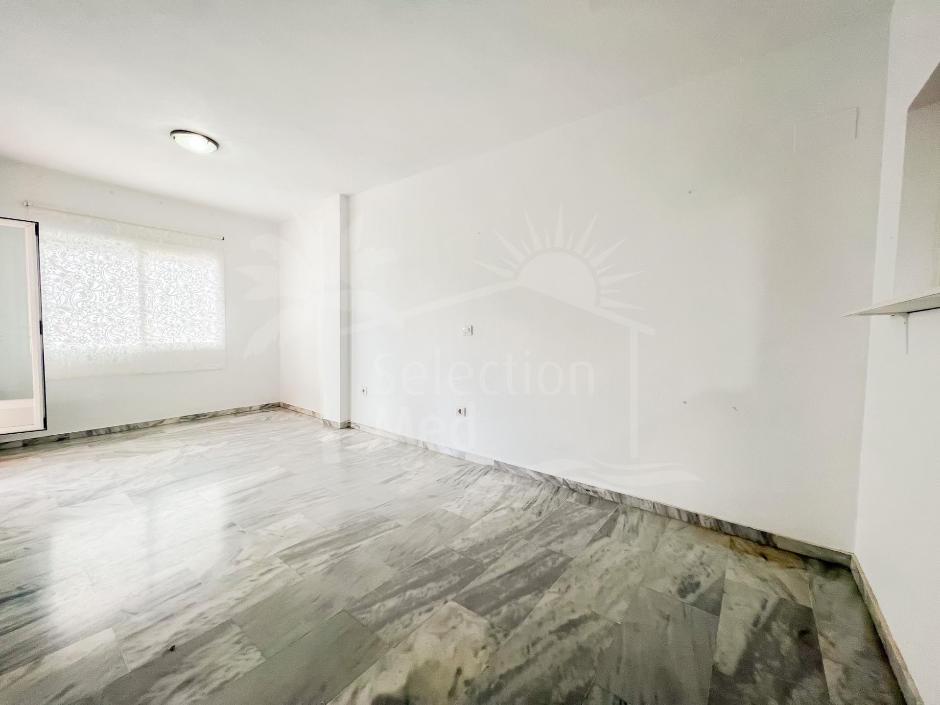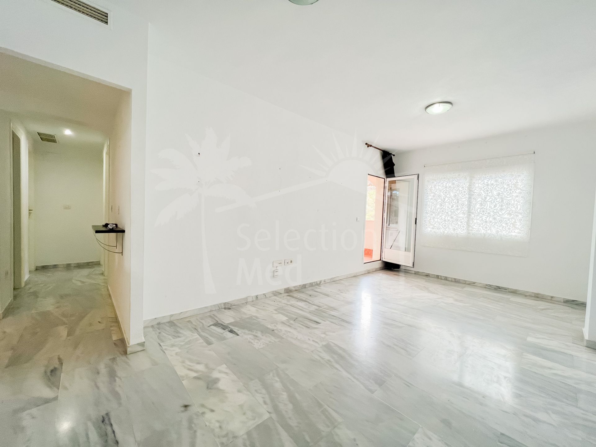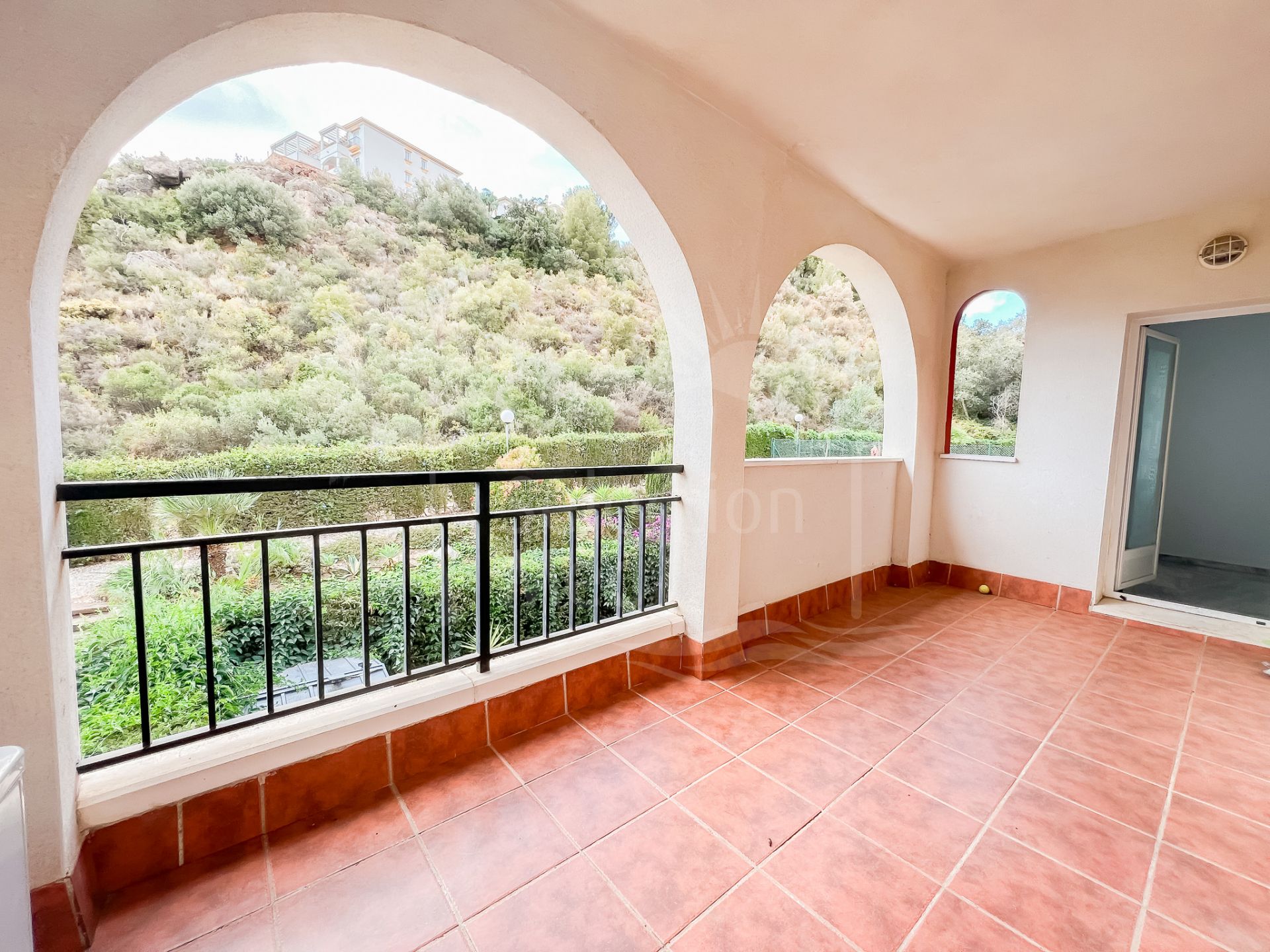 El apartamento está en el primer piso y tiene una sala de estar de planta abierta con una cocina parcialmente abierta. Tiene su propia terraza que da a los jardines ya la montaña. La terraza está cubierta y tiene un espacio de unos 12 m2, lo que significa que puede sentarse y disfrutar del clima cálido de la Costa del Sol. Tiene 2 dormitorios, ambos equipados con armarios empotrados y 2 baños, uno con ducha y otro con bañera. El apartamento viene con plaza de aparcamiento subterráneo que se asigna. La comunidad tiene piscina comunitaria y terrazas que tienen fantásticas vistas al mar.