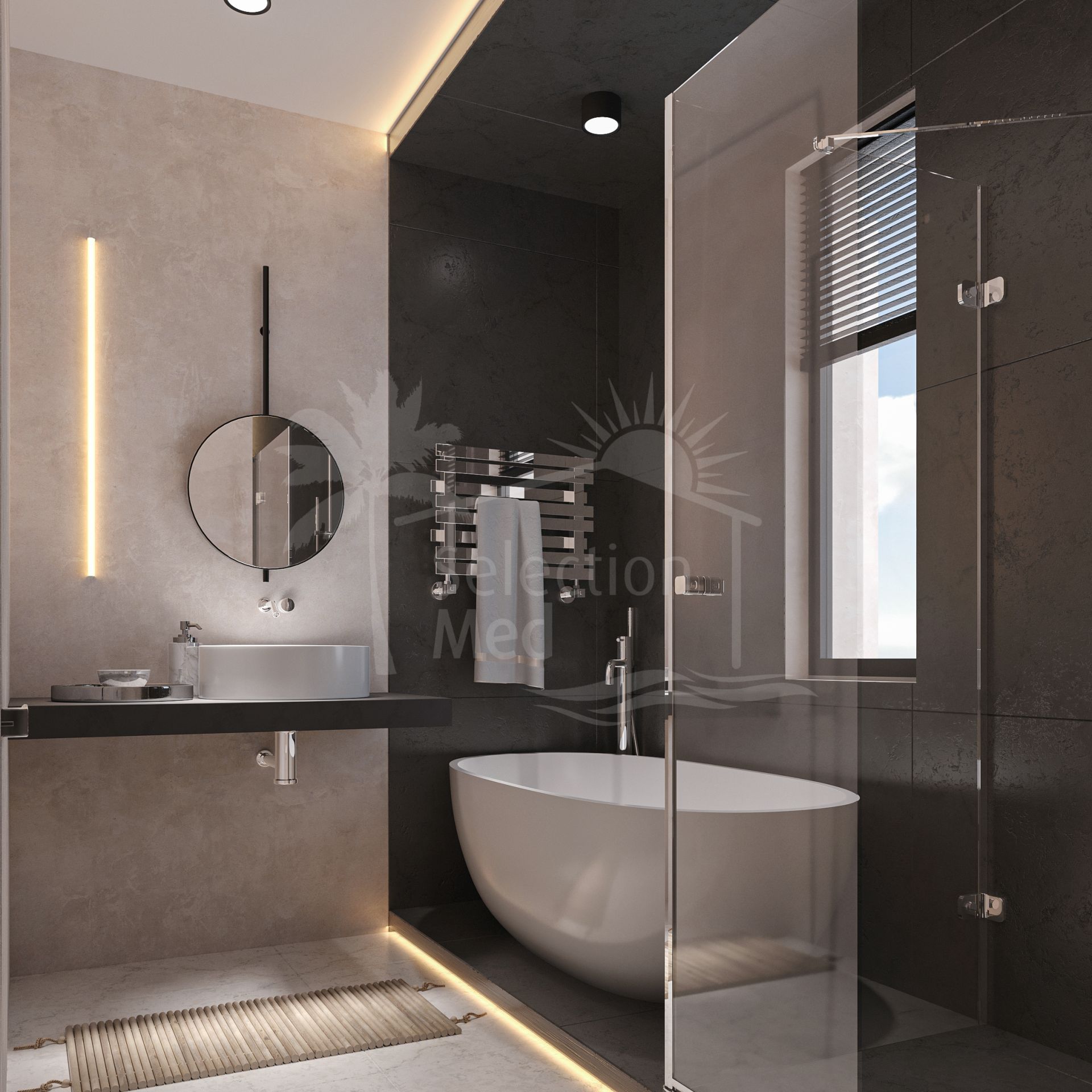 Los 3 dormitorios tienen baño en suite, y el dormitorio principal también tiene acceso directo a la terraza. Las habitaciones cuentan con armarios empotrados, y la propiedad se beneficia de la última calefacción aerterérmica para agua, y aire acondicionado frío y caliente en todas partes.