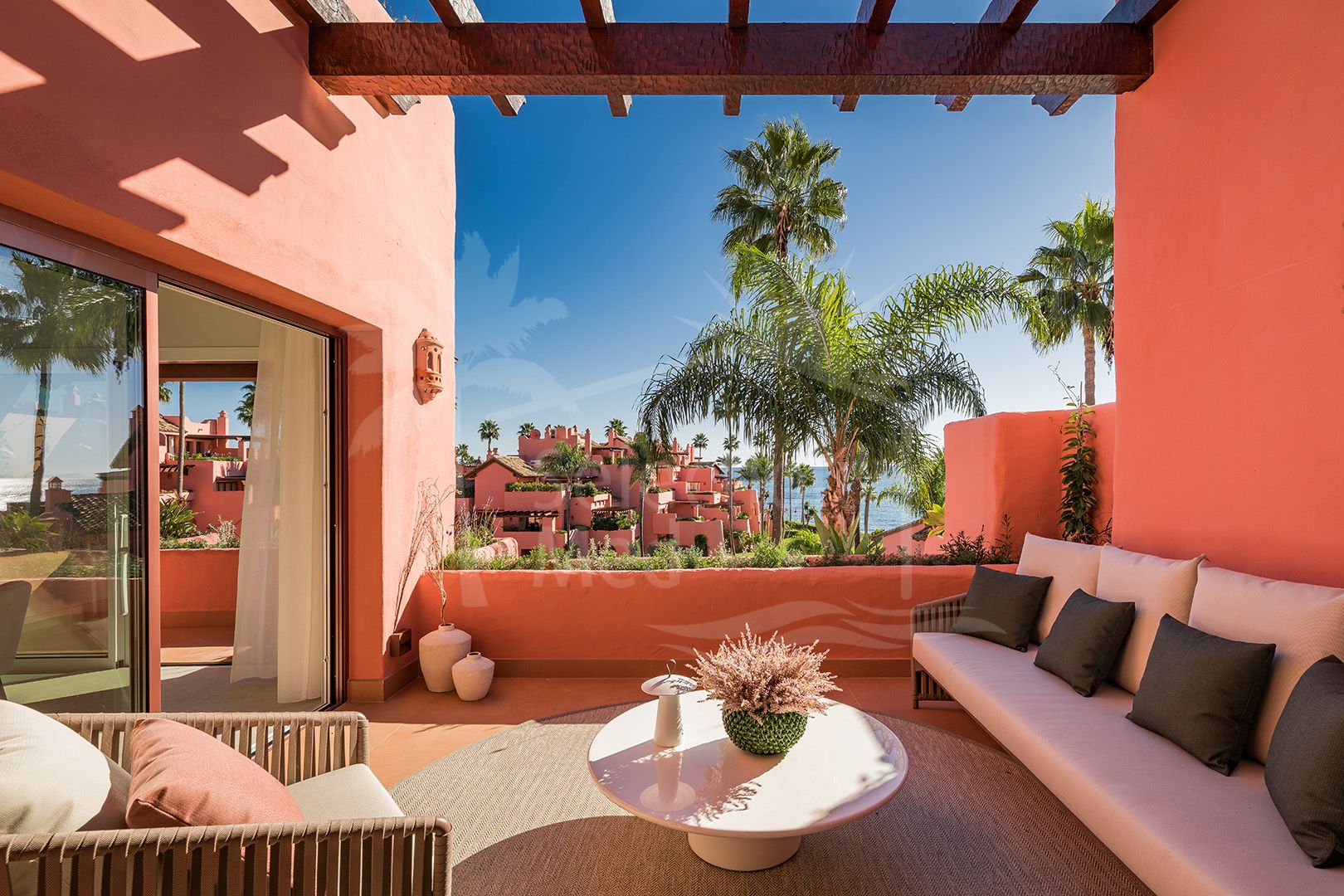 La ubicación de esta propiedad junto a la playa garantiza un fácil acceso al mar, campos de golf, tiendas, escuelas y conexiones de transporte. Su proximidad al pueblo de Estepona, al puerto y a numerosas opciones gastronómicas la convierten en una opción perfecta tanto para familias como para profesionales.
