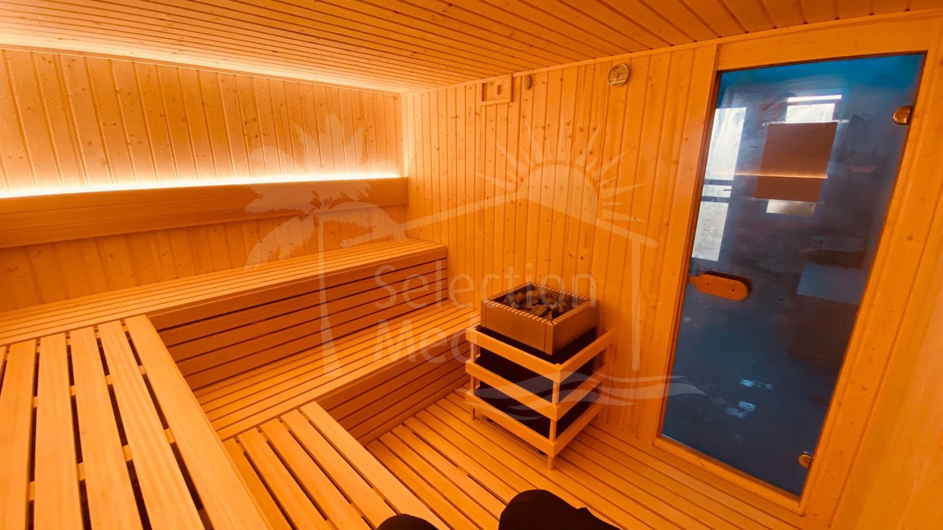 La urbanización es realmente única y ofrece una amplia gama de instalaciones. Los residentes disfrutan de servicios tipo hotel, incluyendo recepción 24 horas y conserjería. El complejo dispone de una gran piscina exterior, piscina infantil, así como una piscina cubierta climatizada con sauna y baño turco (hammam). También cuenta con un gimnasio completamente equipado y un club de bienestar. Todas estas instalaciones están incluidas para los propietarios de la comunidad.