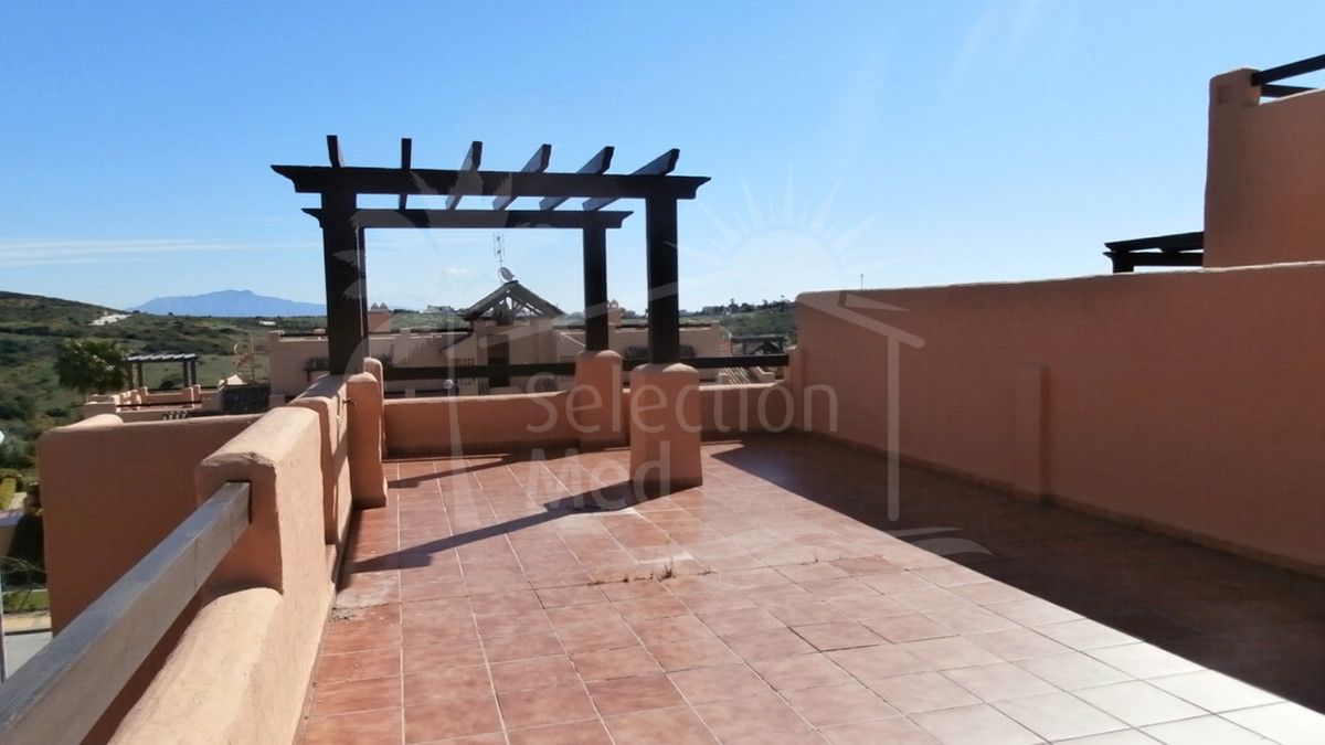 Magnífico ático con gran solarium y espectaculares vistas panorámicas. La vivienda cuenta con una buena distribución. A la derecha encontramos un amplio y luminoso salón con gran terraza desde donde se accede a través de una escalera al solarium. A la izquierda, se encuentra la cocina totalmente equipada con electrodomésticos de primeras marcas y lavadero. Además tiene dos dormitorios con armarios empotrados,y dos baños, uno de ellos en suite. Se trata de una urbanización cerrada, ubicada en la zona de Casares Playa con vigilancia, jardines muy bien cuidados y piscina comunitaria. A 10 minutos de la playa, muy cerca de campos de golf como Finca Cortesín, y a 20 minutos de emblemáticos campos de golf de Sotogrande, destacando Valderrama, Sotogrande Golf y San Roque Club. Se encuentra a 10 minutos de Estepona y puerto de la Duquesa, dónde puedes encontrar todo tipo de restaurantes, chiringuitos, supermercados y todo tipo de servicios.