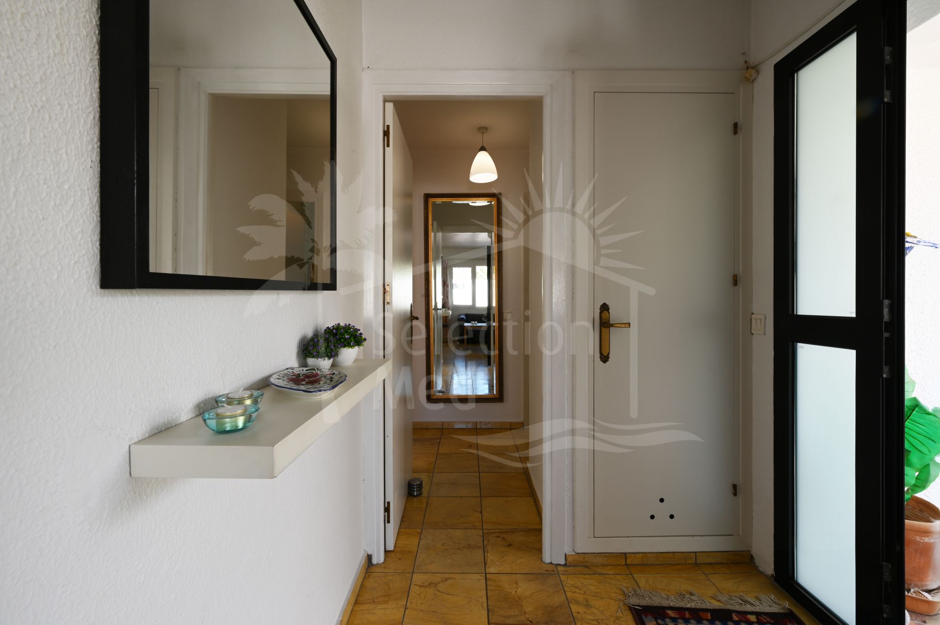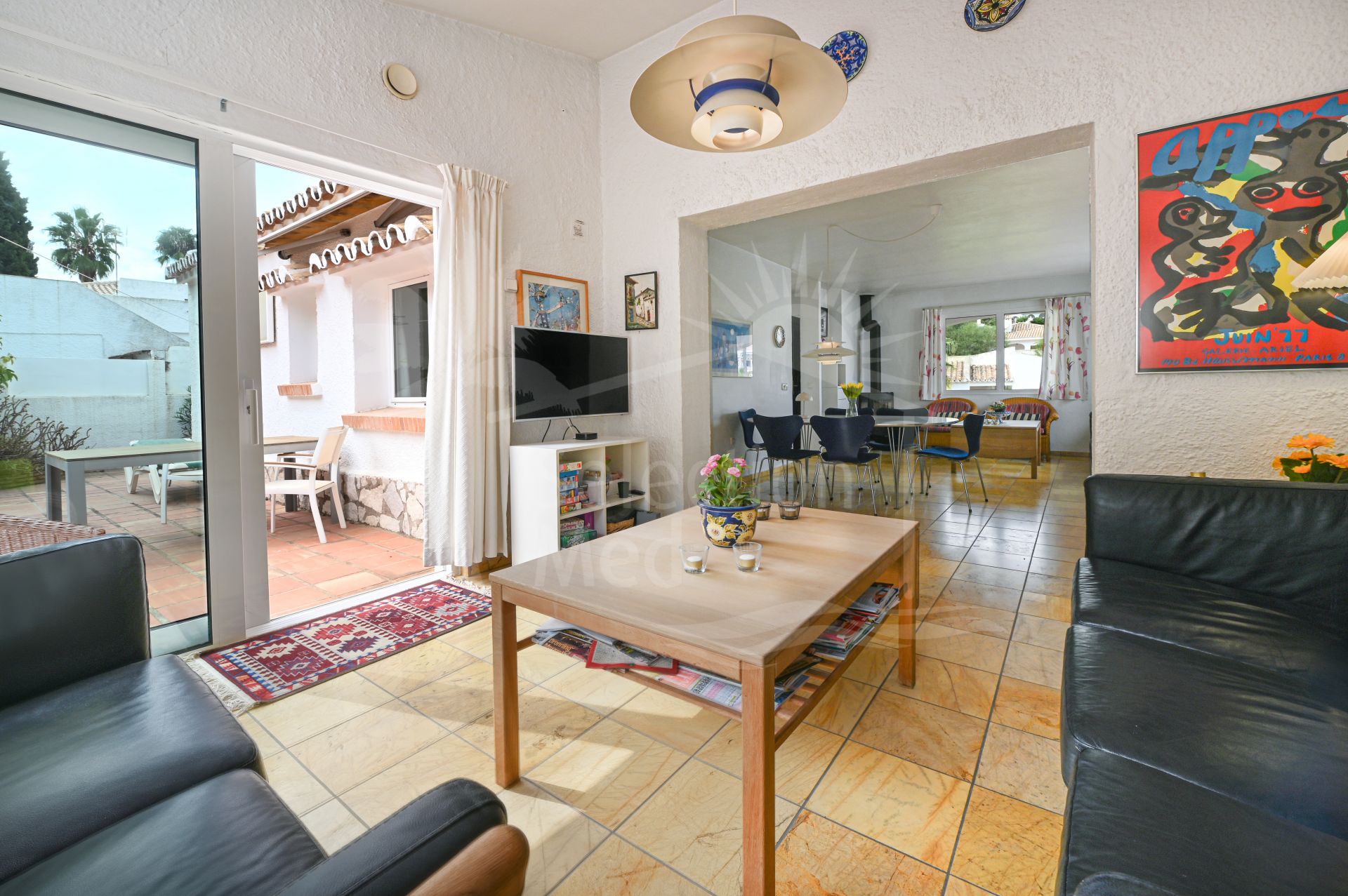 Ubicada en una calle tranquila con muy poco tráfico, esta luminosa y acogedora villa se distribuye en una sola planta y ofrece: