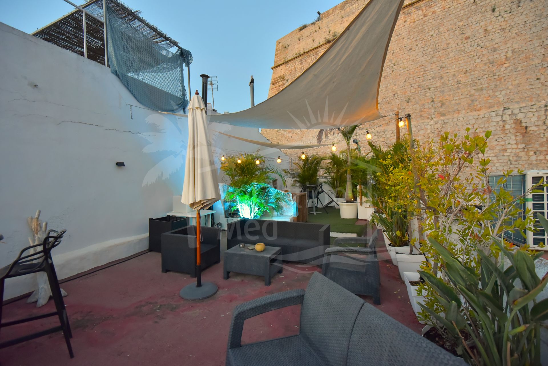Uno de los principales atractivos de la propiedad es su amplia terraza de 57m², decorada con plantas y flores, ideal para disfrutar del clima mediterráneo y de las vistas urbanas, a la marina y a la ciudad. El bonito balcón añade un toque especial al espacio exterior, convirtiéndolo en un rincón perfecto para relajarse o compartir momentos con amigos y familiares.