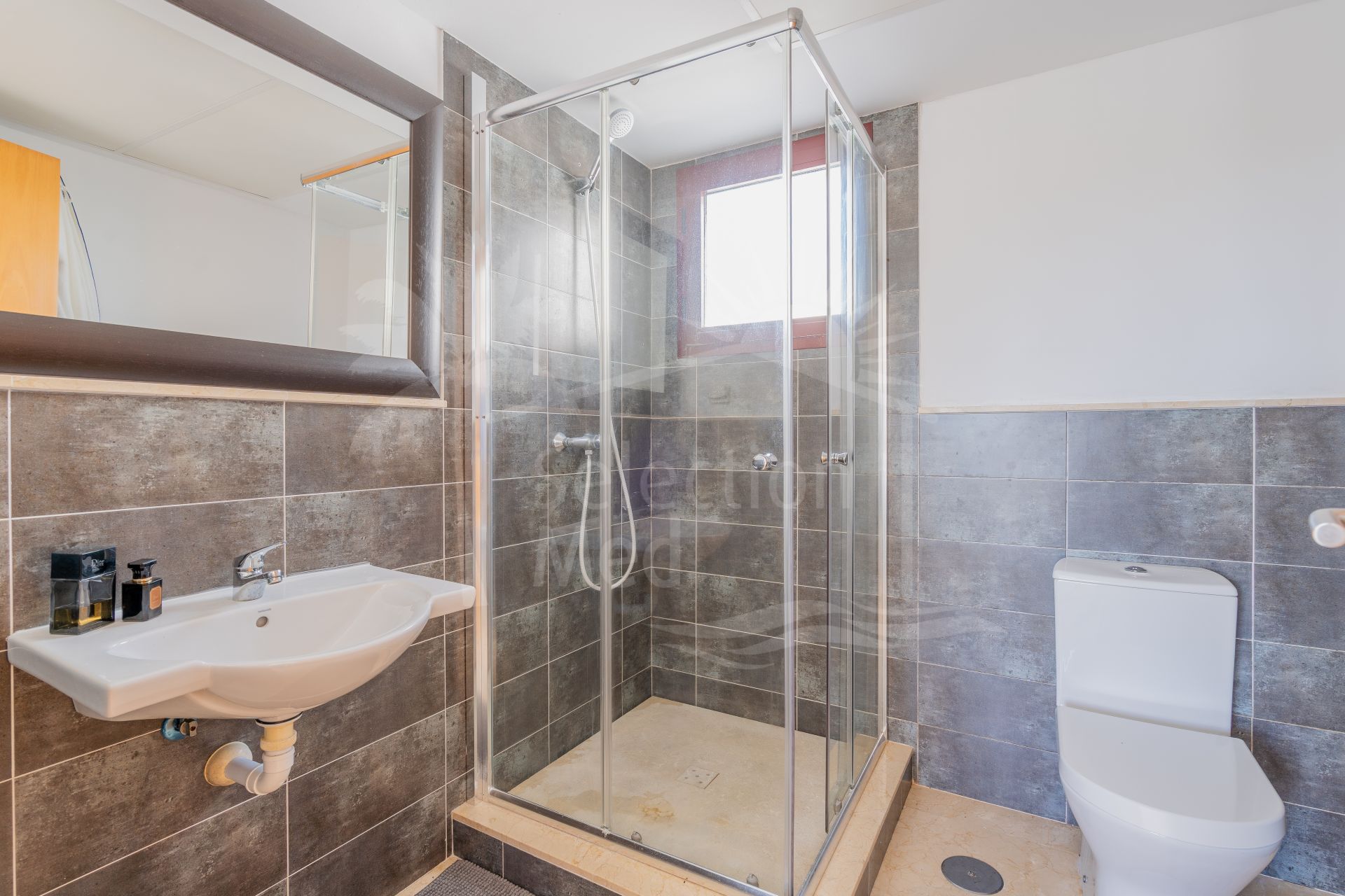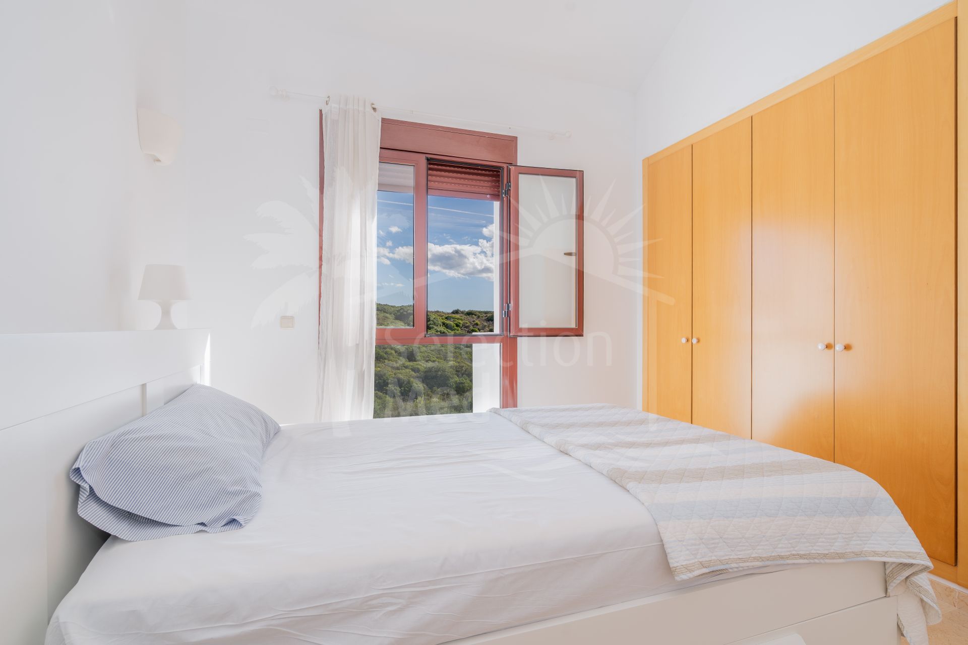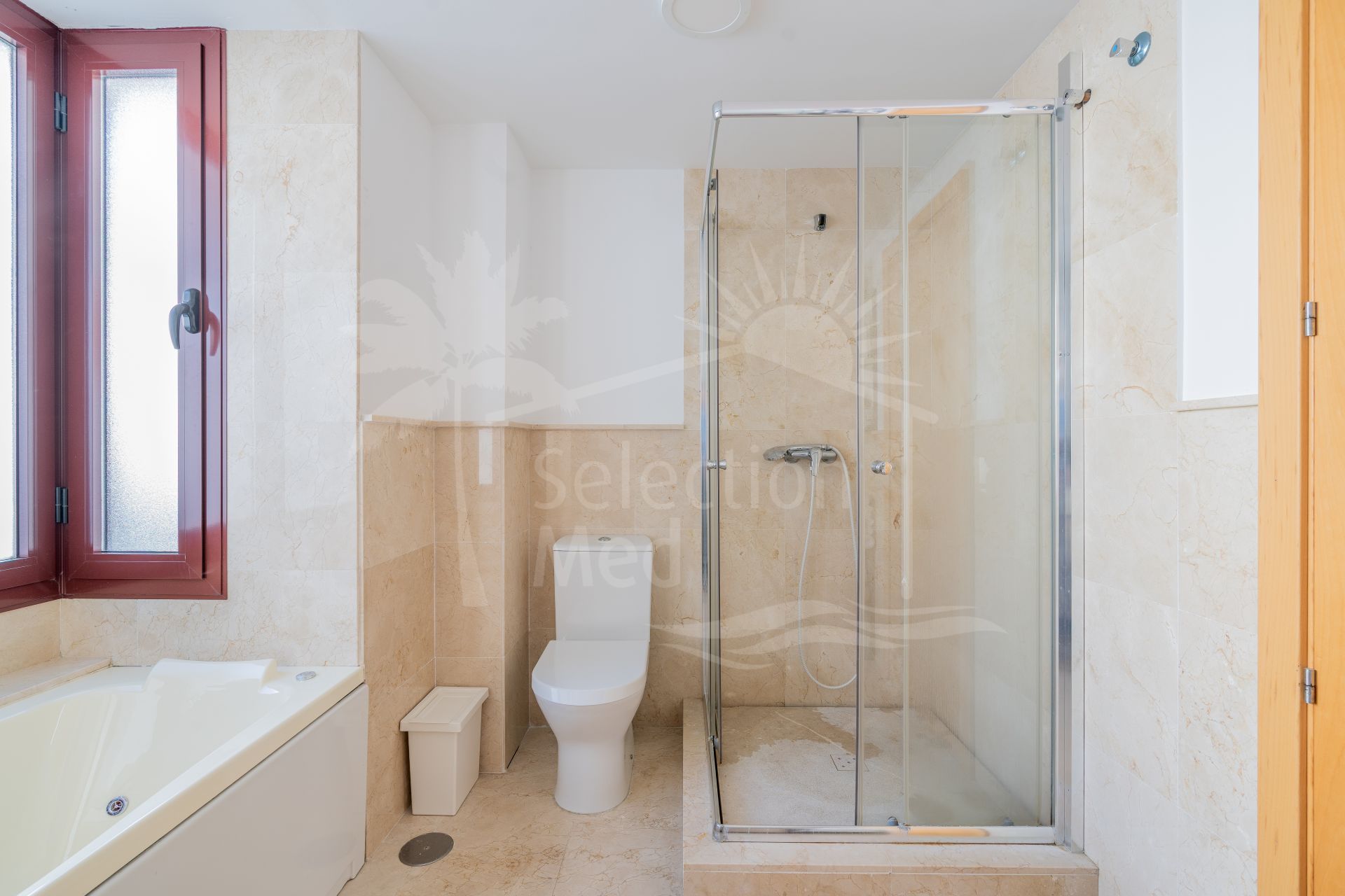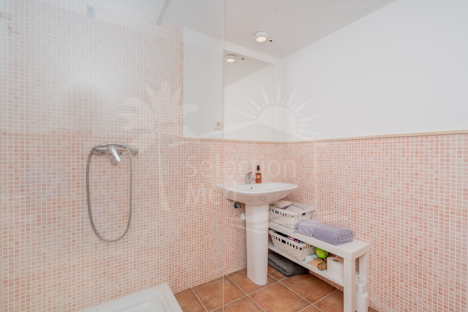En la planta principal encontrará dos amplios dormitorios, cada uno con su propio baño. El dormitorio principal dispone de vestidor y una gran terraza privada con vistas abiertas a las colinas verdes, un poco de mar e incluso parte del campo de golf. Techos altos, mucha luz y esa sensación instantánea de confort al entrar.