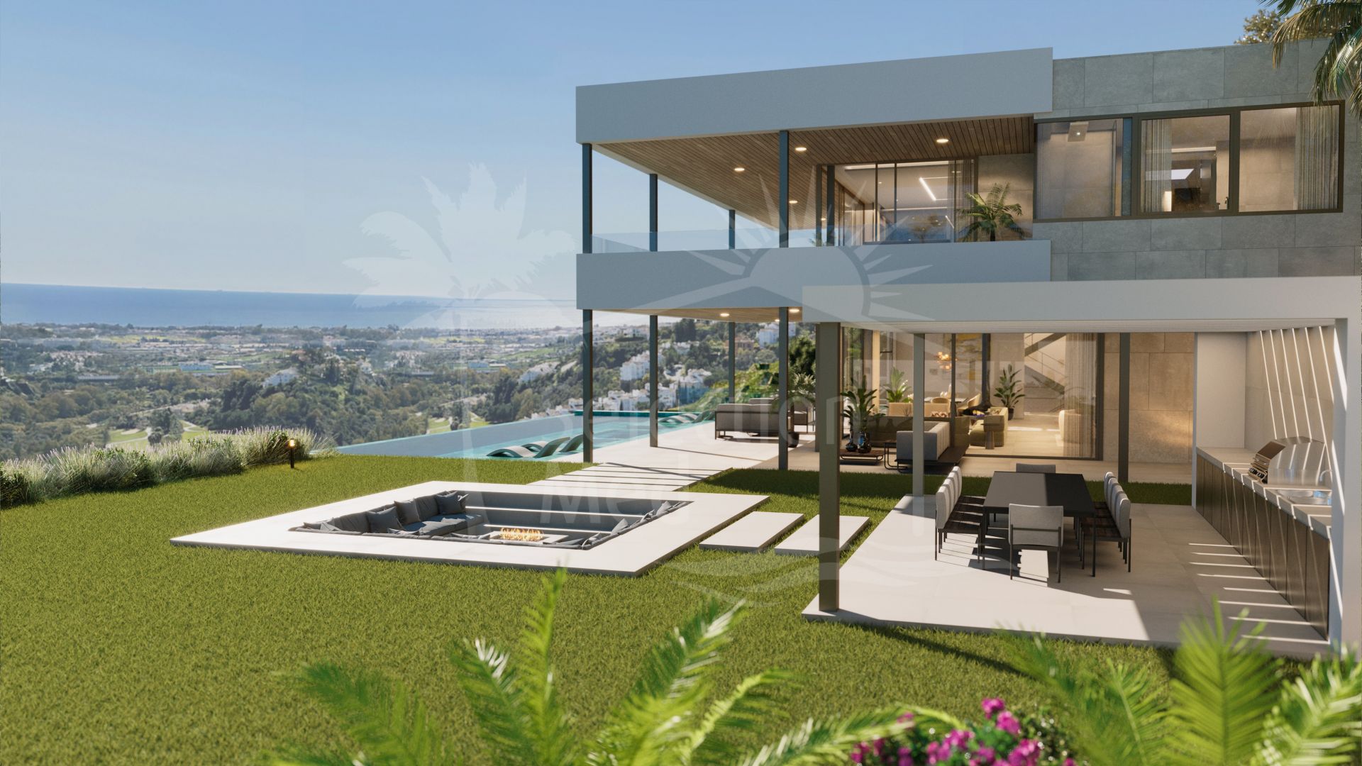 Cada villa cuenta con 3 plantas, 6 dormitorios, 7 baños, 3 aseos y 4 cocinas: principal, de servicio, de personal y exterior. Todos los dormitorios disponen de baño en suite y terraza privada, con espectaculares vistas al mar y al campo de golf. El nivel inferior está dedicado al ocio, con varias zonas que incluyen un apartamento independiente para el personal. Además, habrá una terraza con hoguera, diferentes zonas chill-out, una piscina infinita flotante de piedra indonesia purificadora con jacuzzi y un jardín. Una característica excepcional de esta villa son las impresionantes vistas disponibles desde casi todas las habitaciones, incluido el gimnasio y el SPA en el nivel inferior.