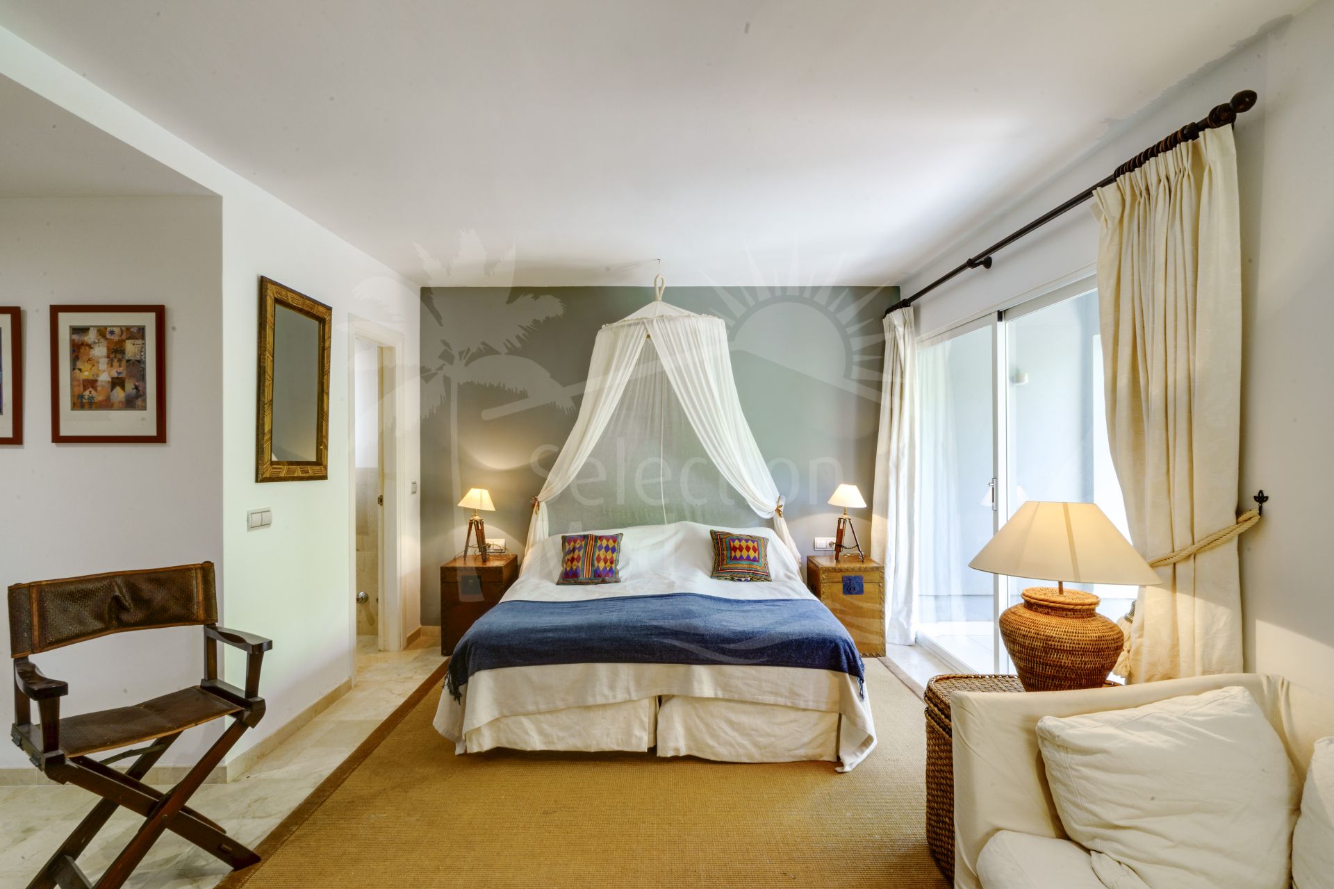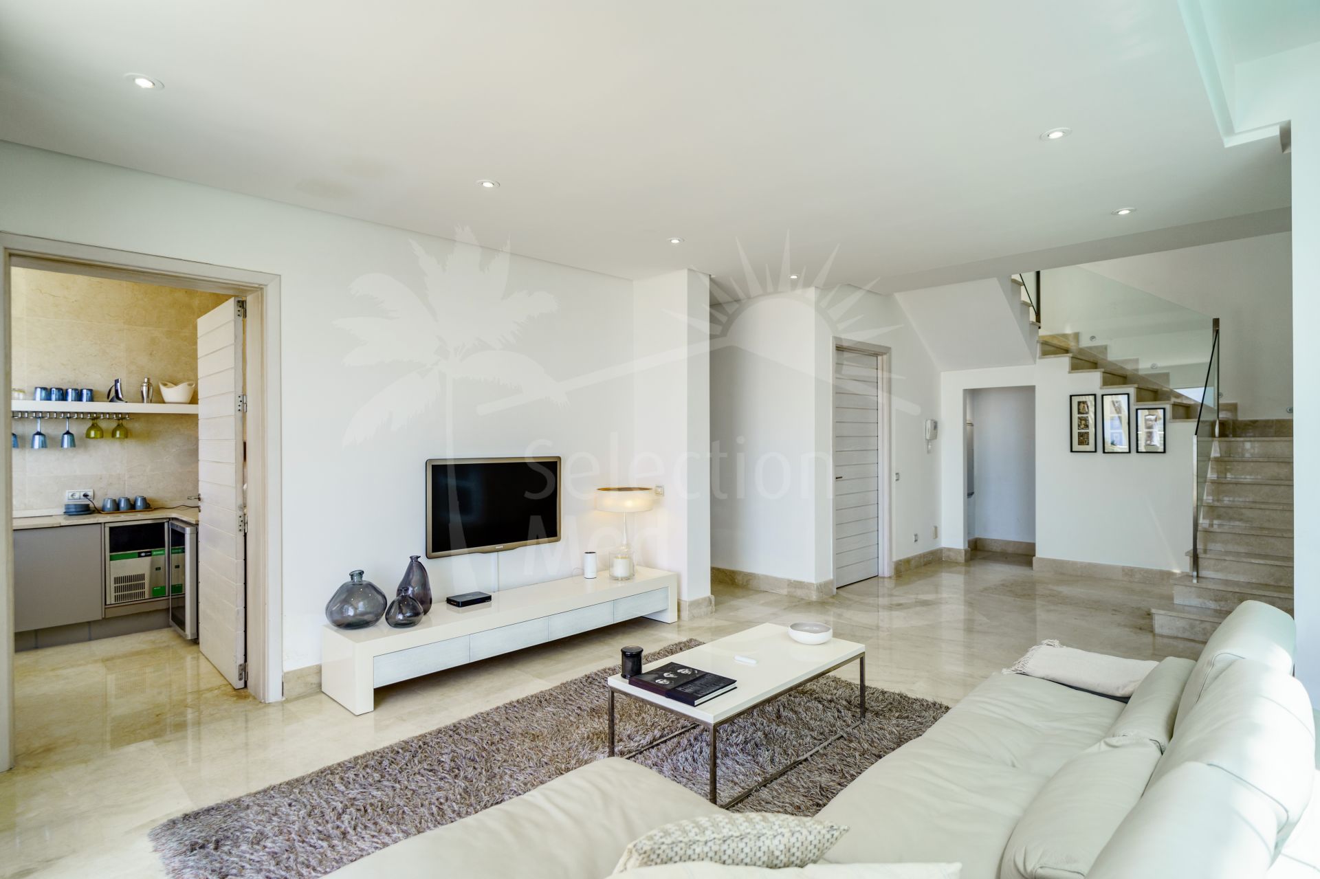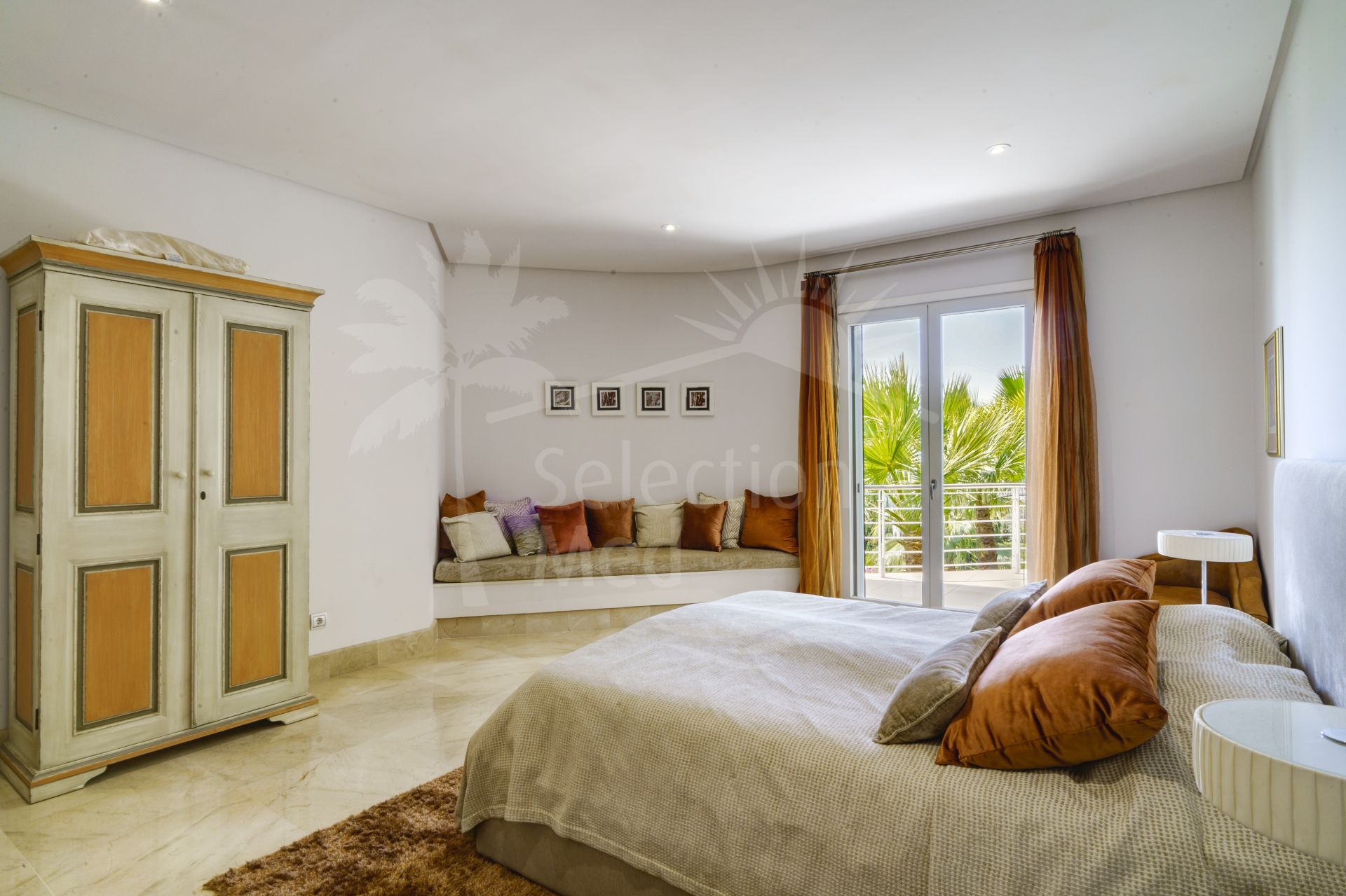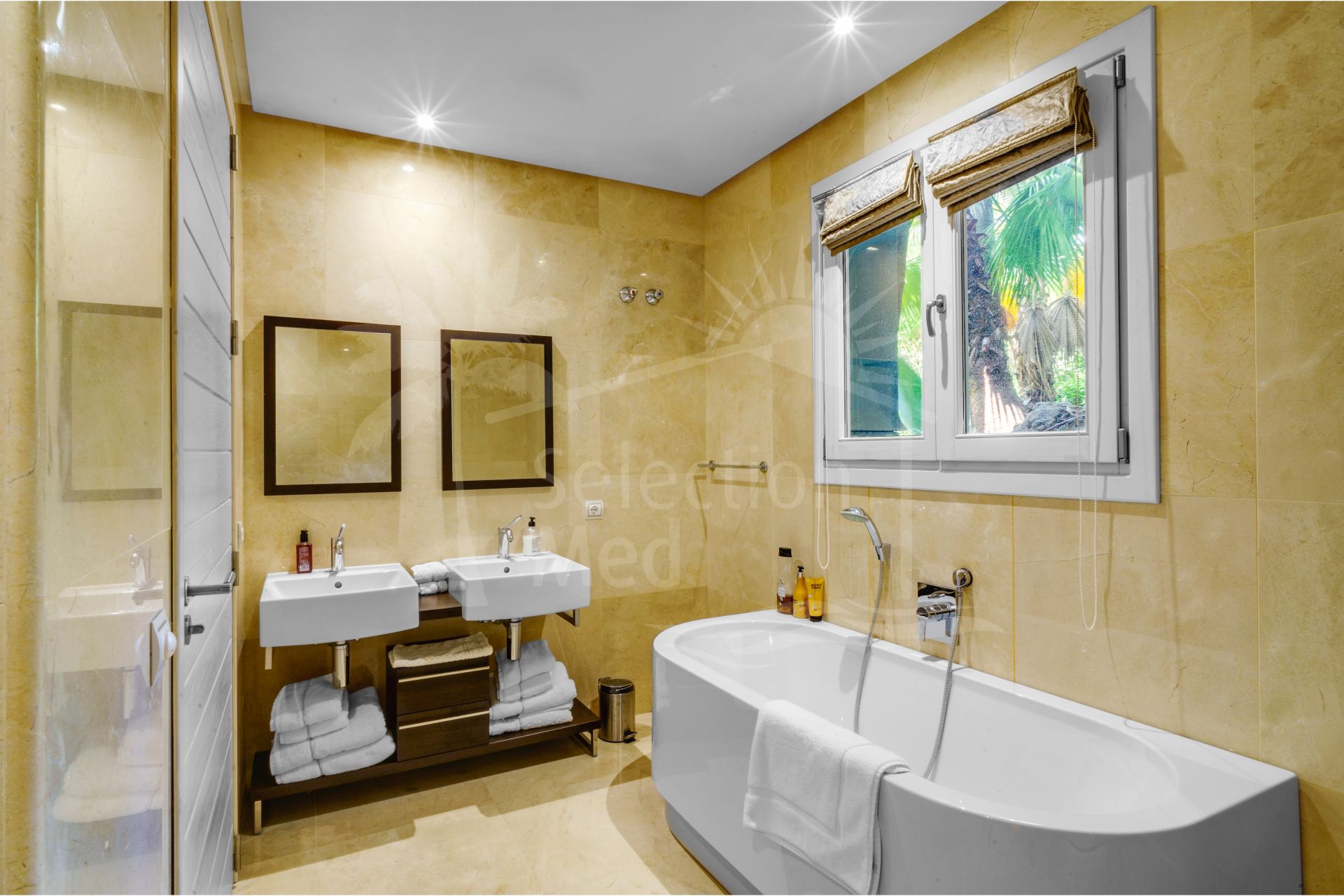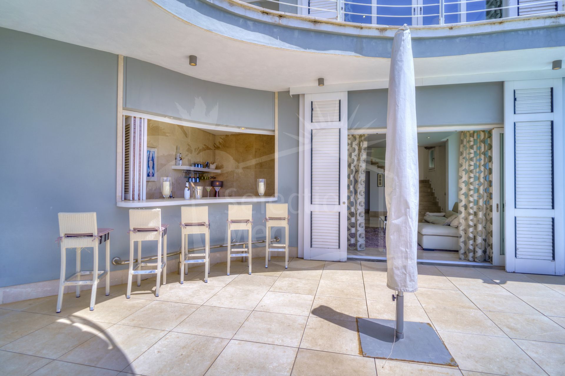 - La villa está situada en una posición elevada en el punto más alto de la urbanización, ofreciendo unas vistas panorámicas absolutamente impresionantes y excepcionales sobre todo el valle de Marbella – Estepona y su costa.