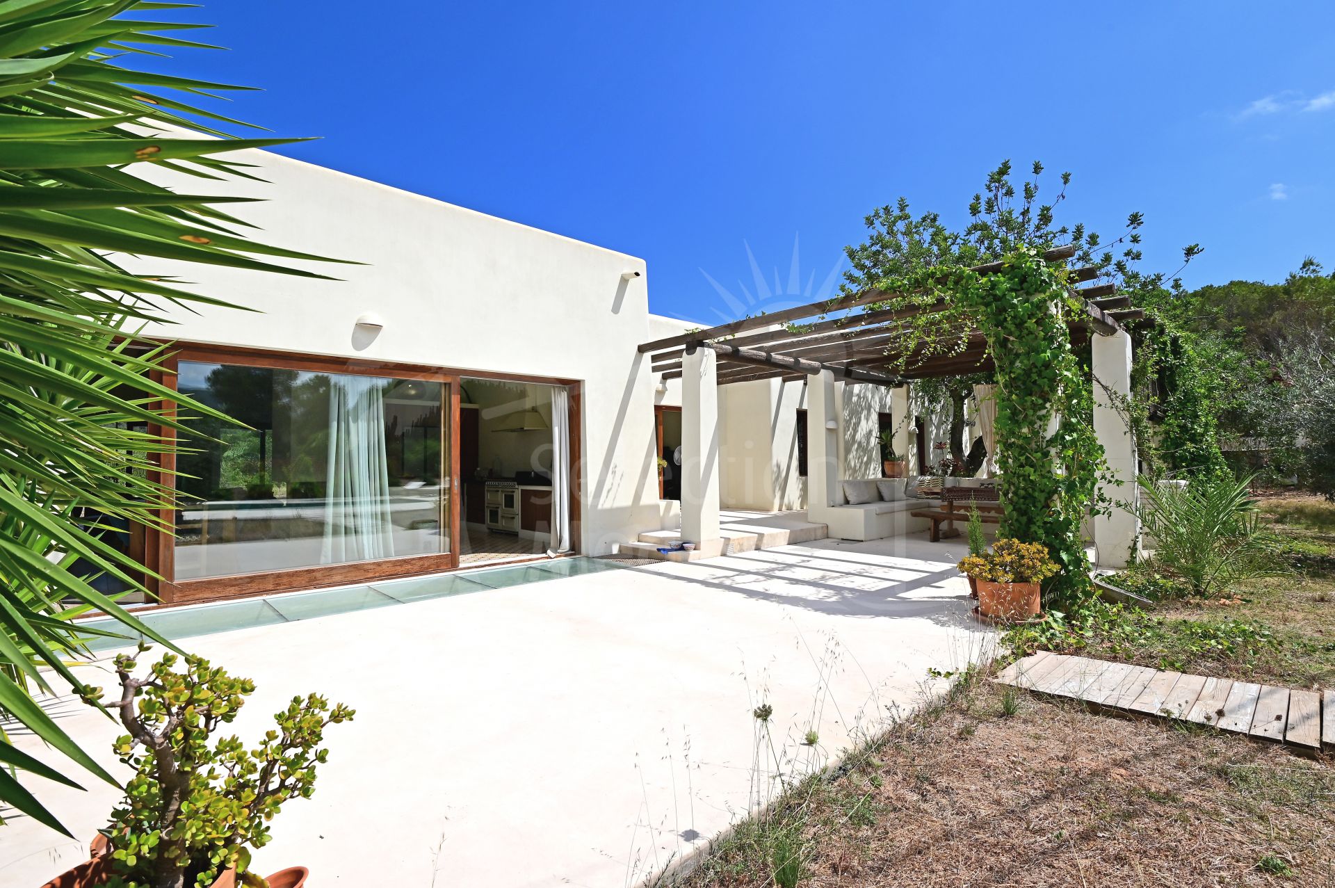 La propiedad está completamente amueblada y equipada con puertas de cristal, accesibilidad para personas con movilidad reducida y se encuentra cerca de todos los servicios y de la playa. Esta finca representa una oportunidad excepcional para quienes buscan una residencia de lujo en una de las zonas más exclusivas de Ibiza, combinando privacidad, confort y un entorno natural incomparable.