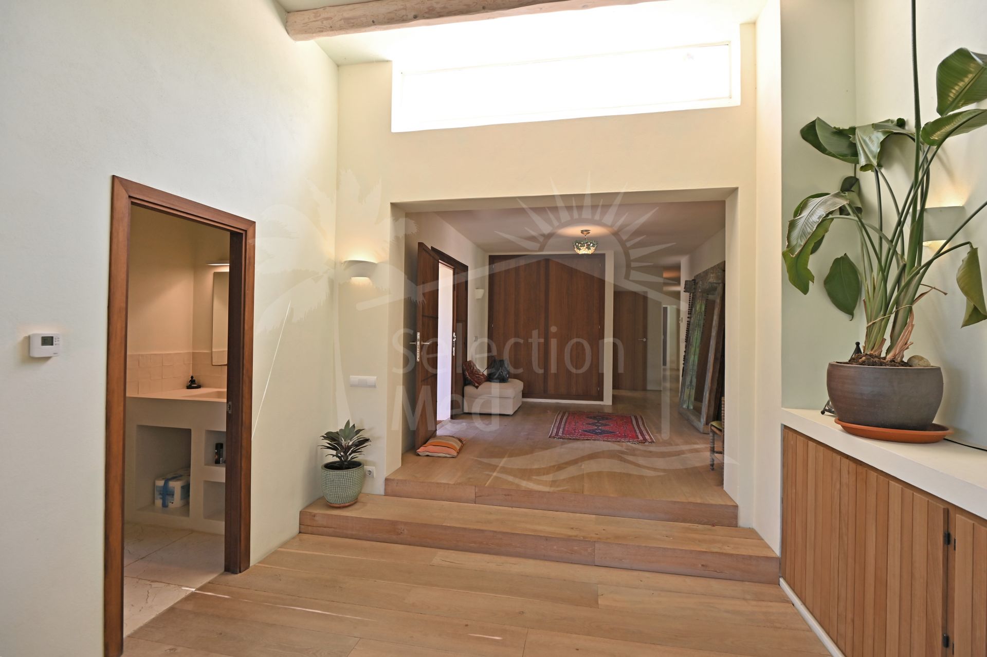 Esta exclusiva finca, situada en la codiciada zona de Es Figueral, Santa Eulalia del Río, en las Islas Baleares, ofrece una combinación perfecta de tranquilidad, privacidad y proximidad a la playa. Con una superficie construida de 400 m² sobre una generosa parcela de 11.787 m², la propiedad ha sido recientemente renovada y se presenta en excelente estado, lista para entrar a vivir. Destaca por su orientación hacia el confort y la accesibilidad, con todas las comodidades modernas y un diseño pensado para el disfrute de la vida mediterránea.
