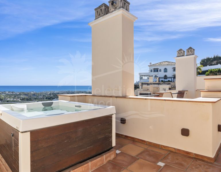 Situado en la exclusiva y tranquila comunidad cerrada de Los Almendros, este excepcional ático dúplex orientado al sur ofrece impresionantes vistas panorámicas sobre el mar Mediterráneo y las montañas circundantes. A poca distancia en coche de San Pedro de Alcántara,...