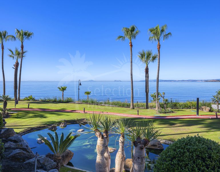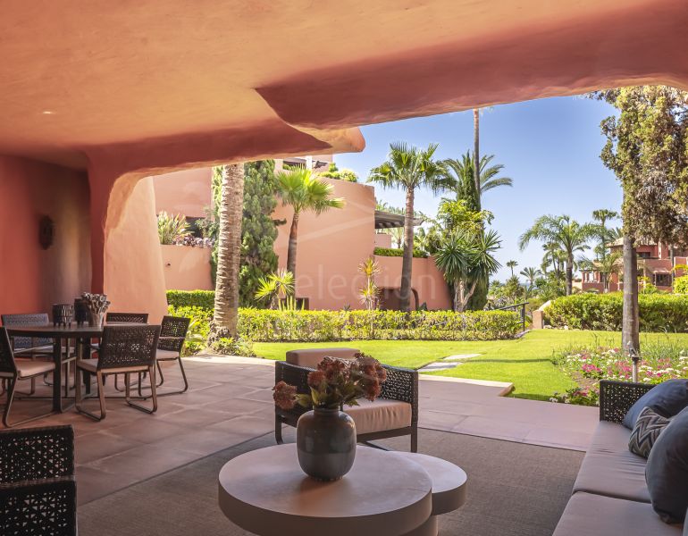 Apartamento Planta Baja en venta en Estepona Este, Estepona con 2 dormitorios, 2 baños, 2 baños en suite y con orientación sur, con piscina comunitaria, garaje privado (1 plazas) y jardín privado. Respecto a las dimensiones, la propiedad presenta 155...