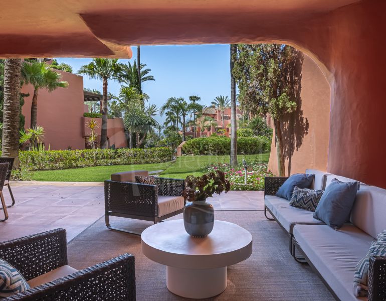 Torre Bermeja 1802 Este apartamento en planta baja, con orientación sur, 3 dormitorios y 3 baños, ha sido completamente renovado con acabados de alta calidad y ofrece unas vistas encantadoras a los exuberantes jardines. Características destacadas El apartamento se encuentra en la exclusiva...