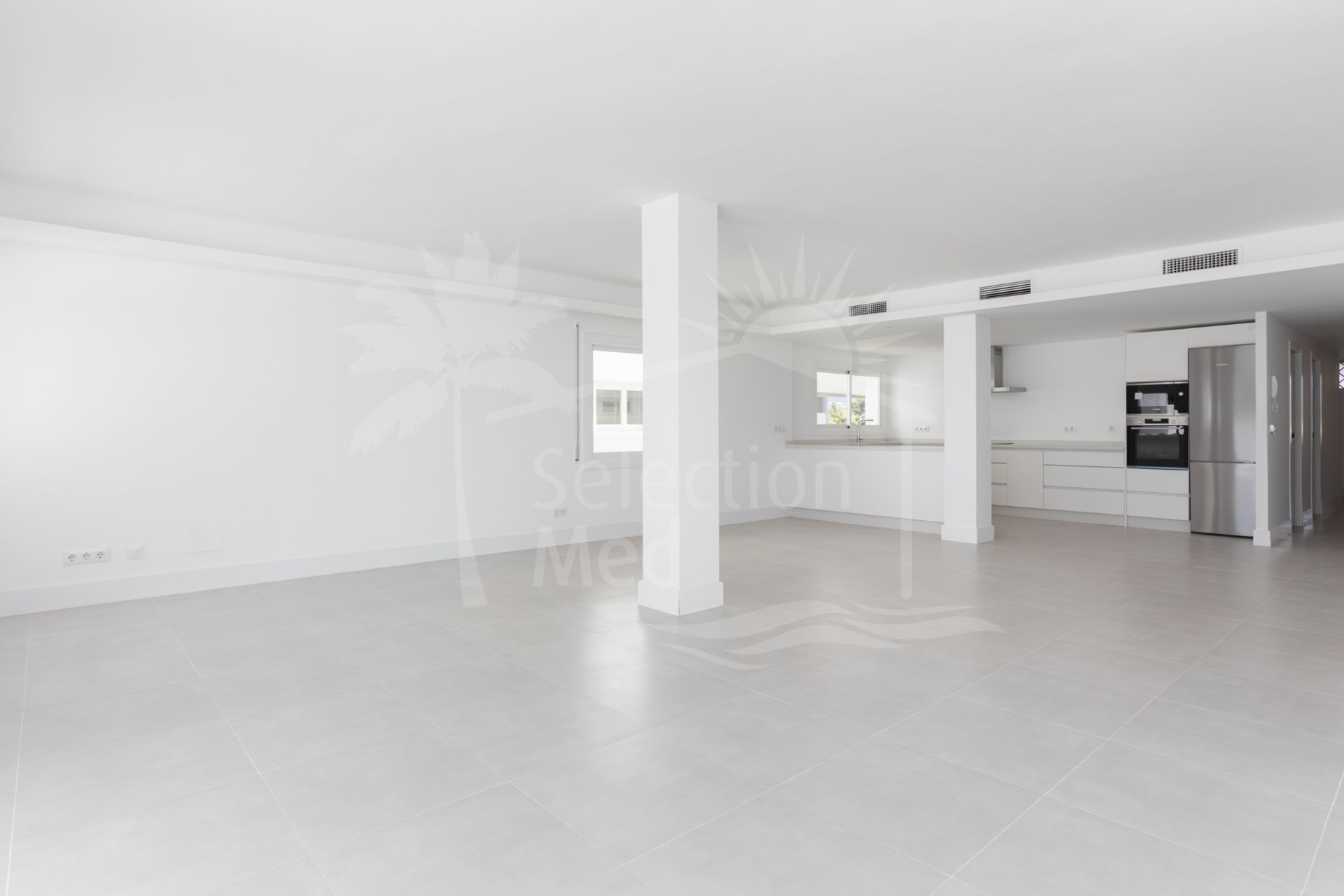 Consta de 4 Dormitorios todos con su propio baño en suite, hall de entrada, aseos de invitados, cocina abierta diseñada para fluir hacia un amplio y luminoso salón comedor con salida a una amplia terraza de 79m² con Orientación Suroeste, perfecta para disfrutar del Sol todo el día.