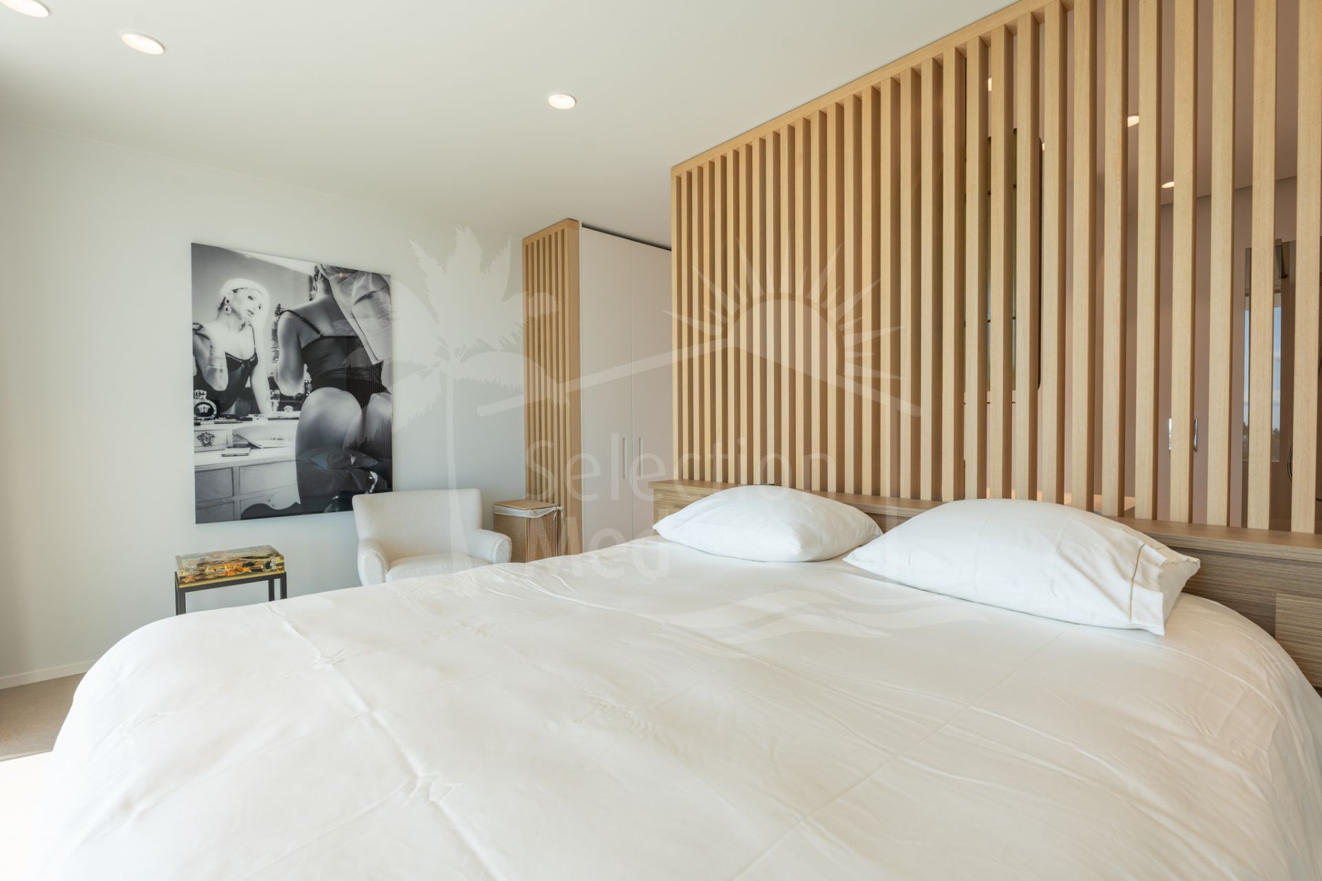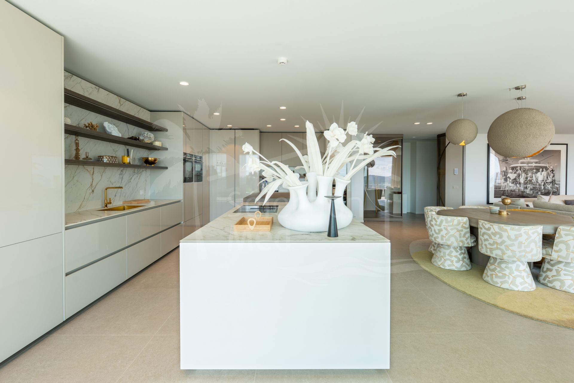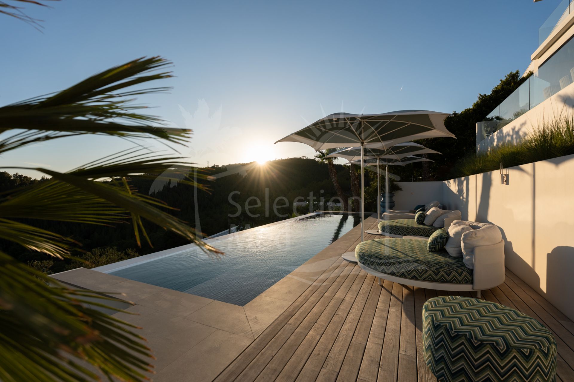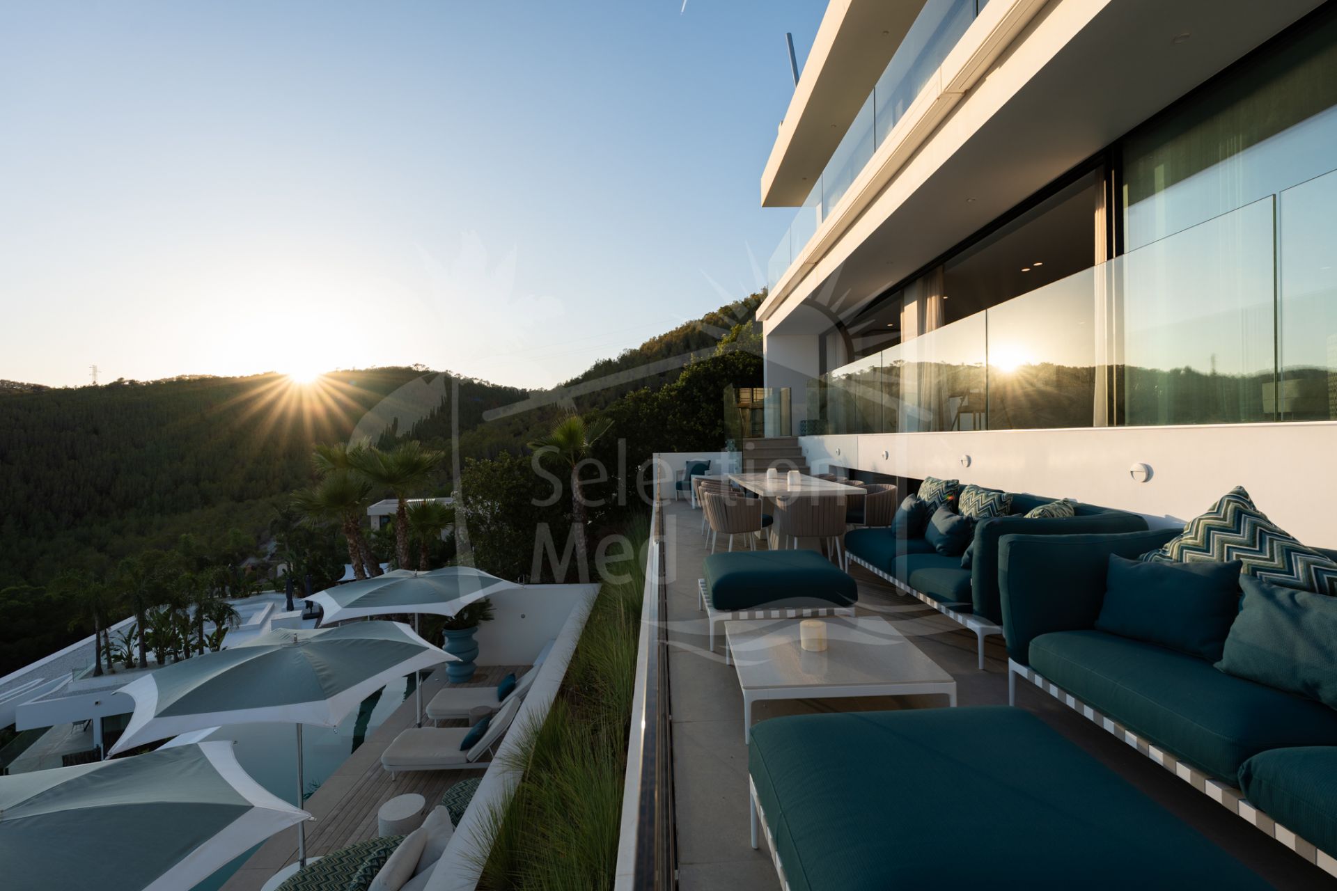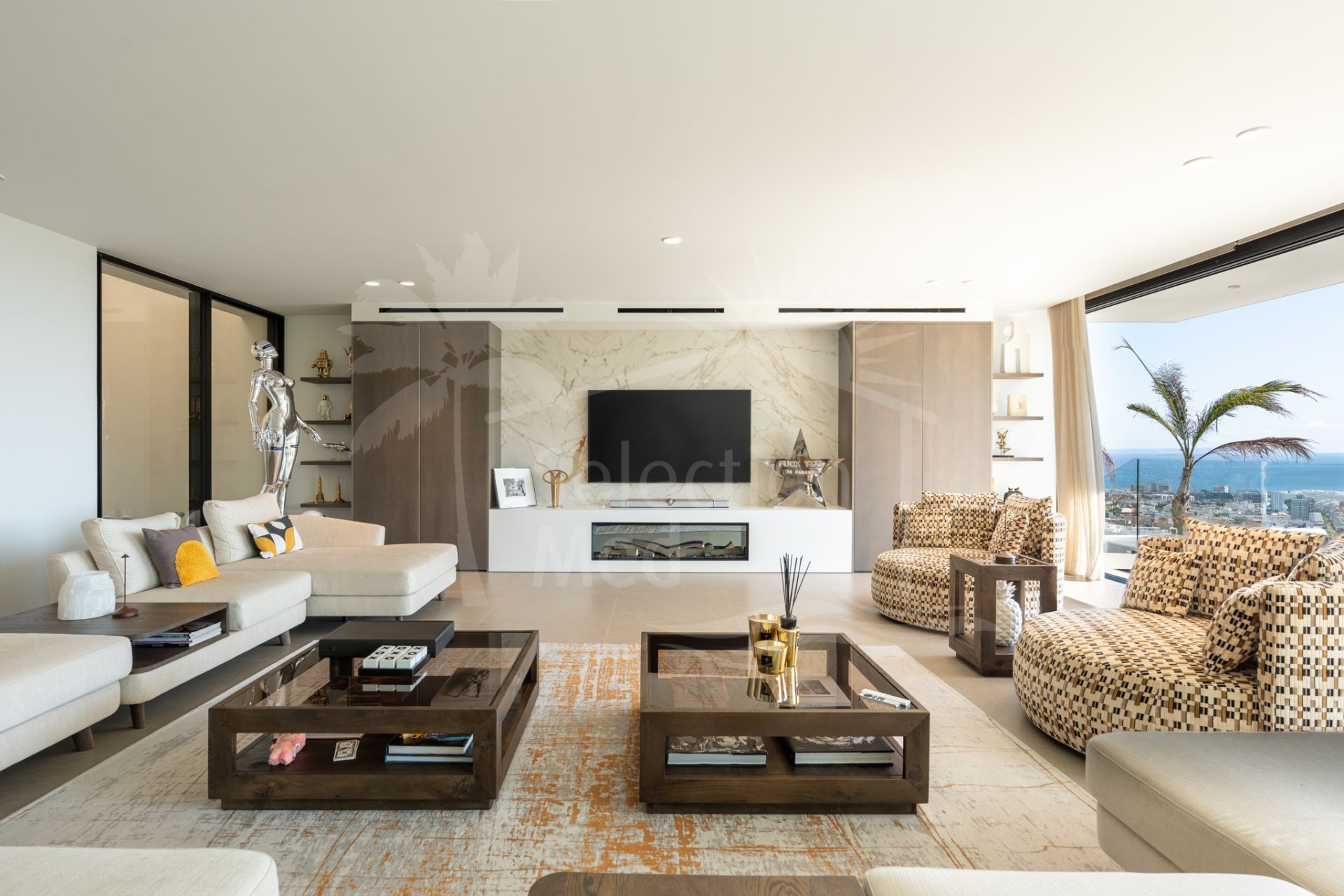 Situada sobre una parcela de 1.113 m², la villa cuenta con 550 m² construidos, diseñados con materiales de alta gama y acabados de lujo. Grandes ventanales y espacios abiertos permiten disfrutar de las vistas desde prácticamente todas las estancias. Dispone de cuatro amplios dormitorios, cada uno con su baño en suite, garantizando confort y privacidad.