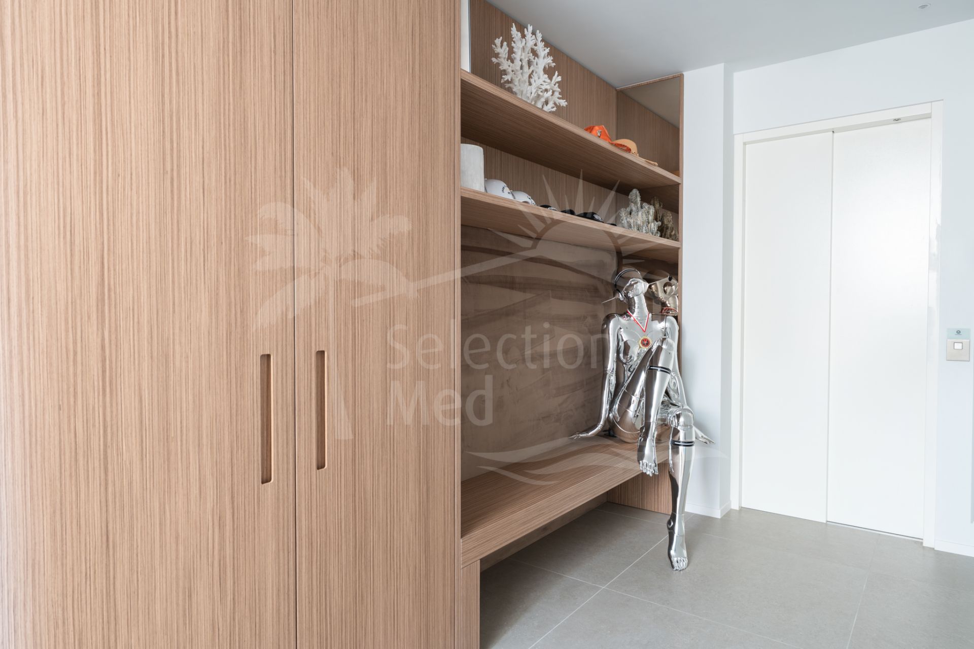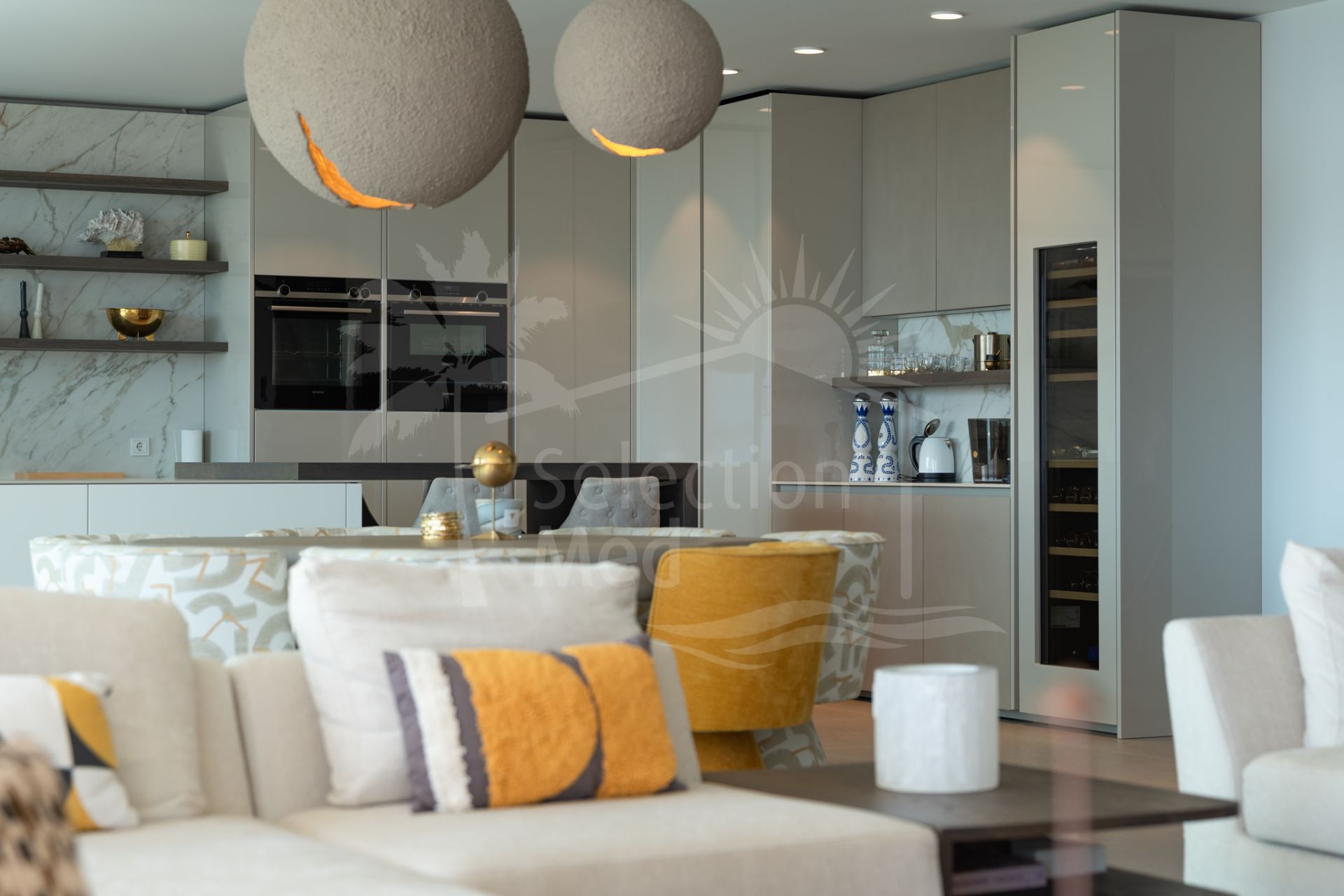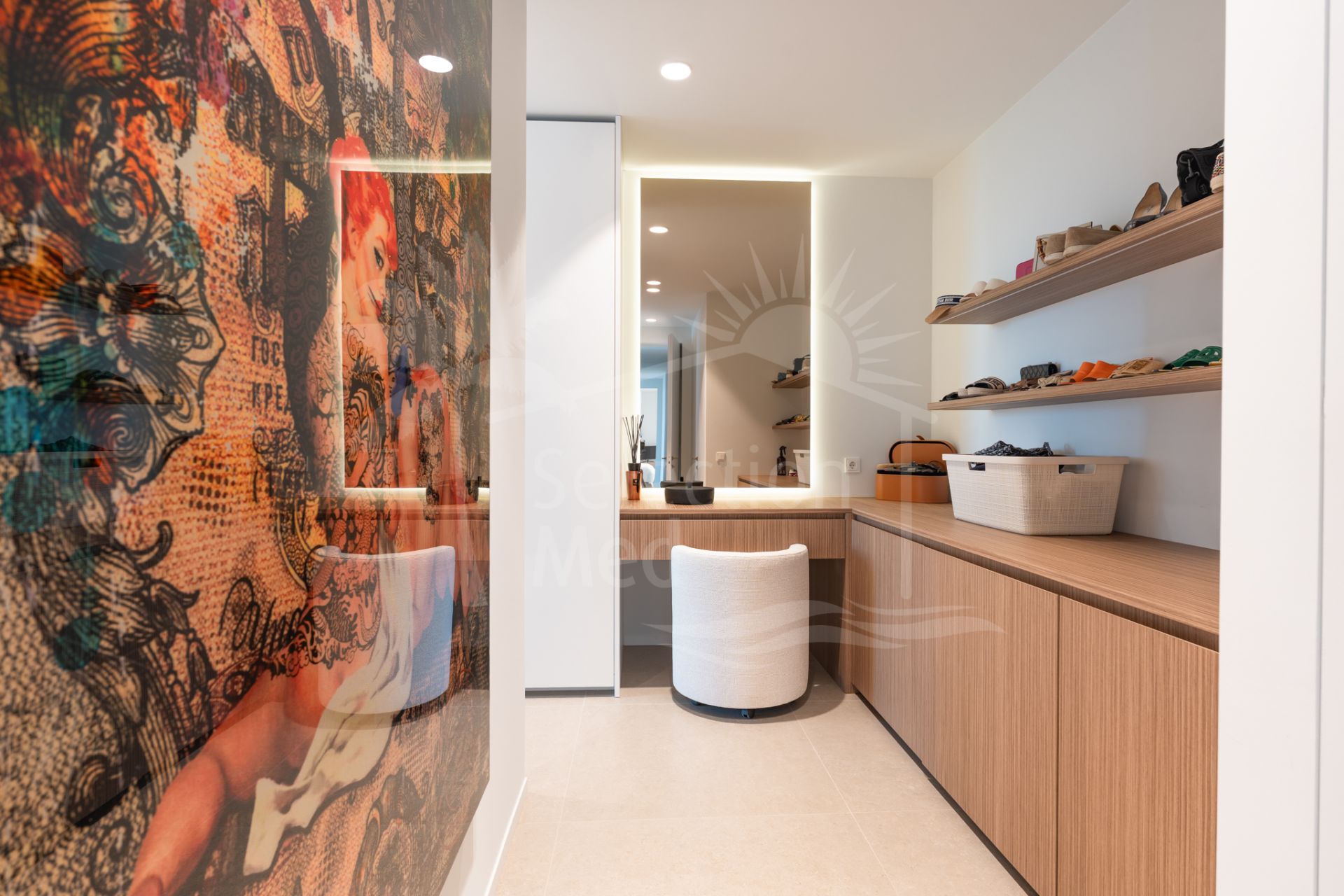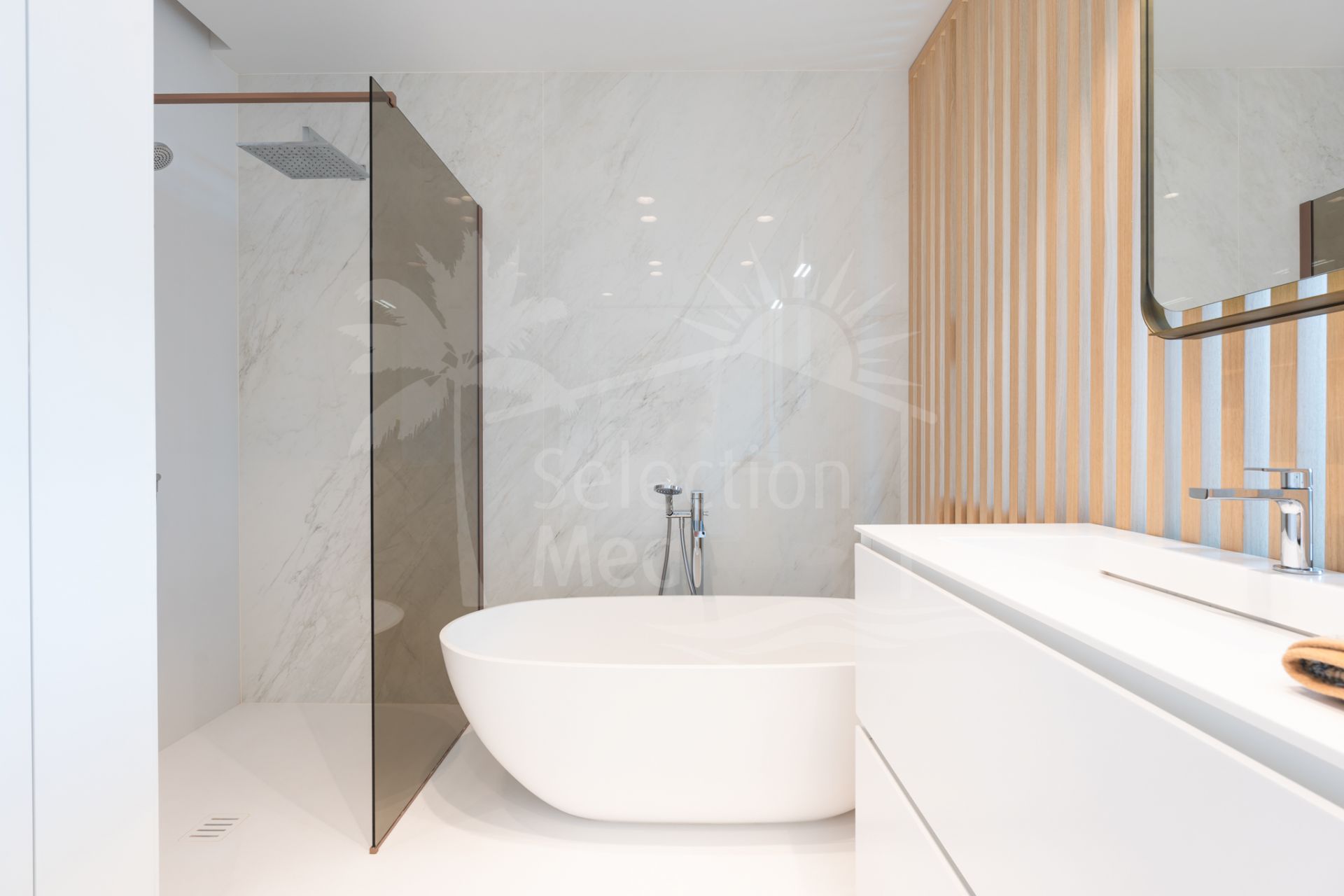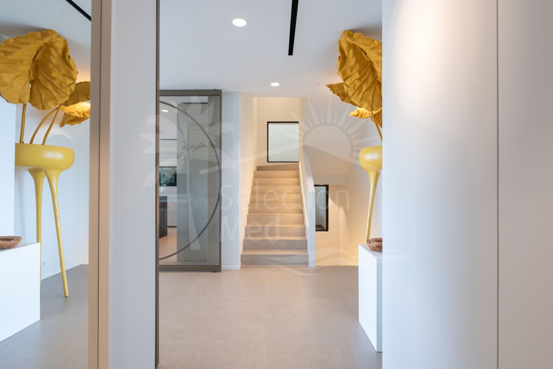 Situada sobre una parcela de 1.113 m², la villa cuenta con 550 m² construidos, diseñados con materiales de alta gama y acabados de lujo. Grandes ventanales y espacios abiertos permiten disfrutar de las vistas desde prácticamente todas las estancias. Dispone de cuatro amplios dormitorios, cada uno con su baño en suite, garantizando confort y privacidad.