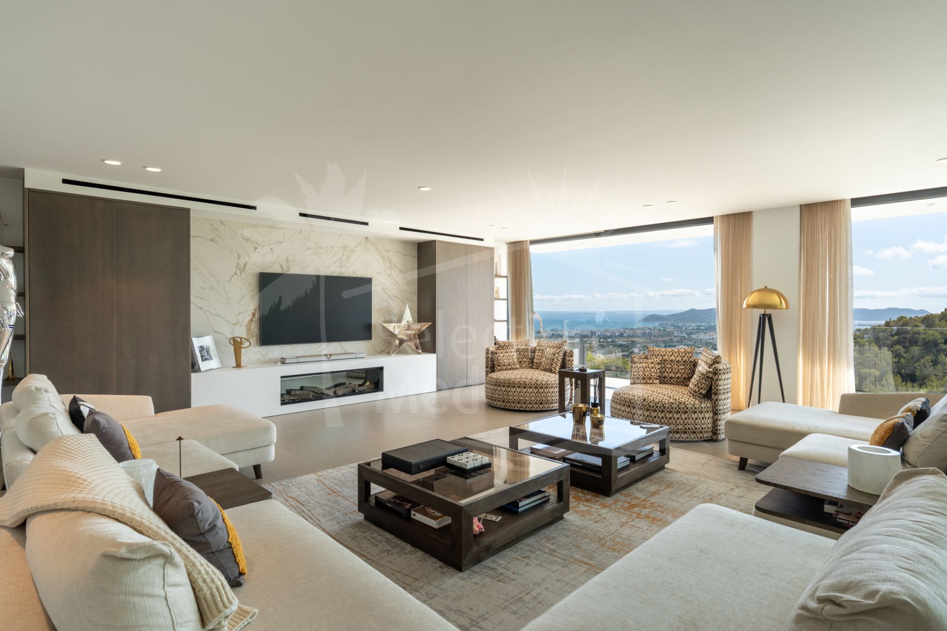 Ubicada en una posición elevada dentro de una de las zonas más exclusivas de Ibiza, esta extraordinaria villa disfruta de vistas panorámicas ininterrumpidas al mar, la ciudad, el campo y las montañas, dominando todo su entorno. La propiedad ofrece una sensación única de amplitud, privacidad y prestigio. A pesar de su entorno tranquilo, se encuentra cerca de Ibiza ciudad, playas de aguas cristalinas, restaurantes de alto nivel y servicios esenciales. El aeropuerto internacional está fácilmente accesible.
