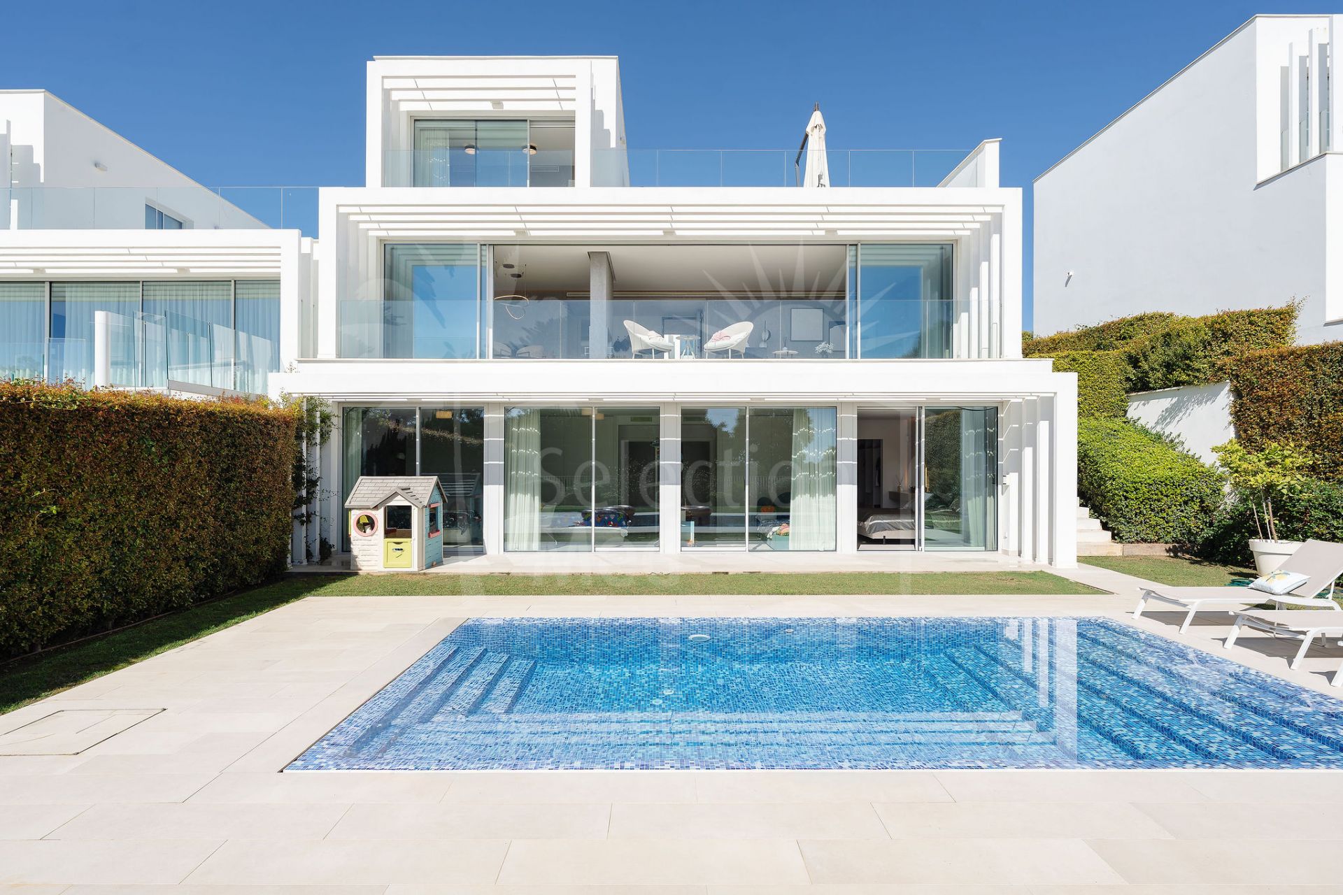 Situado en una comunidad cerrada de 24 horas segura, los residentes también disfrutan del acceso a un gimnasio, piscina y dos pistas de padel, con los clubes de golf y playa de clase mundial de La Reserva a pocos minutos. Cerca de las cafeterías, restaurantes y esenciales cotidianos son fácilmente accesibles, ofreciendo lujo, privacidad y estilo de vida en una de las direcciones más codiciadas de Sotogrande.