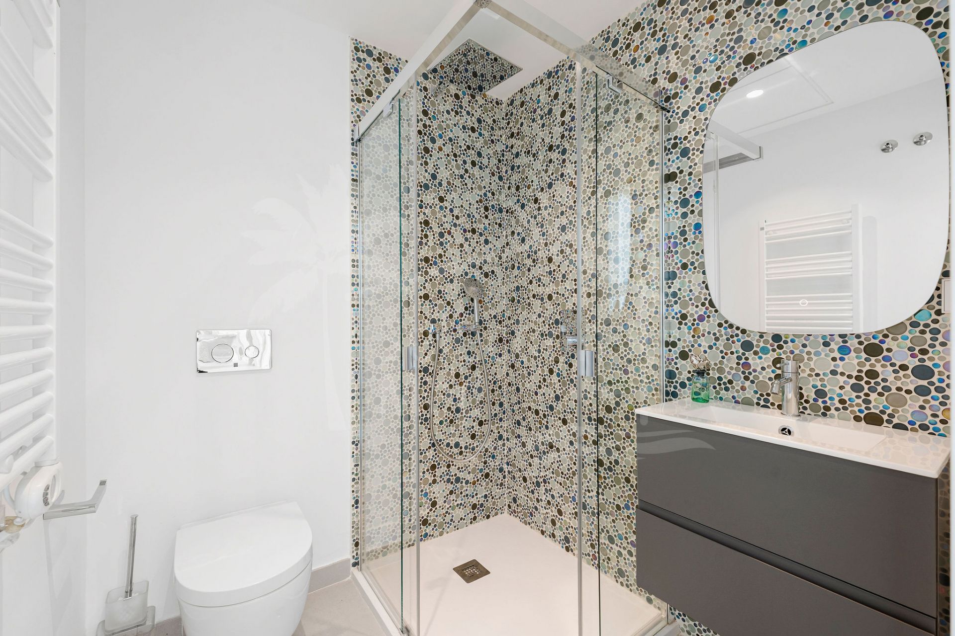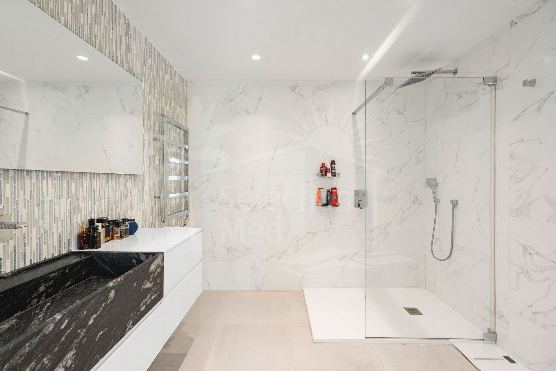 En el nivel del jardín, cuatro amplios dormitorios se abren directamente a la piscina y jardines ajardinados, creando un retiro privado para la familia y los huéspedes. Elegantes baños con duchas a ras de suelo y acabados refinados aumentan la sensación de confort y estilo, mientras que la conexión a la terraza junto a la piscina hace que este piso sea ideal para una vida relajada, tipo resort.