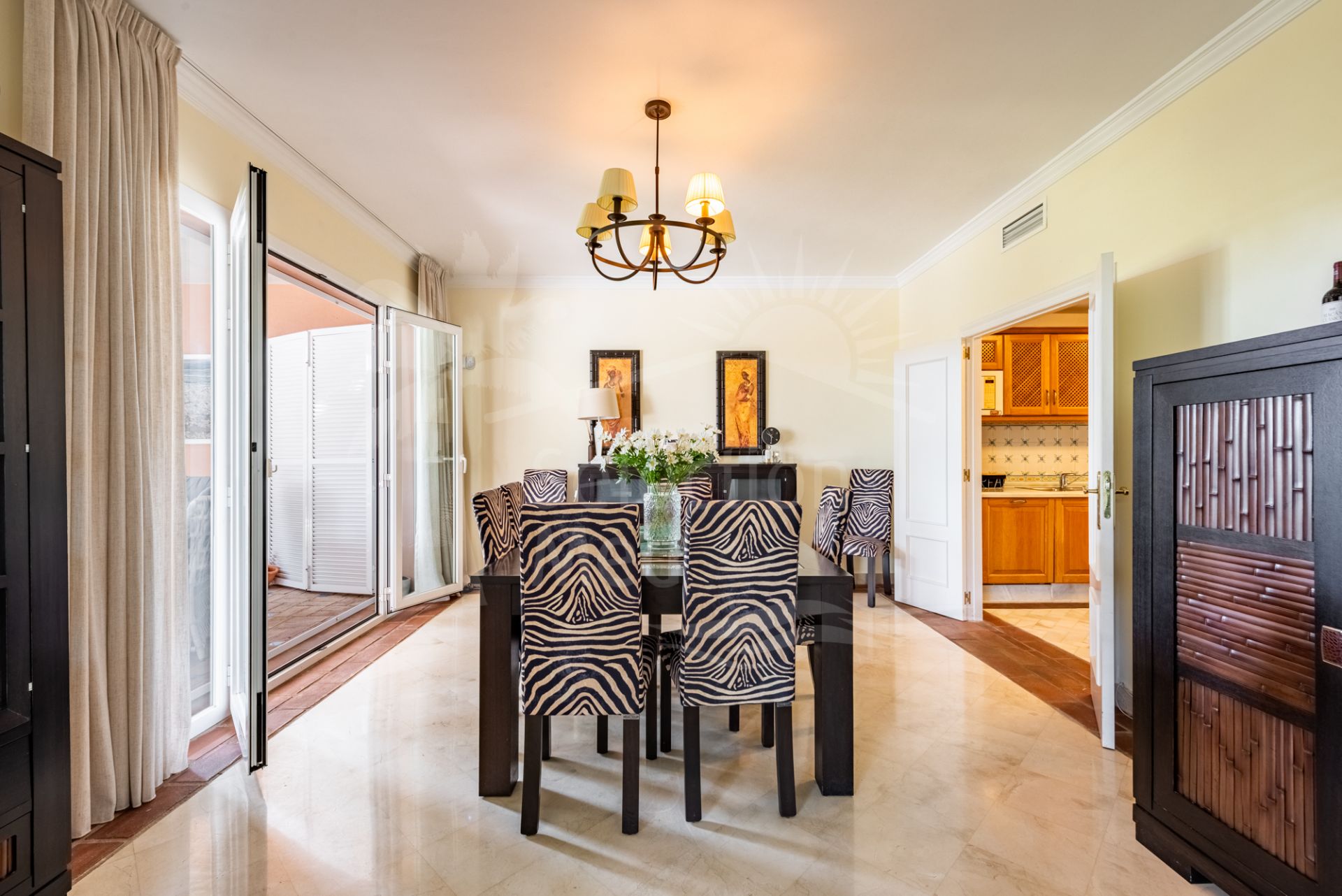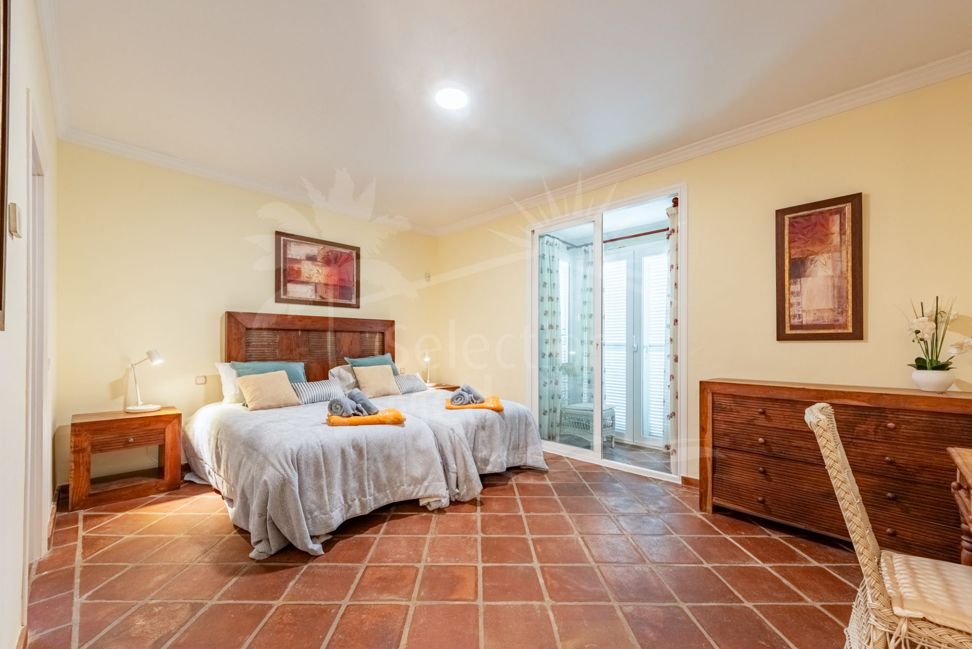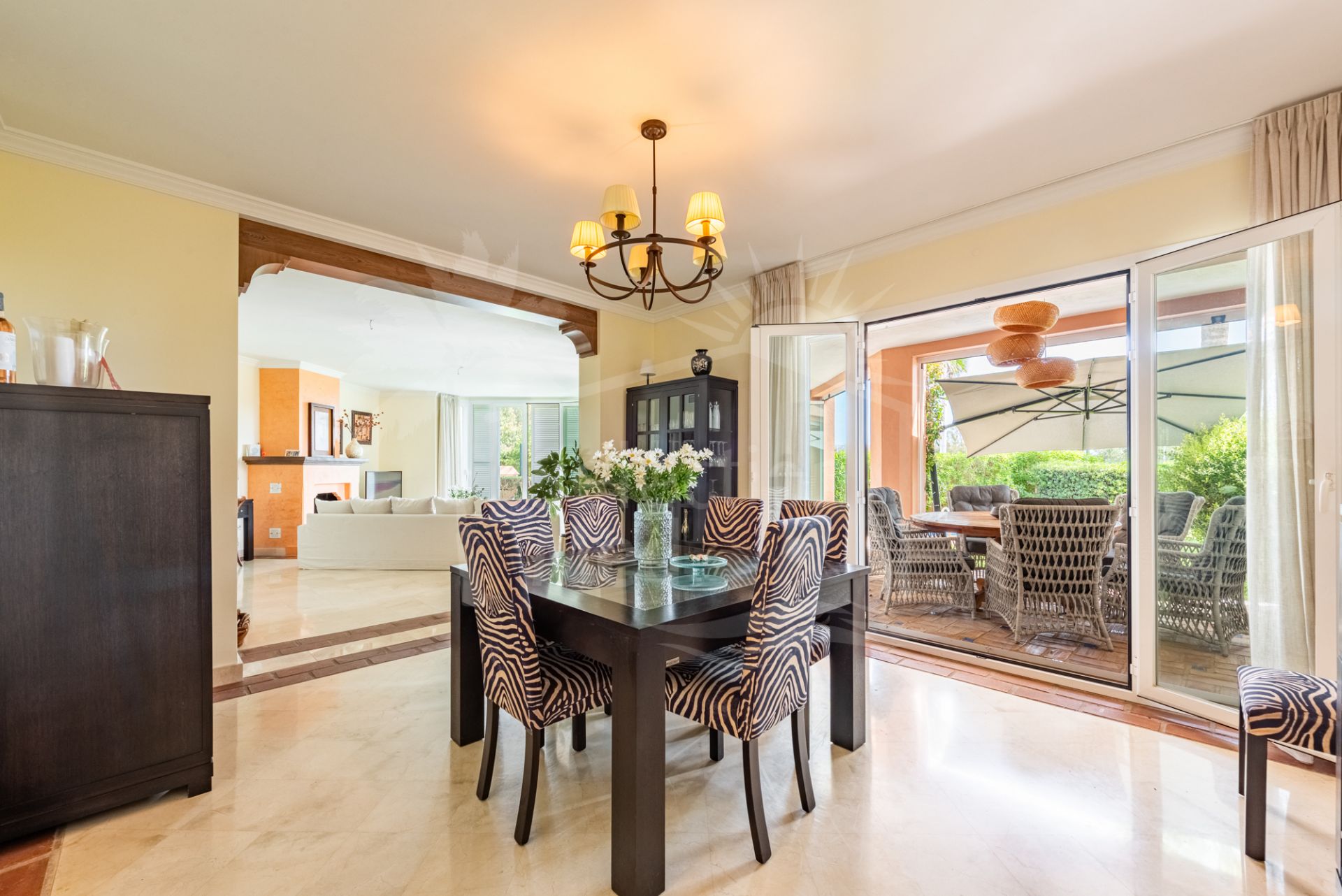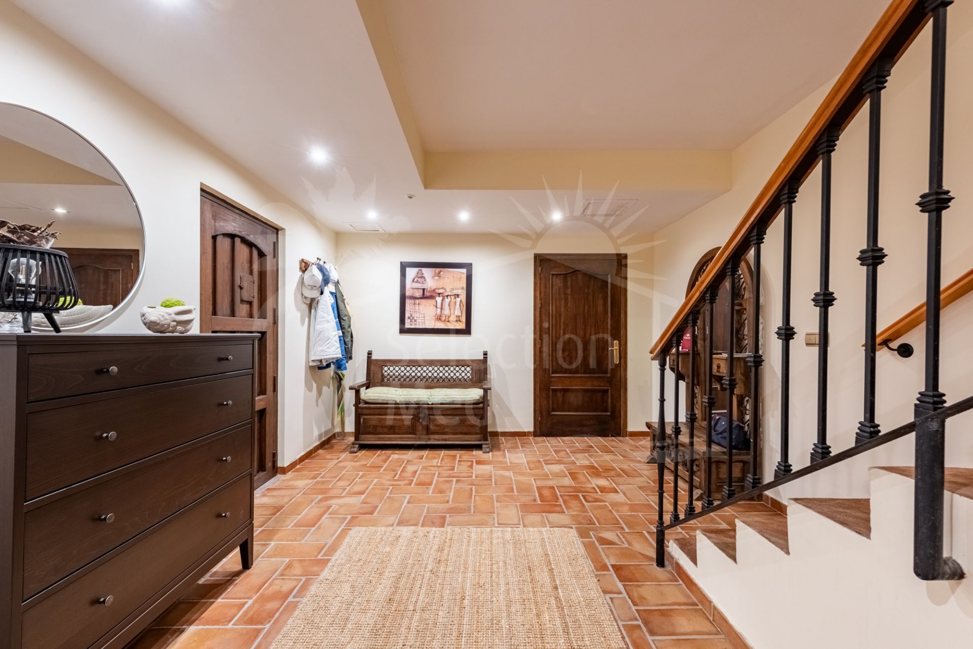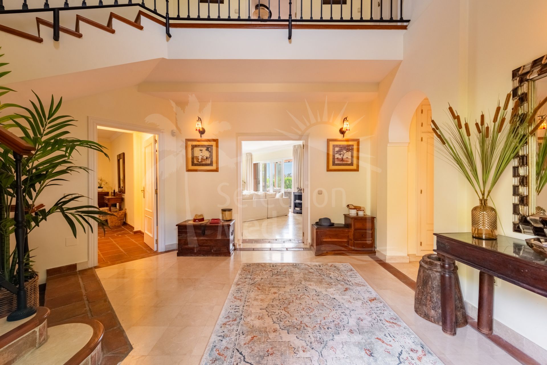 Construida en el característico estilo andaluz rústico y colorido por el que es conocida La Perla de la Bahía, la propiedad cuenta con materiales de alta calidad, incluyendo calefacción por suelo radiante en la planta baja y en todos los baños, garantizando confort durante todo el año.
