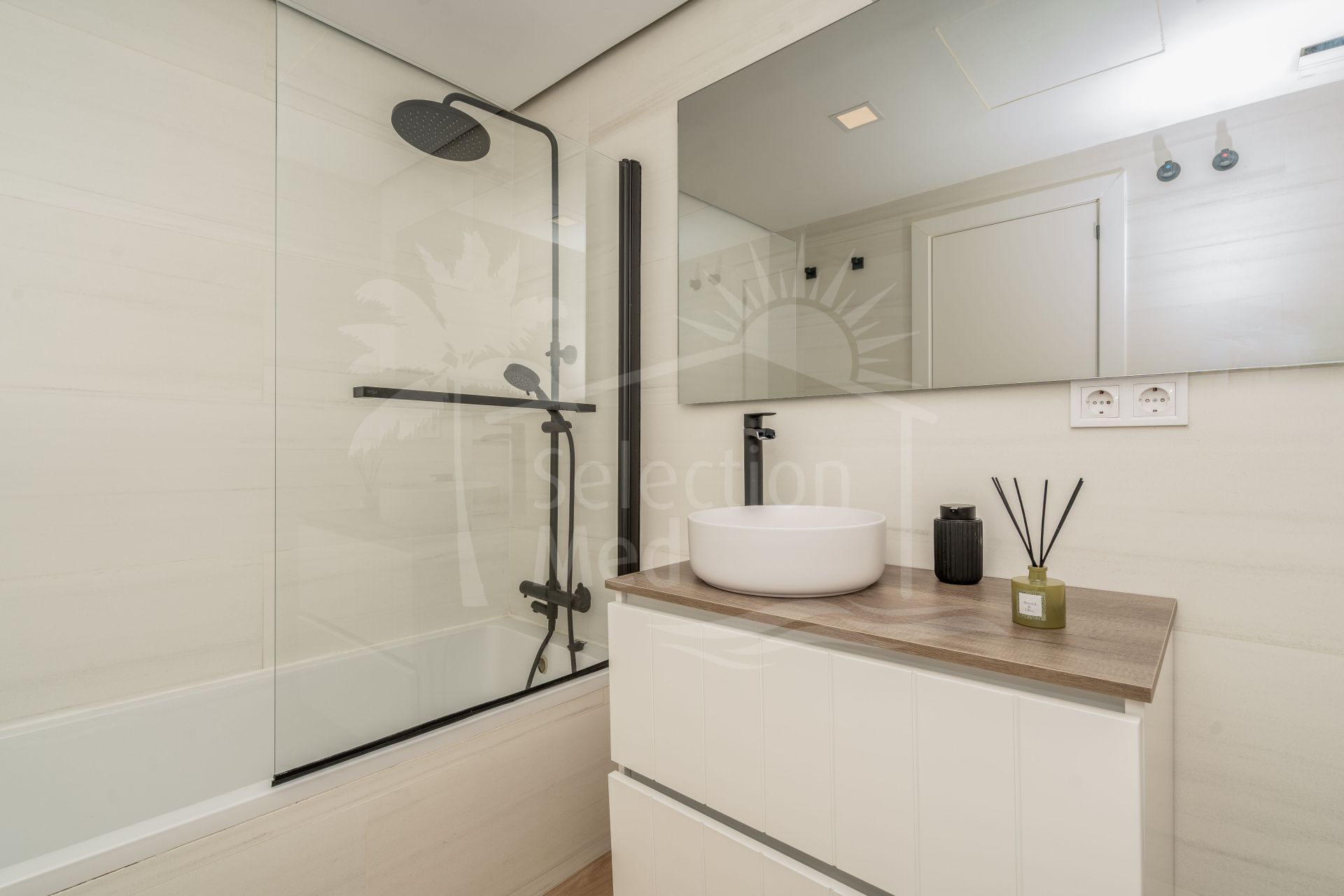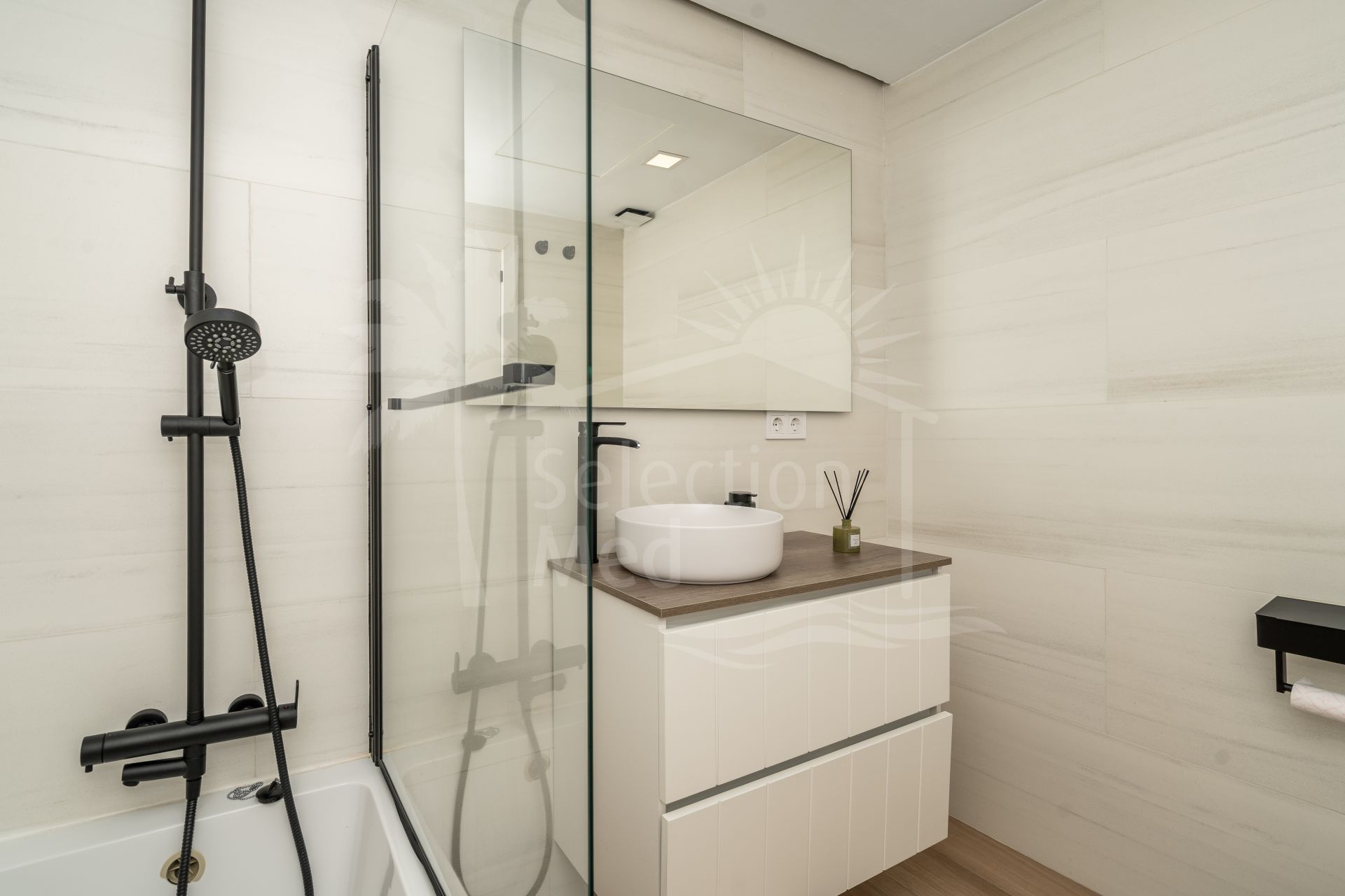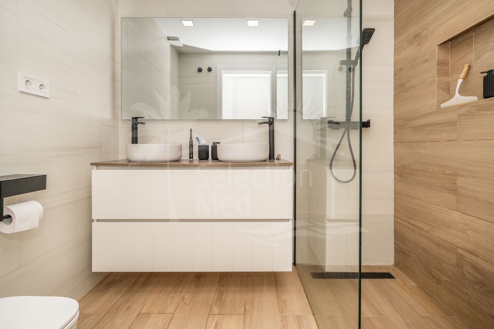 Fue renovado recientemente por los propietarios, con esmero y pasión, hace apenas dos años. Aunque se encuentra en la planta baja, la terraza de generosas dimensiones está ligeramente elevada, lo que da la sensación de estar en un primer piso y ofrece mayor privacidad, con vistas a la piscina.