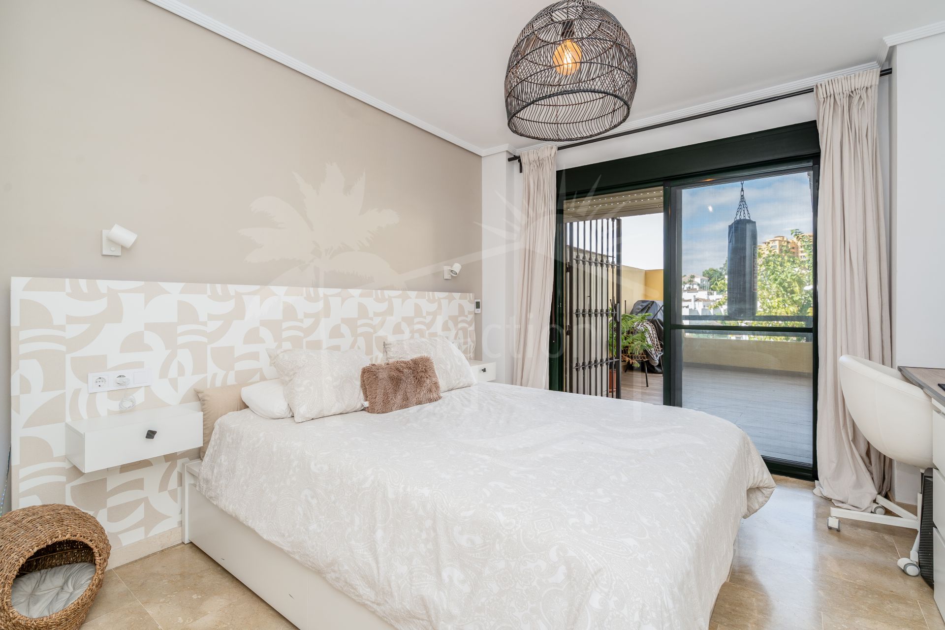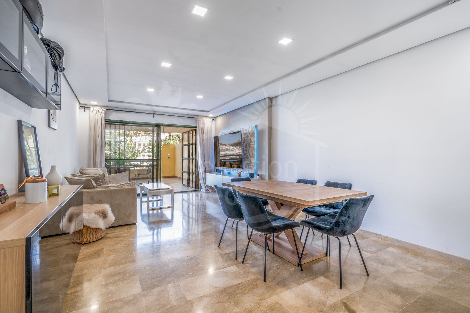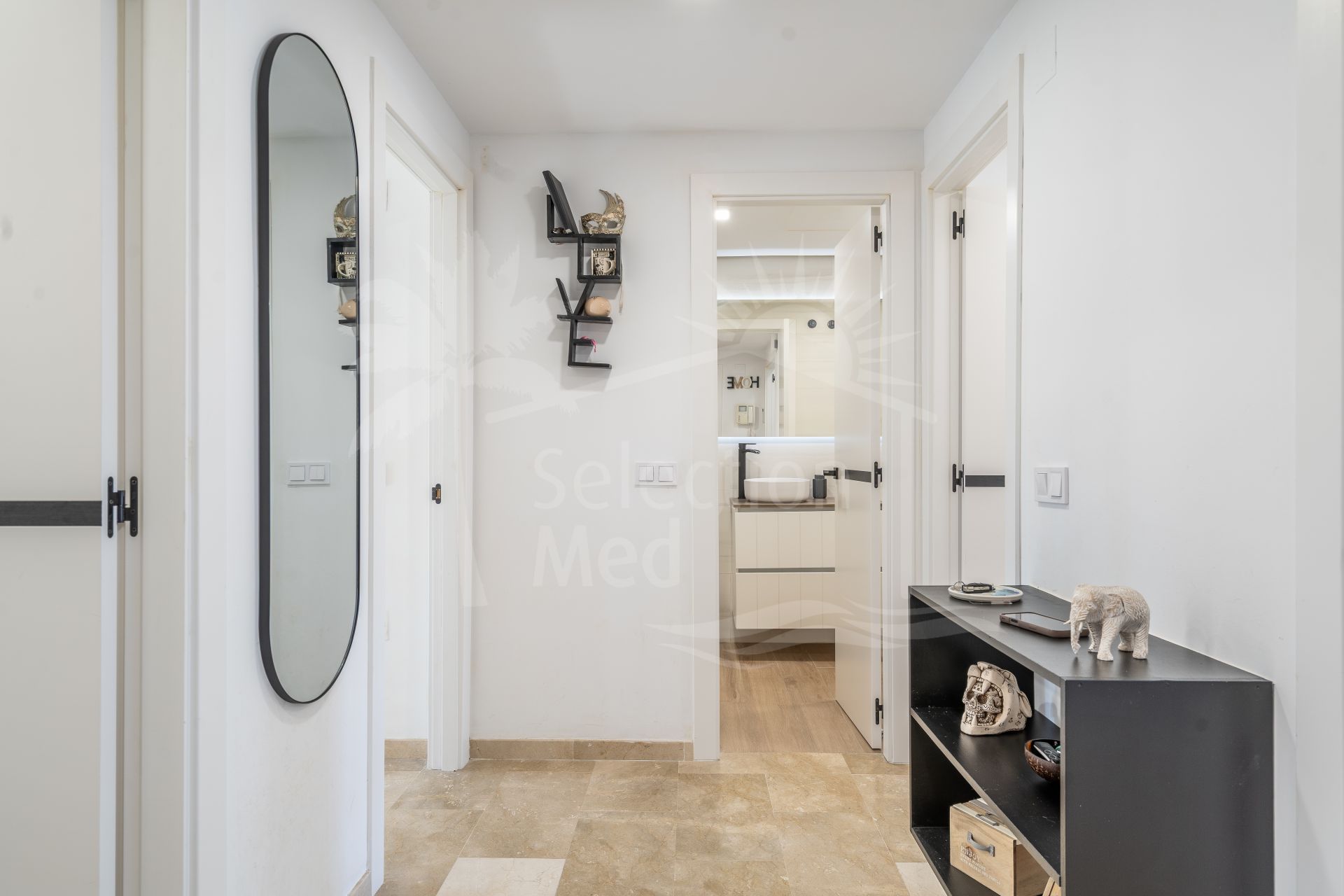 Fue renovado recientemente por los propietarios, con esmero y pasión, hace apenas dos años. Aunque se encuentra en la planta baja, la terraza de generosas dimensiones está ligeramente elevada, lo que da la sensación de estar en un primer piso y ofrece mayor privacidad, con vistas a la piscina.
