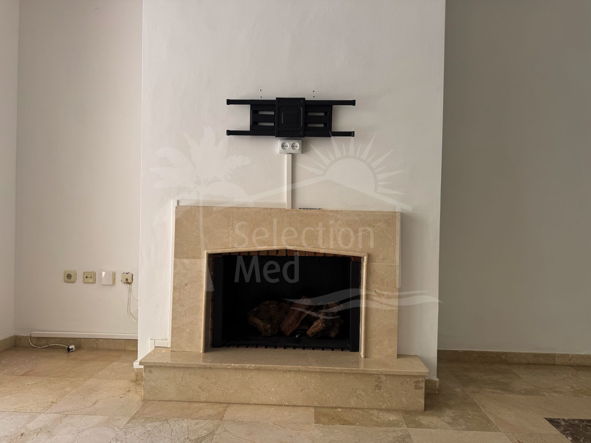 El apartamento cuenta con un hall de entrada acogedor con armarios empotrados, que da paso a un generoso salón con chimenea y acceso directo a una amplia terraza cubierta orientada al suroeste – ideal para disfrutar del sol y veladas al aire libre. La cocina totalmente equipada destaca por sus encimeras de granito y electrodomésticos de gama alta, complementada por 2 dormitorios y 2 baños (uno en-suite). Se incluye una plaza de aparcamiento larga y un enorme trastero en el precio.