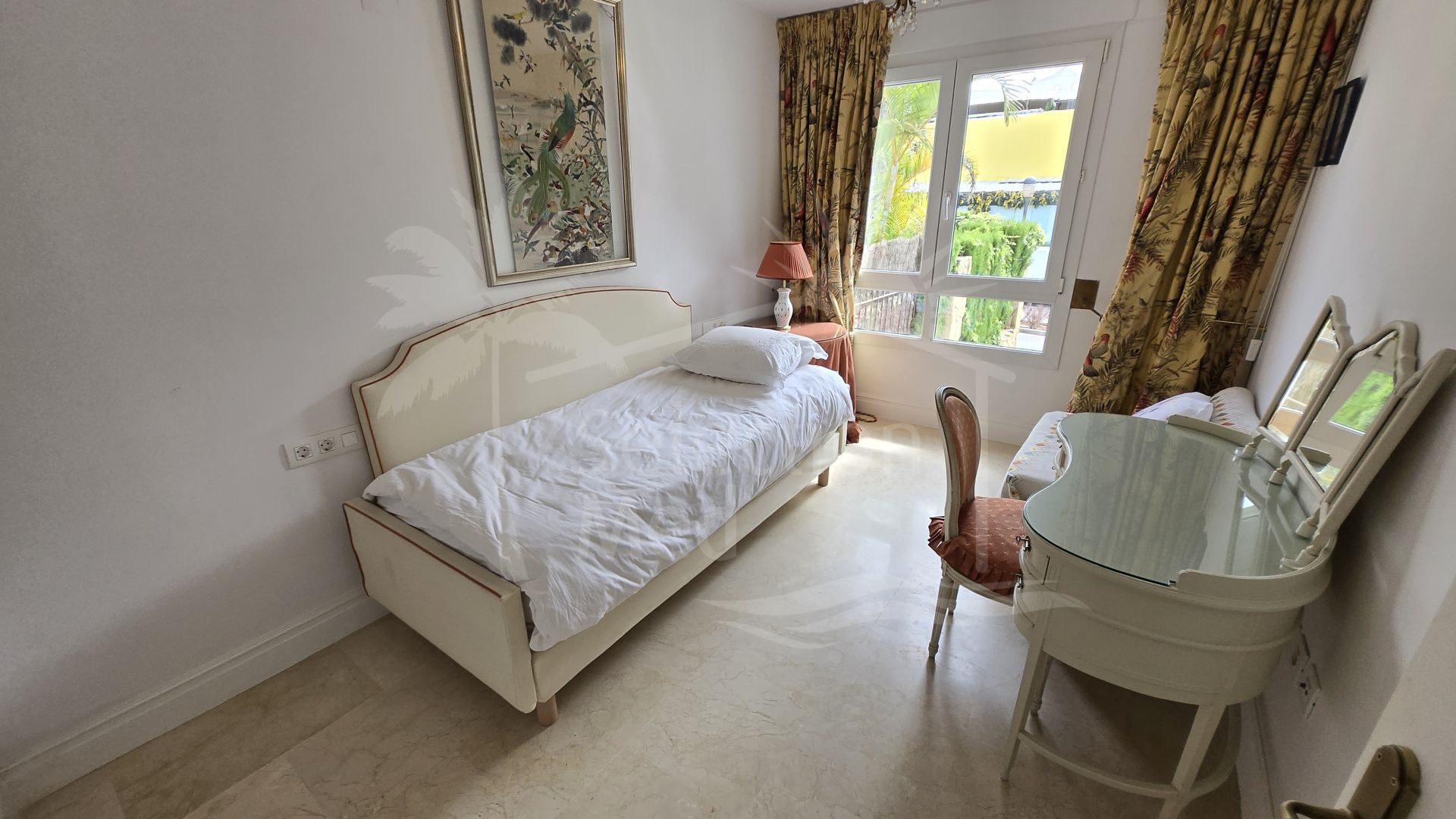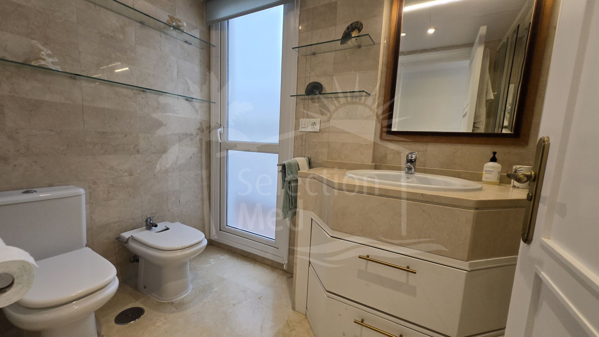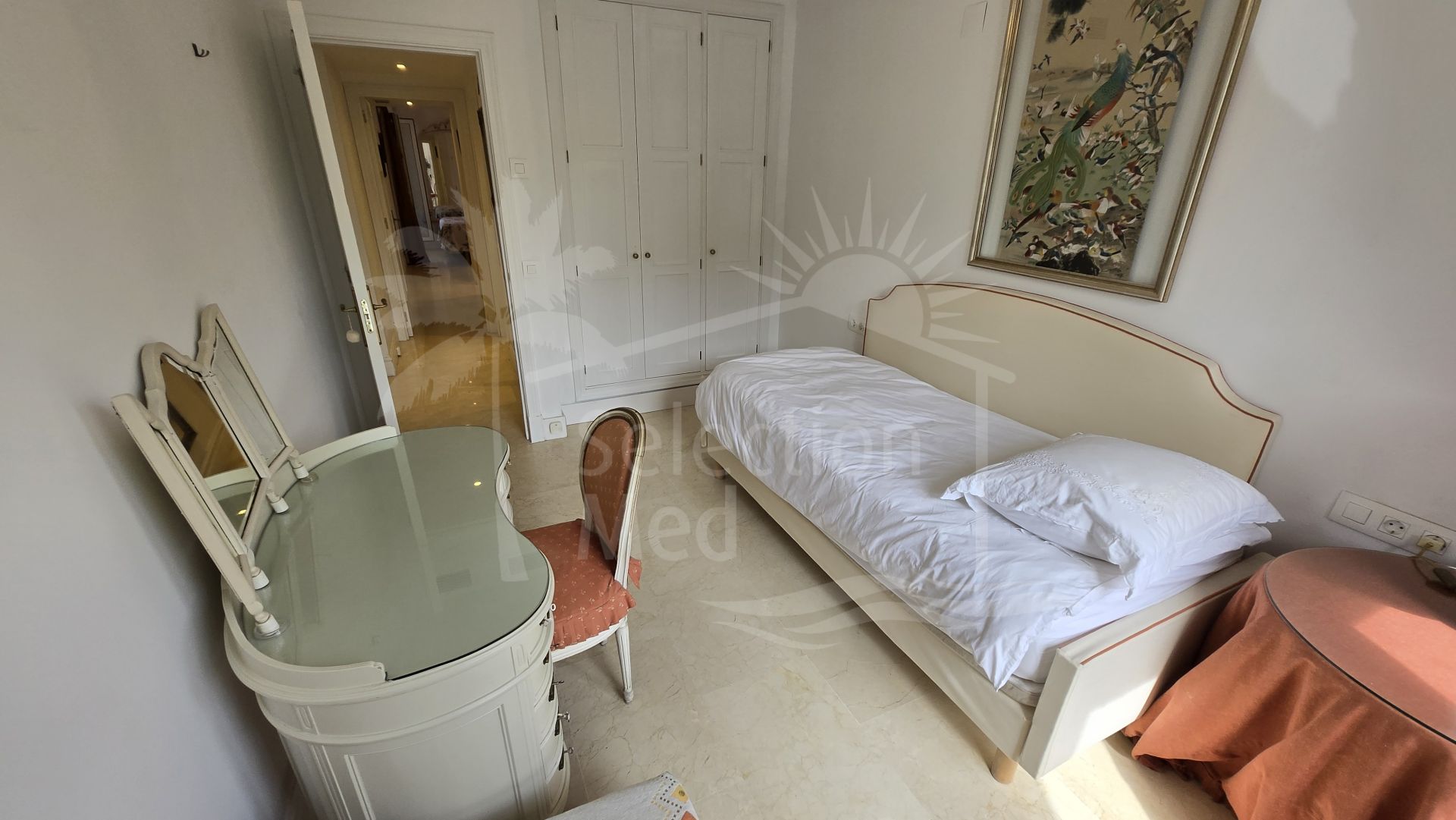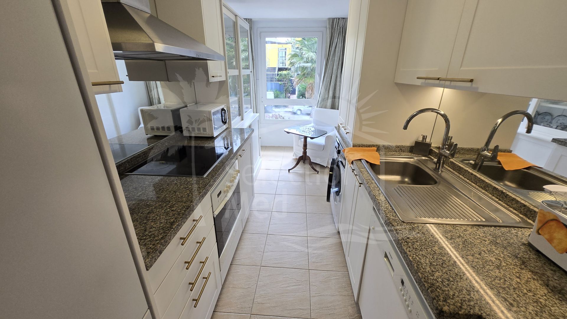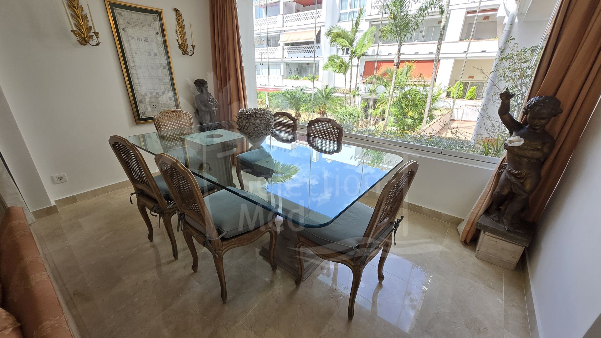 La propiedad incluye una plaza de garaje y acceso a zonas ajardinadas y tres piscinas comunitarias. Su ubicación privilegiada permite llegar andando a colegios, parques infantiles, comercios y el centro de Marbella, haciendo de esta vivienda una excelente opción tanto como residencia habitual como para piso de vacaciones.