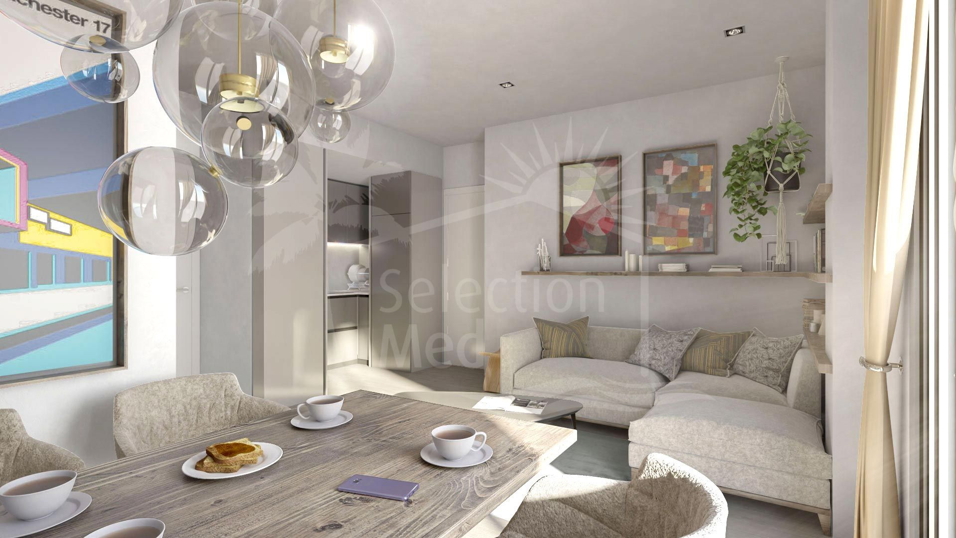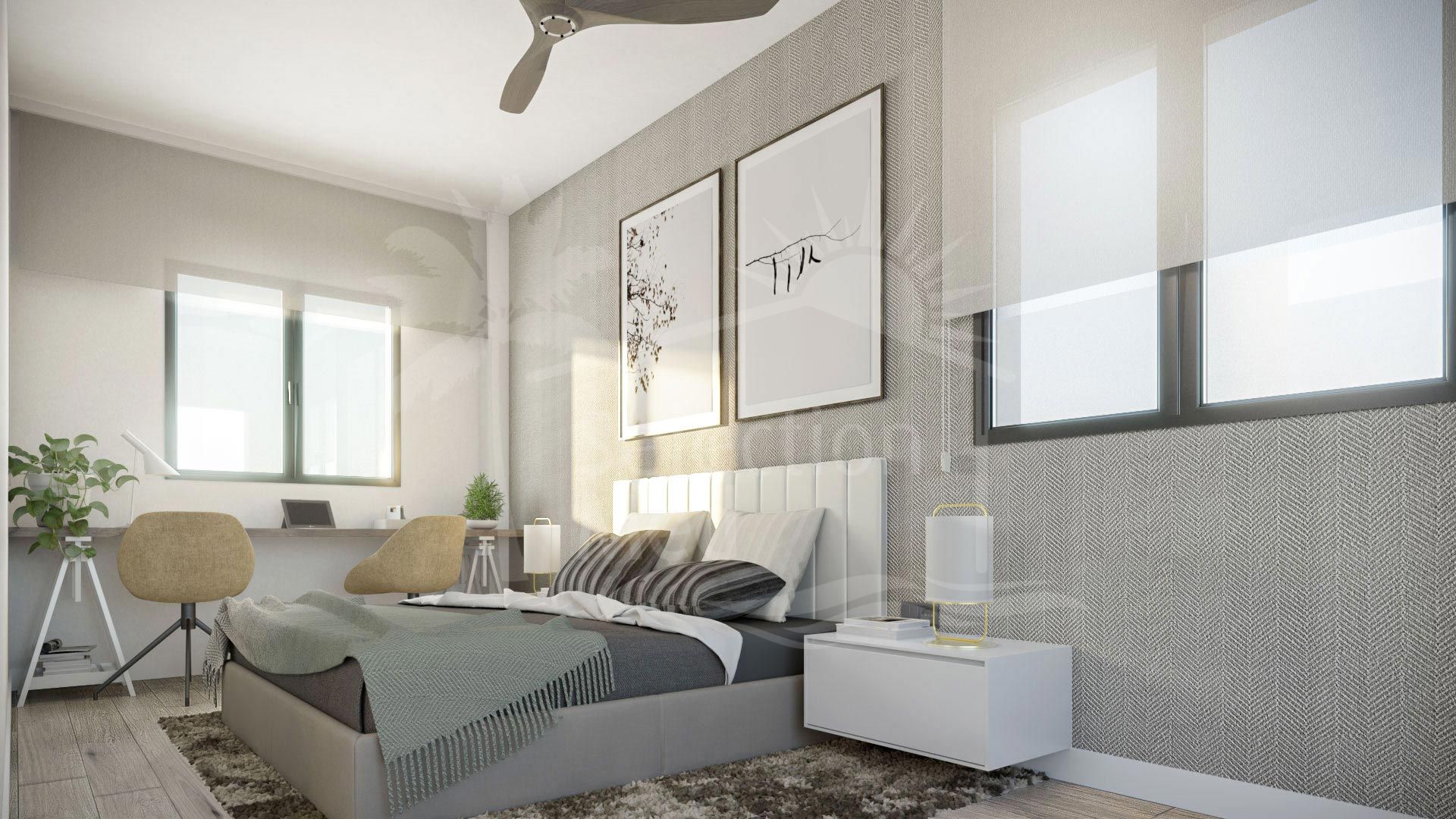 El interior del apartamento está equipado con una cocina totalmente equipada y dispone de aire acondicionado para garantizar la comodidad durante todo el año. La inclusión de un aseo de invitados añade una capa extra de comodidad, mientras que el estado a estrenar de la propiedad garantiza una estética fresca y moderna. Las grandes puertas de cristal y la terraza cubierta realzan el espacio vital, ofreciendo una conexión perfecta entre las zonas interiores y exteriores. La terraza ofrece una encantadora vista urbana, perfecta para relajarse o recibir invitados.