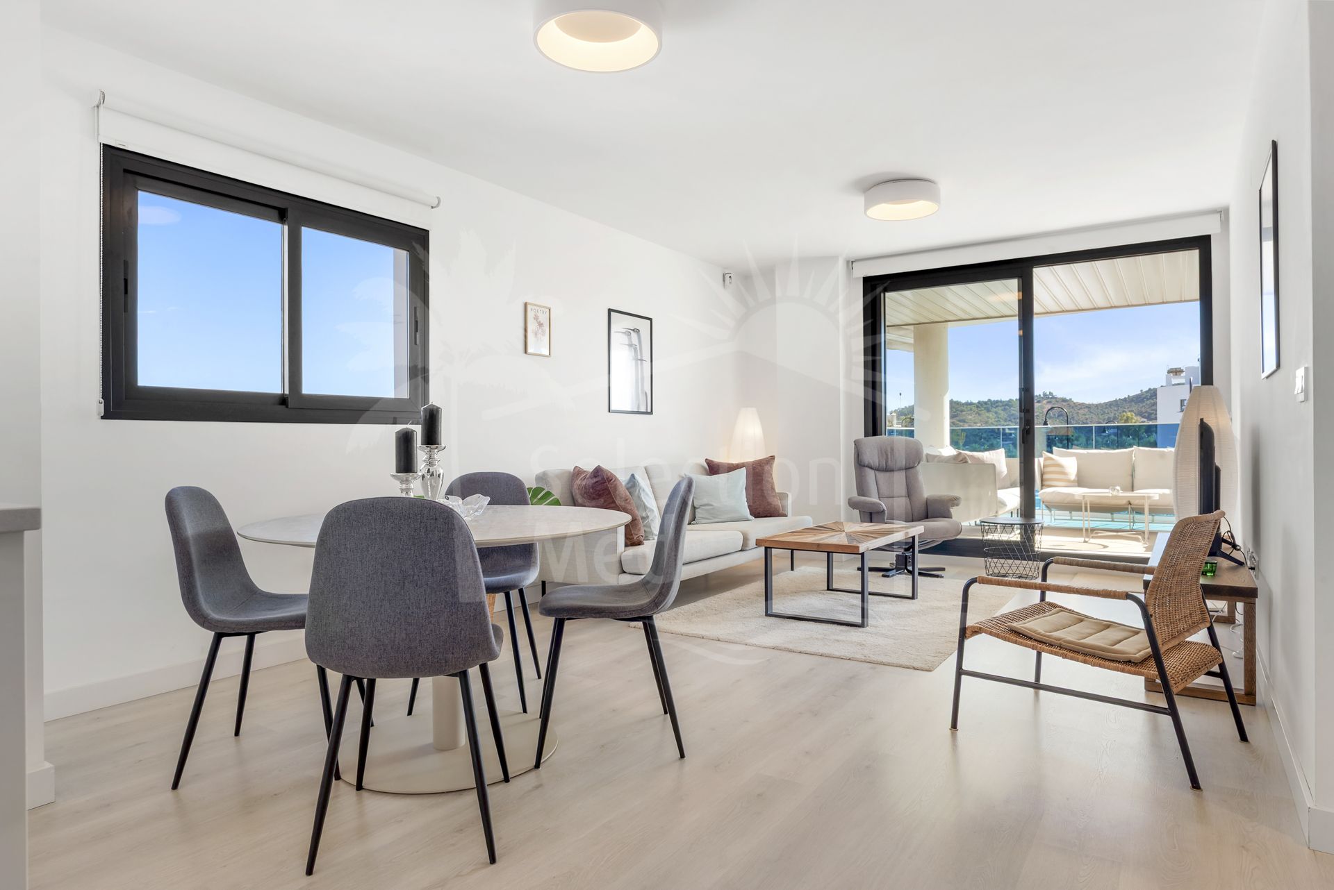 Elegante apartamento de 2 dormitorios con amplia terraza en Jardines de las Lagunas, Mijas Costa