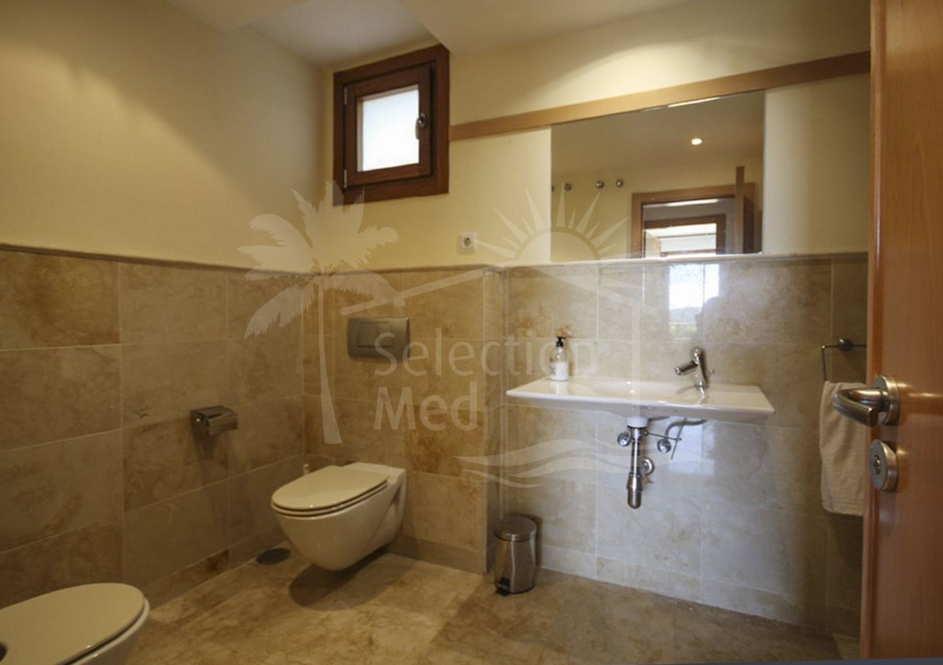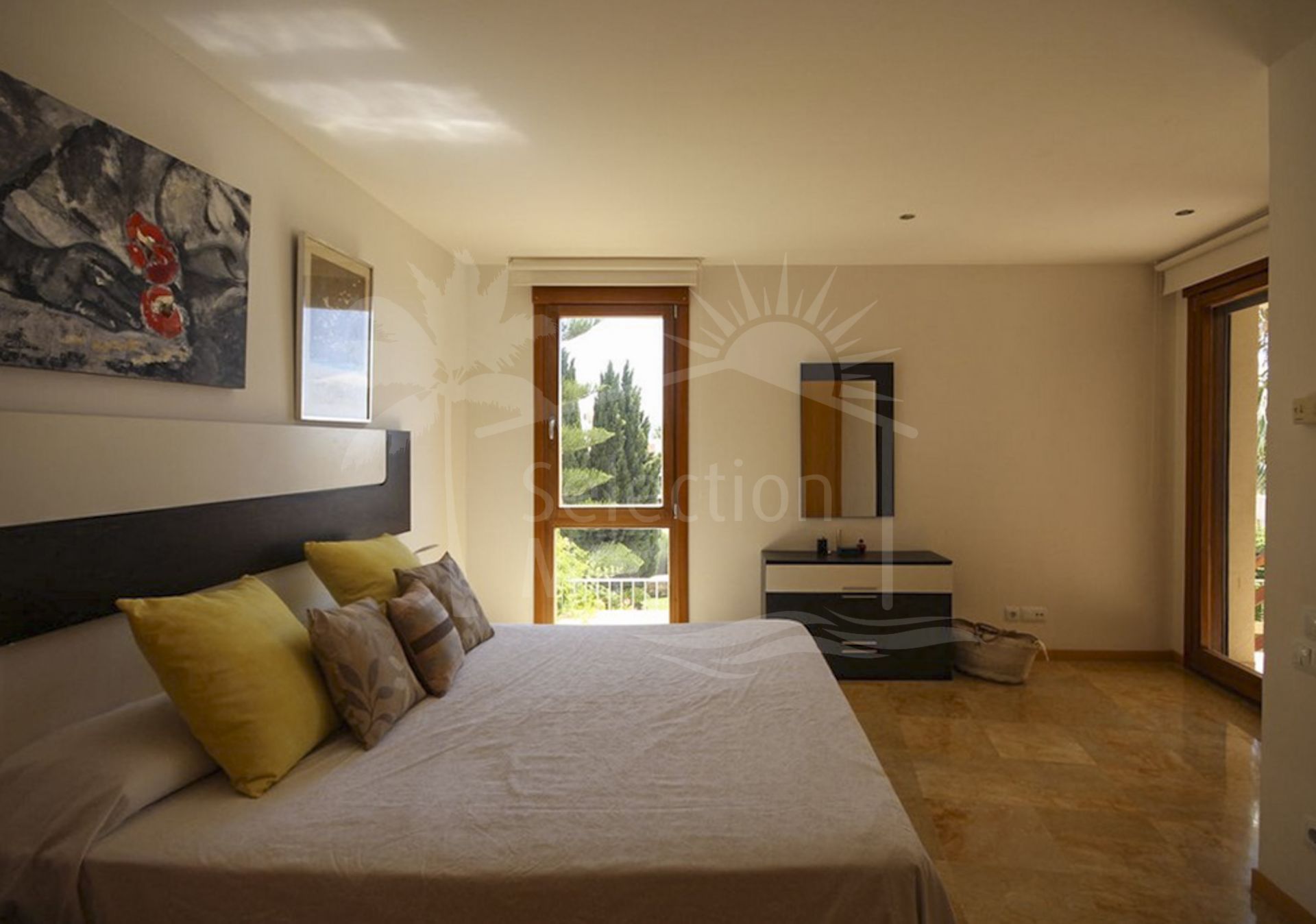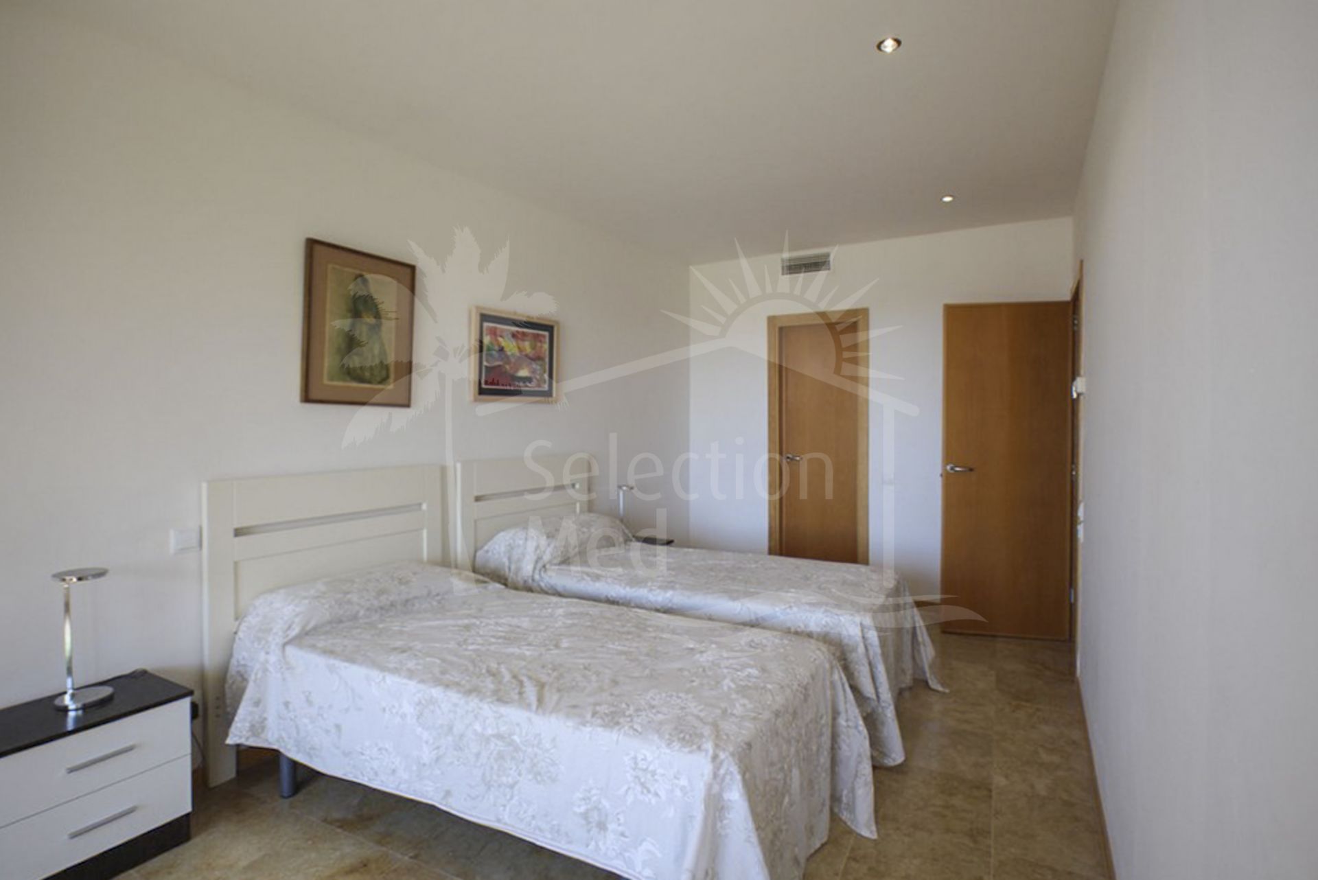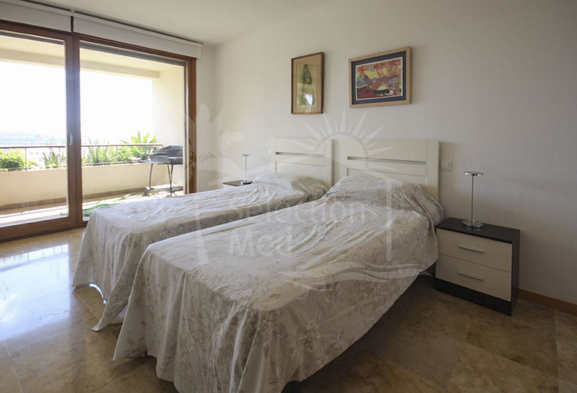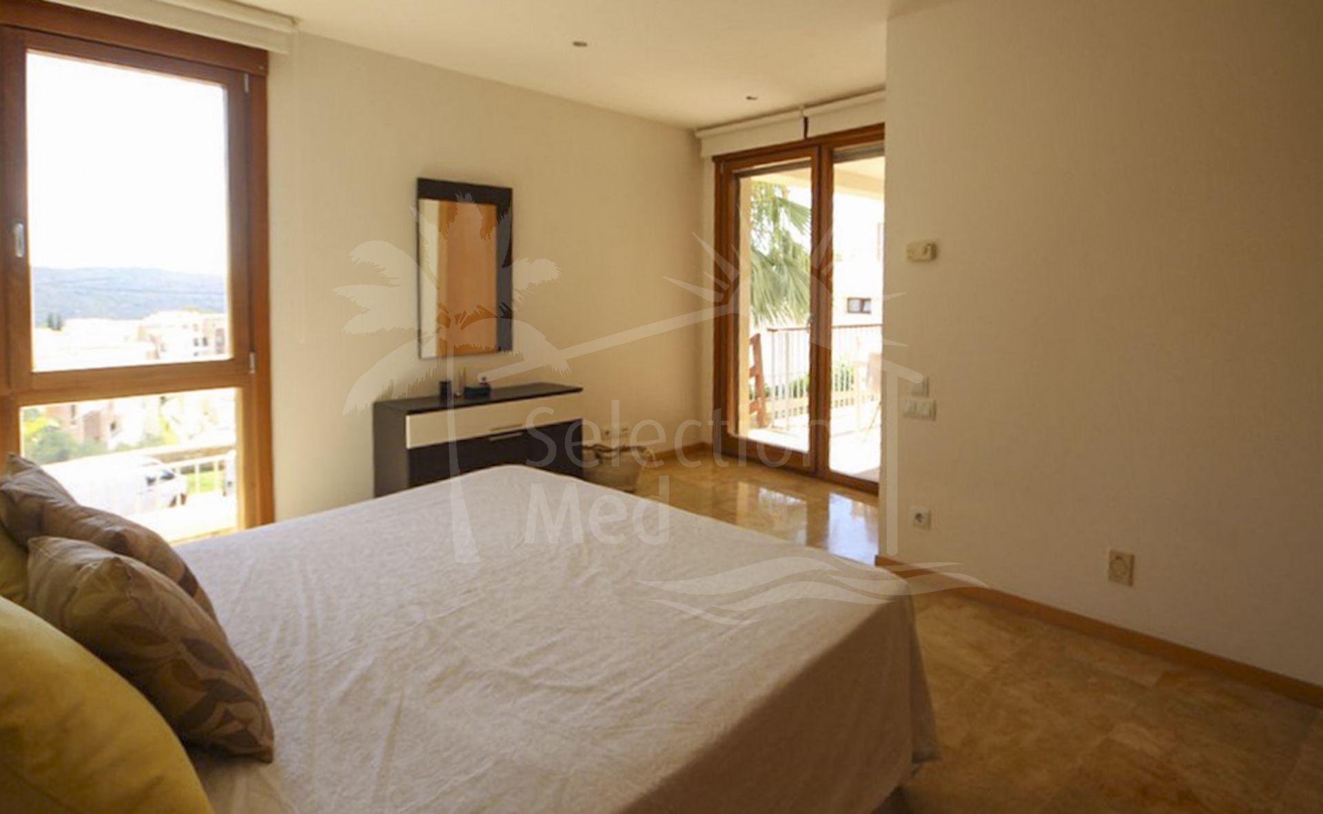 El piso ofrece vistas panorámicas hacia el mar Mediterraneo y el campo circundante.