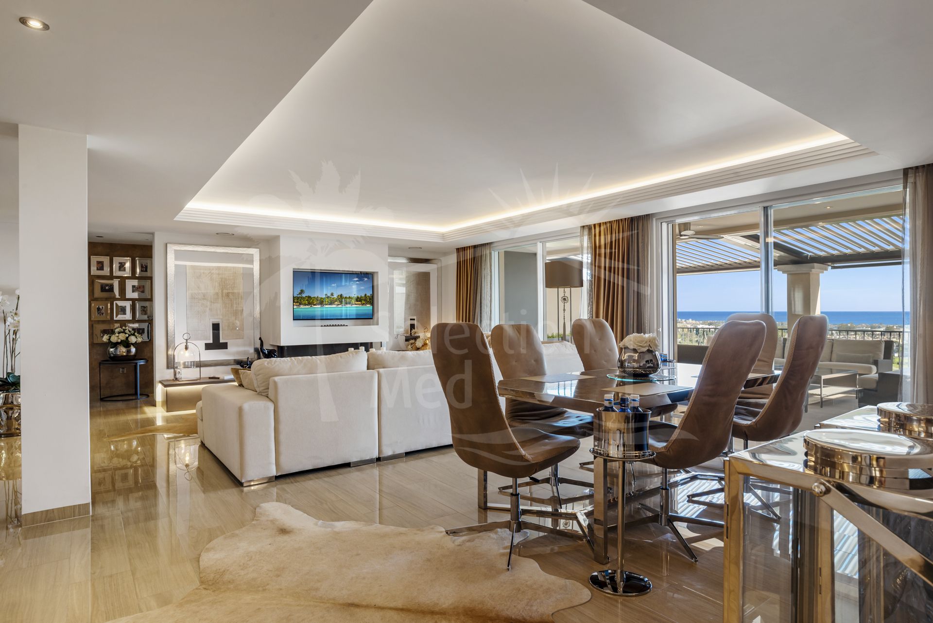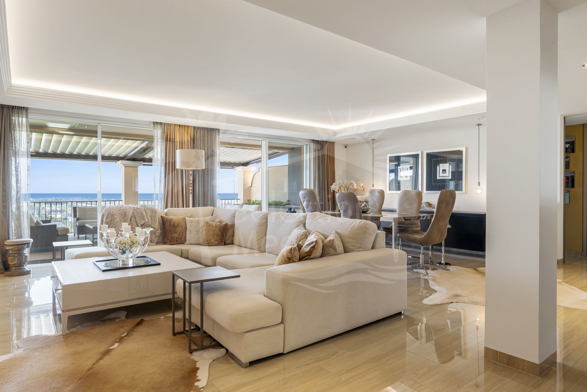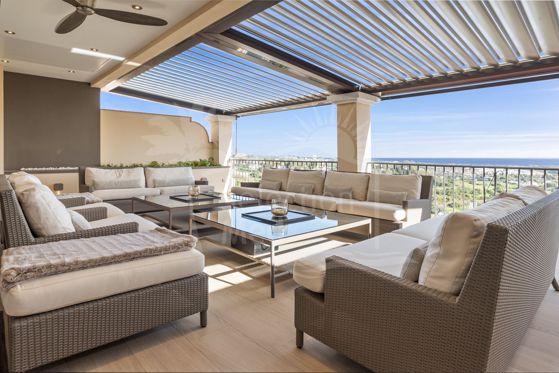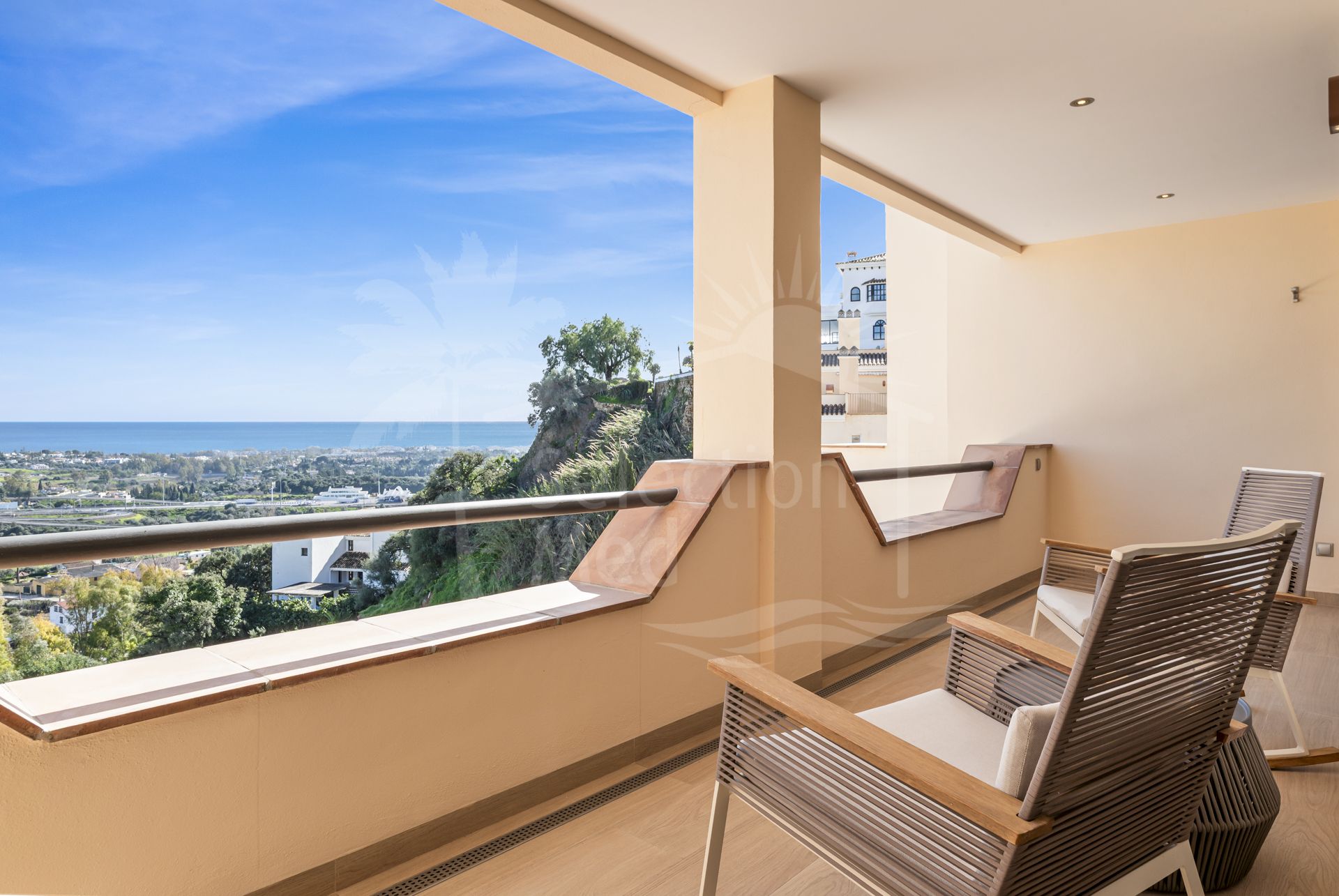 Situado en la exclusiva y tranquila comunidad cerrada de Los Almendros, este excepcional ático dúplex orientado al sur ofrece impresionantes vistas panorámicas sobre el mar Mediterráneo y las montañas circundantes. A poca distancia en coche de San Pedro de Alcántara, playas y todas las comodidades, la propiedad combina privacidad, lujo y comodidad en una de las zonas más buscadas de Benahavís.