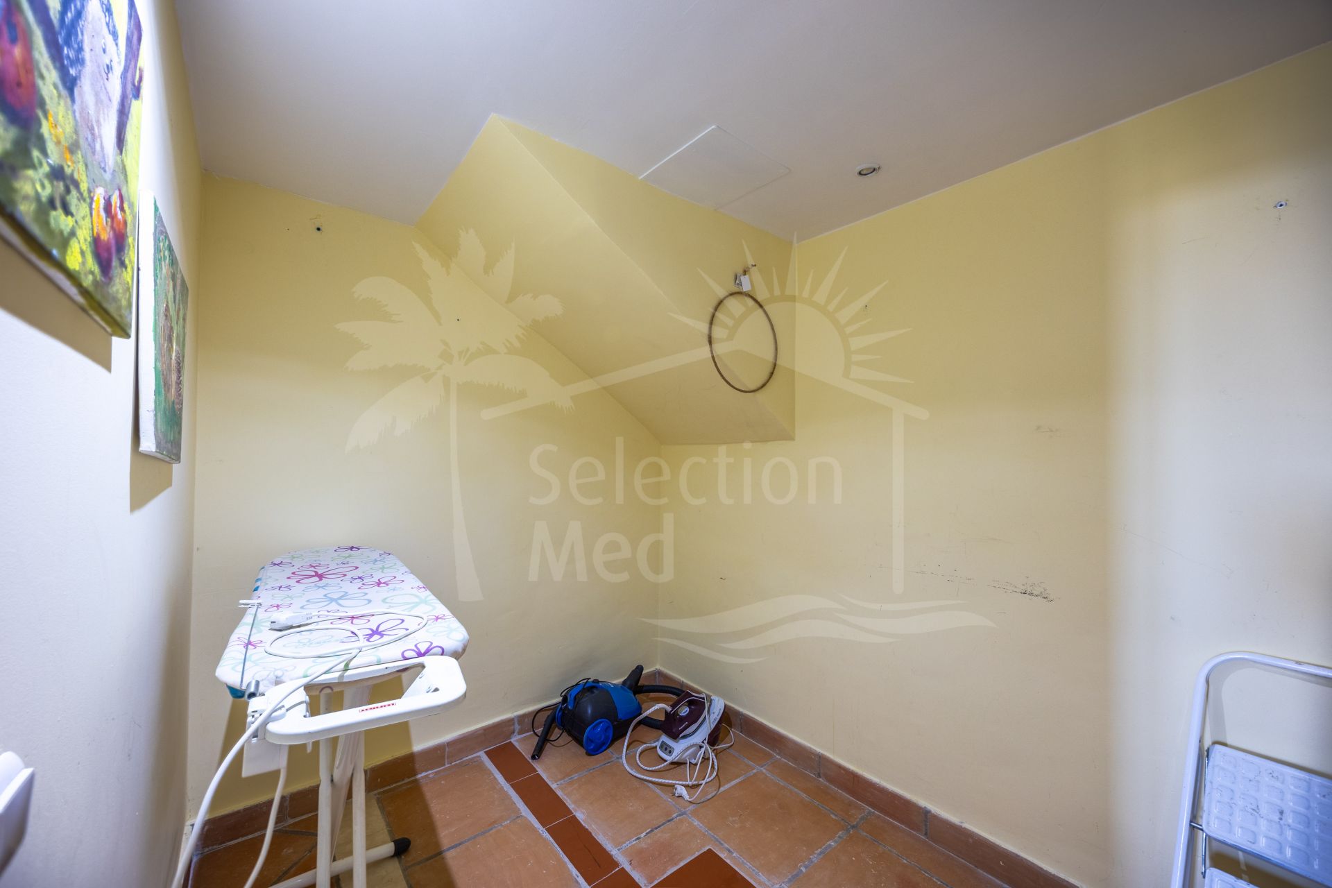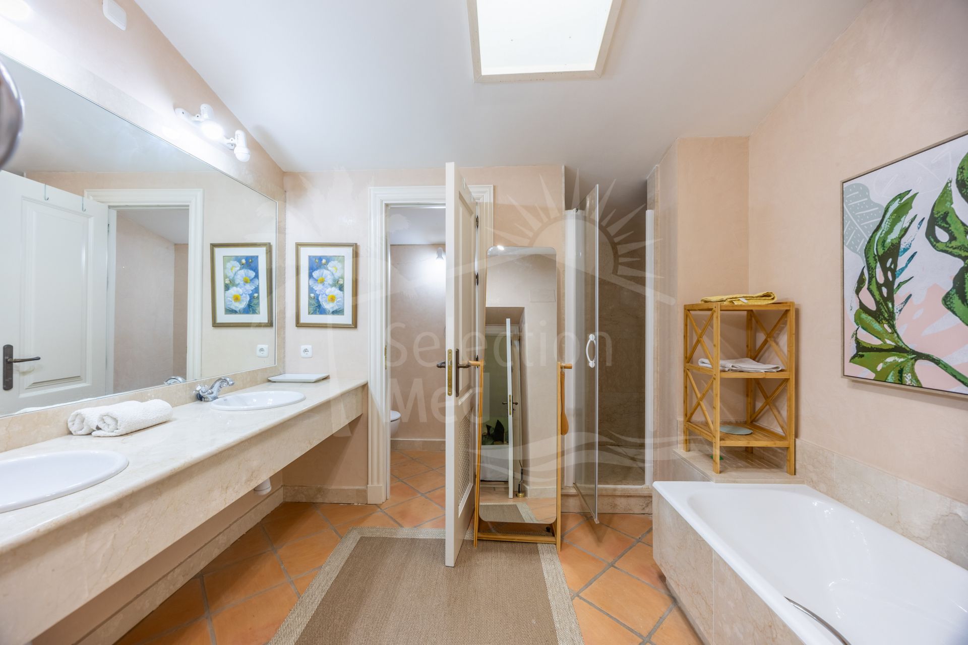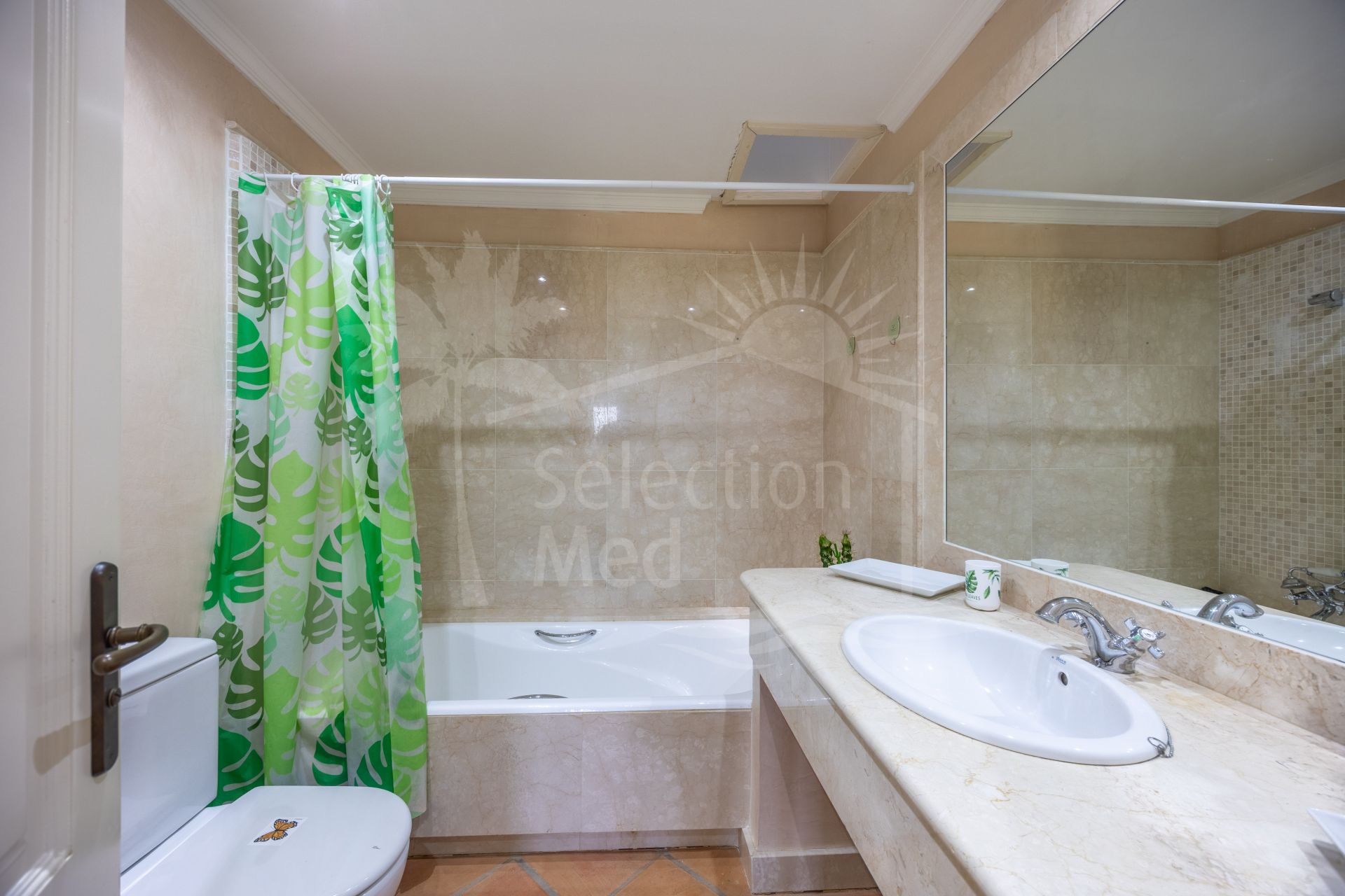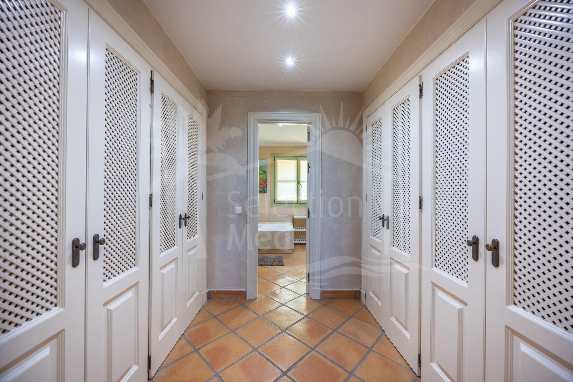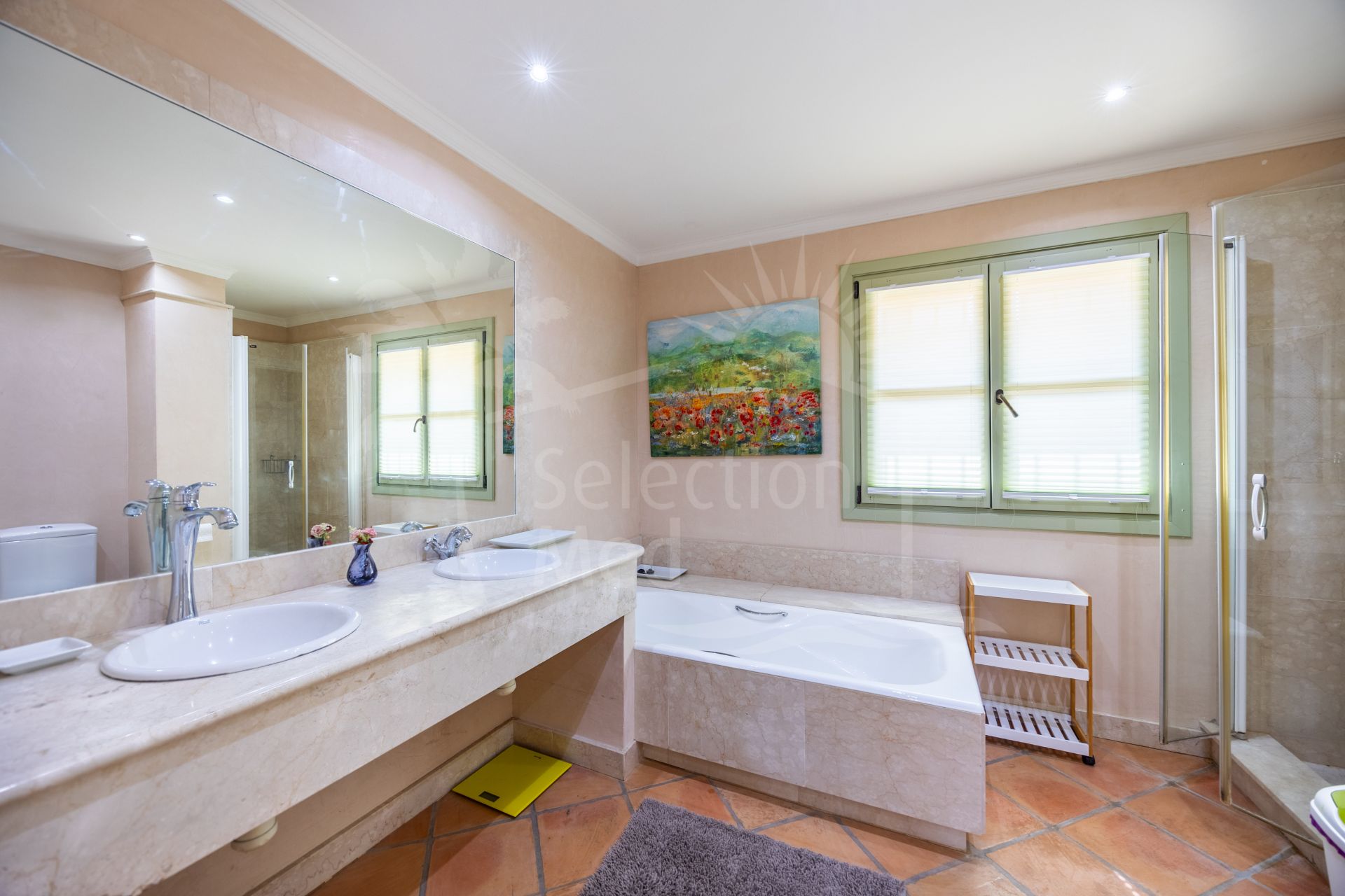 En perfecto estado de conservación, esta propiedad es ideal para quienes buscan una casa en Sotogrande con jardín privado, en un enclave tranquilo y seguro, disfrutando de la exclusividad de vivir junto a uno de los campos de golf más prestigiosos de la Costa del Sol.