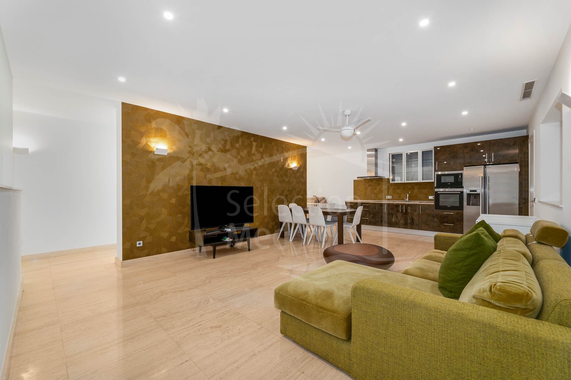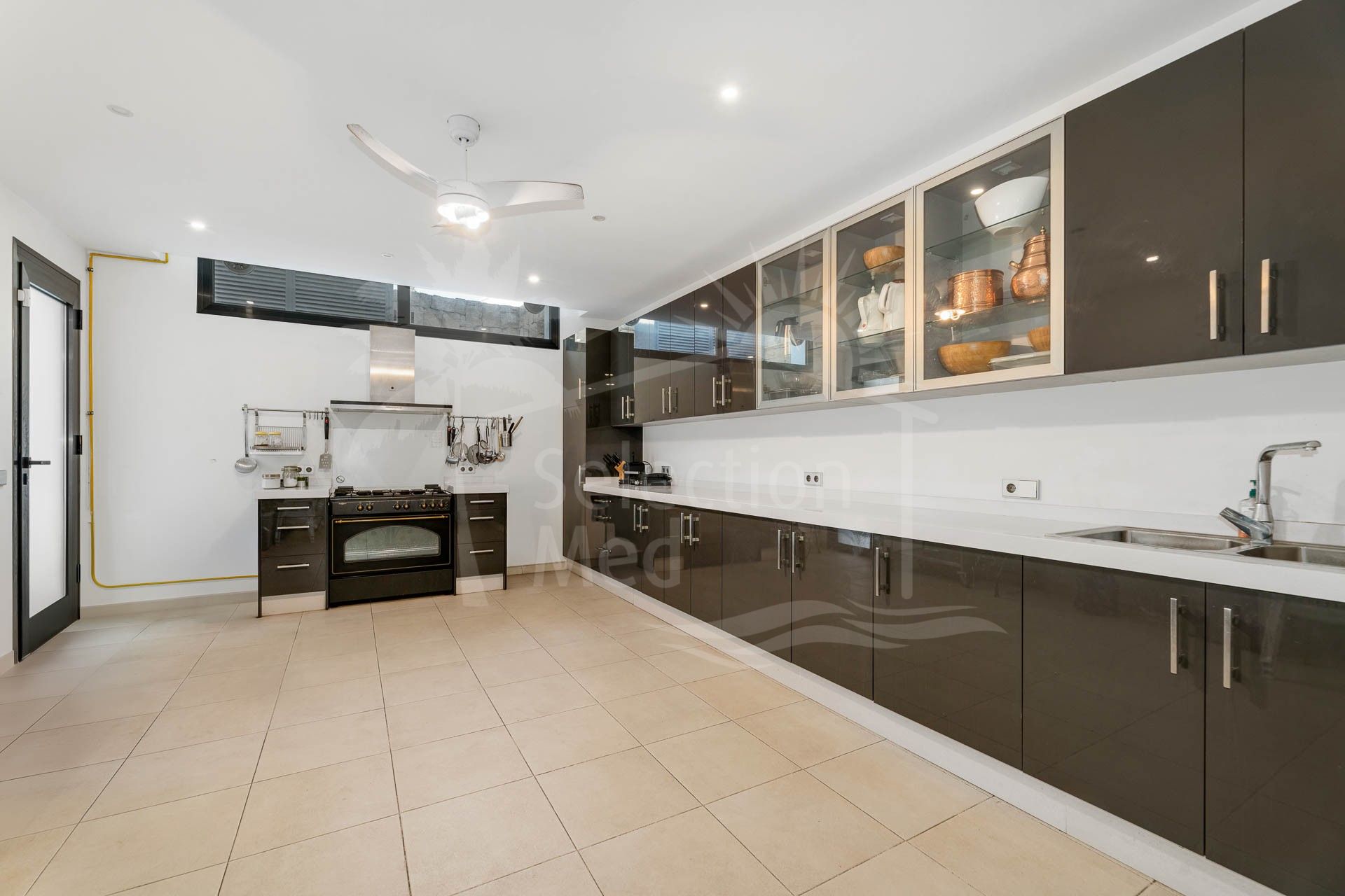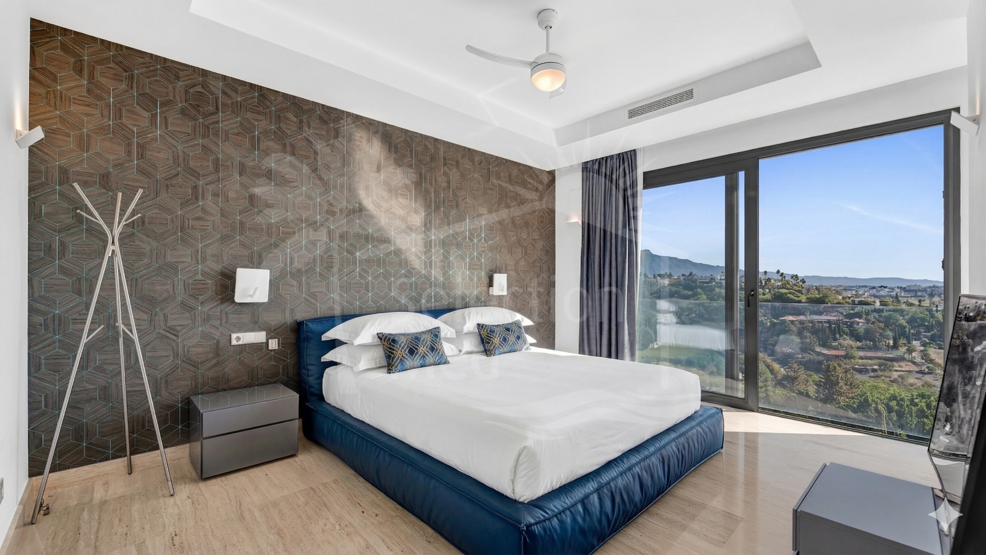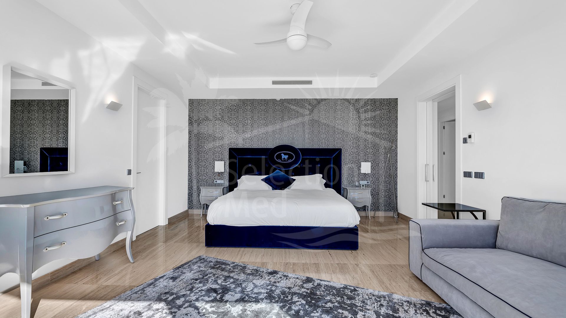 Al entrar en la villa, te reciben amplias áreas de recepción de concepto abierto con un elegante salón, comedor y una cocina moderna equipada con los mejores electrodomésticos, que presenta elegantes tonos oscuros contrastados con encimeras de estilo mármol blanco. Todos estos espacios se conectan sin esfuerzo con la gran terraza que da al jardín cuidado, perfecta para disfrutar de las vistas panorámicas. La propiedad cuenta con nueve dormitorios en suite, con cuatro situados en la planta superior, dos en la planta baja y un apartamento independiente en la planta inferior. Este último incluye tres dormitorios adicionales en suite, su propia cocina y acceso a otra terraza con maravillosas vistas al golf, ideal para invitados o familiares.