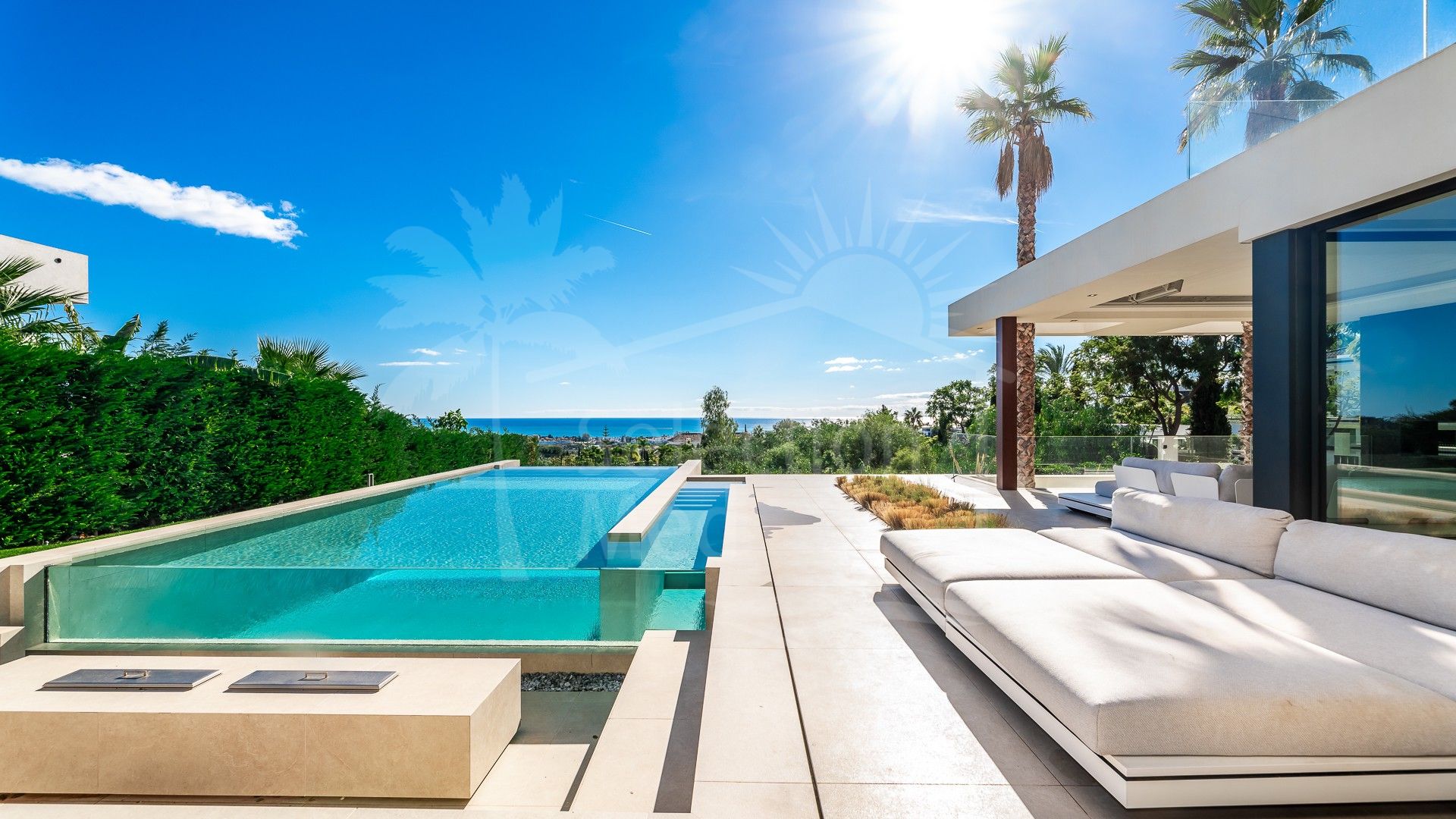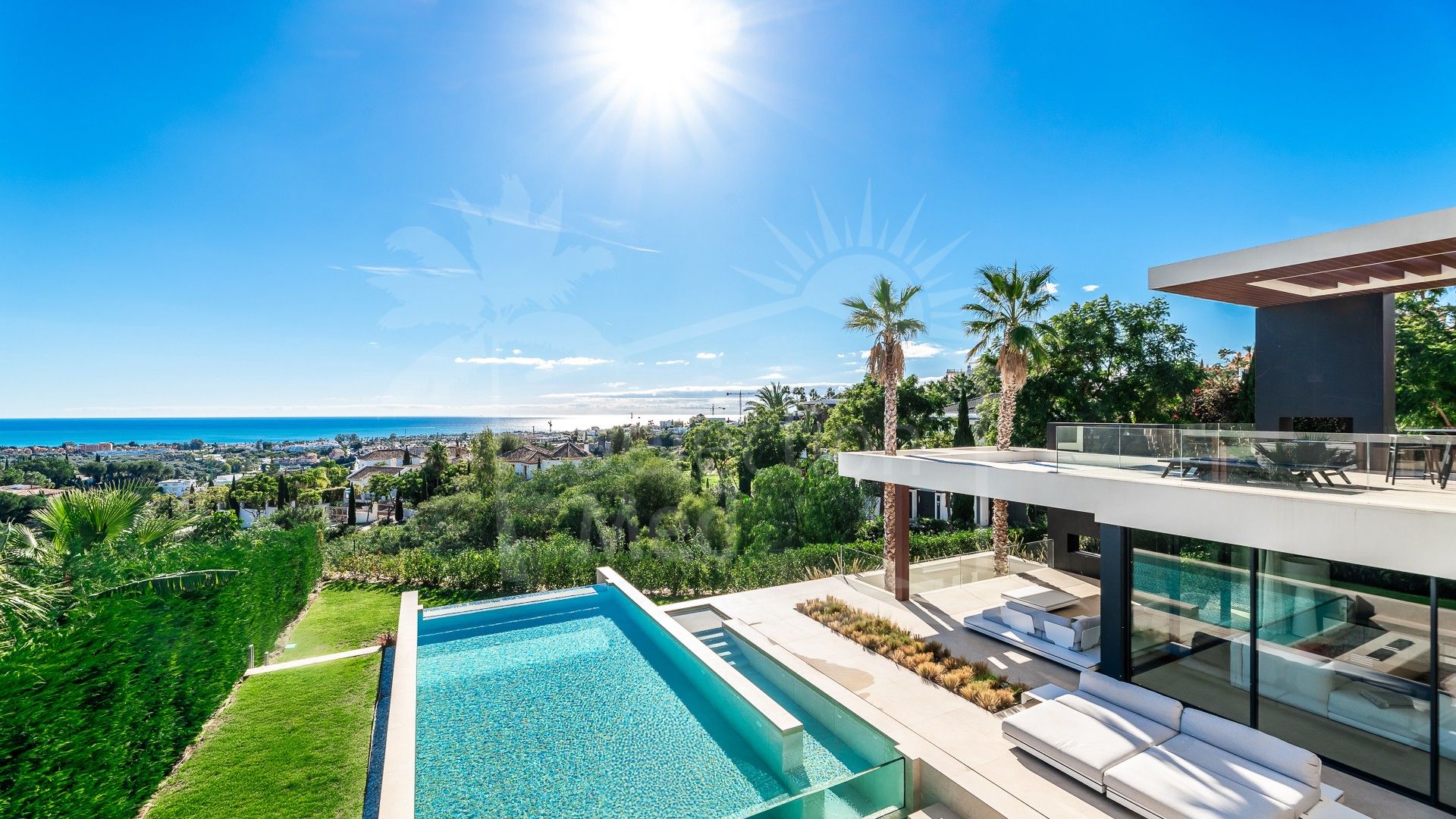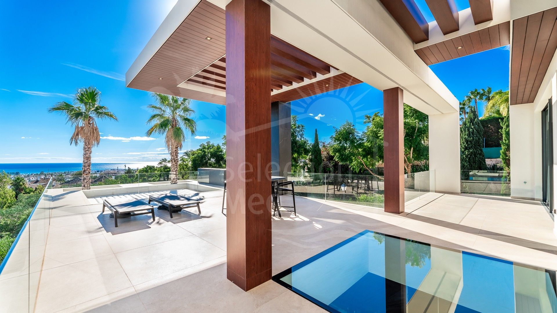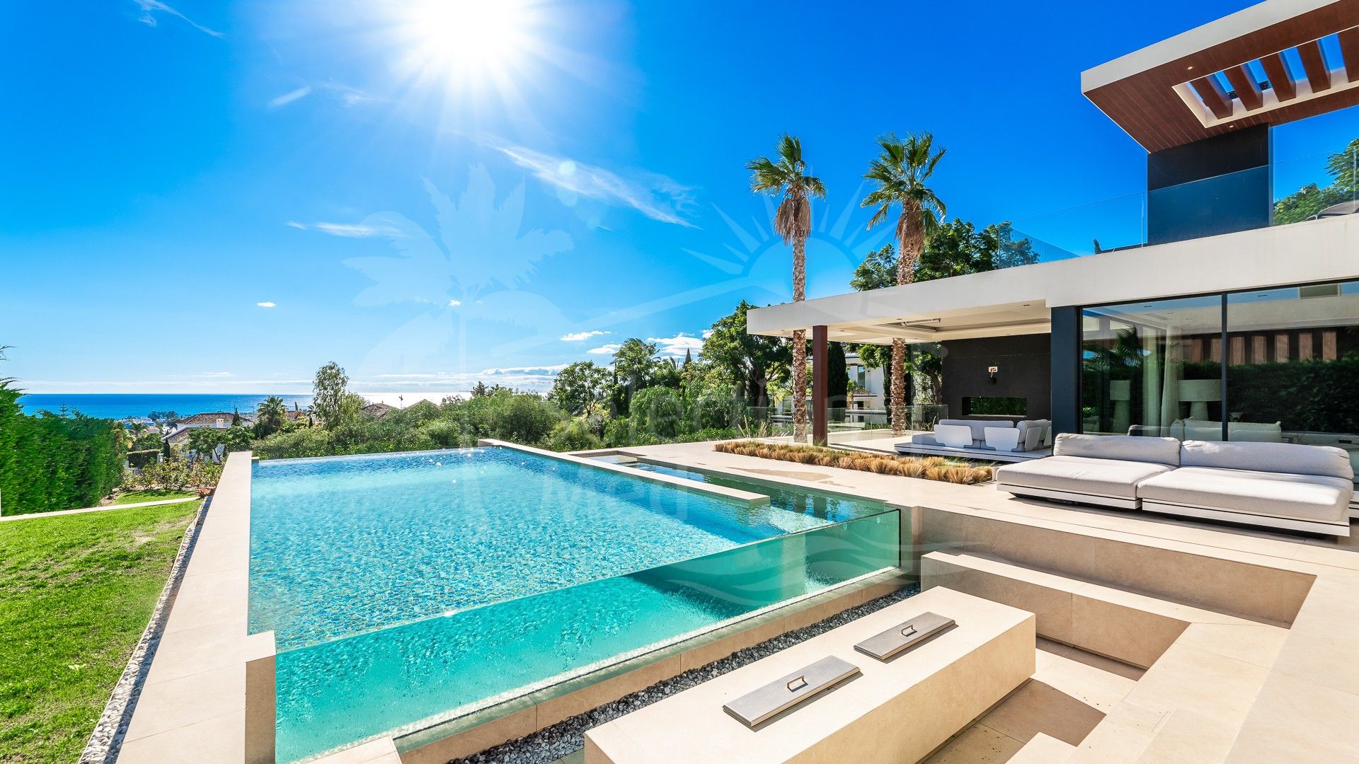 En el exterior, la villa presume de una piscina infinita, una zona de chill-out con chimenea y terrazas diseñadas con gusto, ideales para relajarse o entretenerse mientras disfruta de las vistas panorámicas al mar.